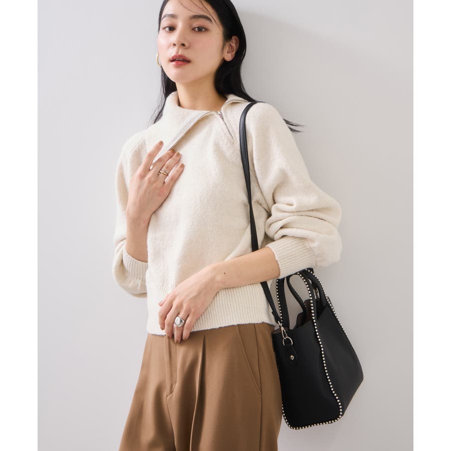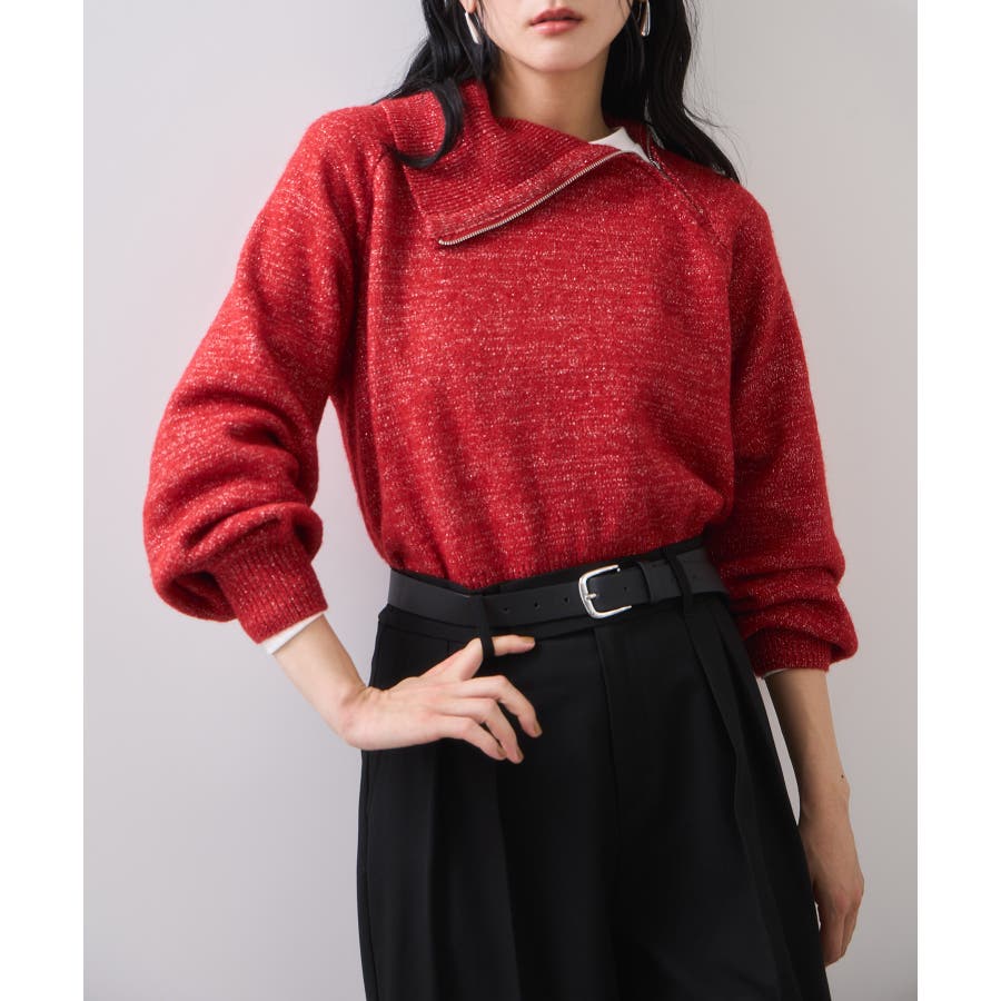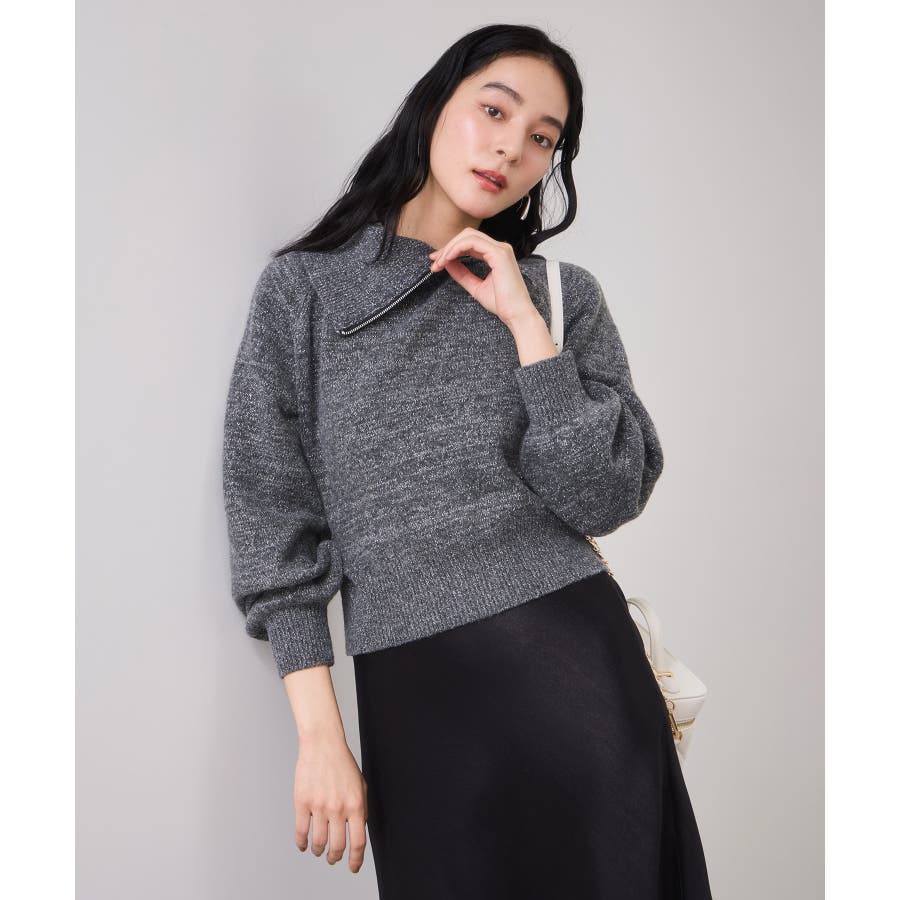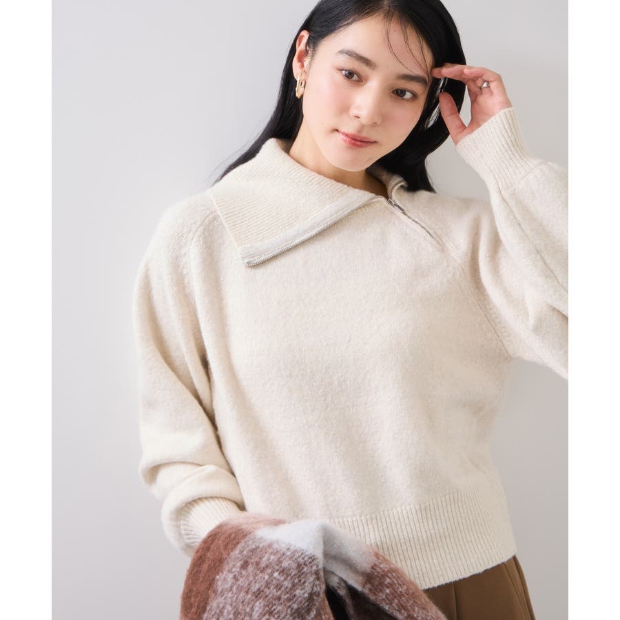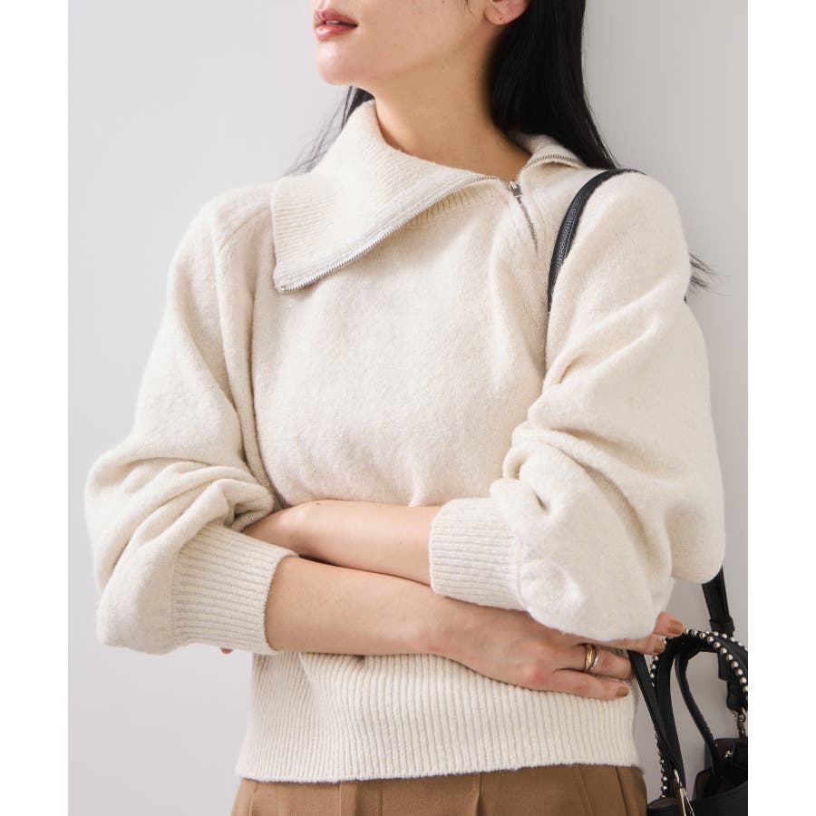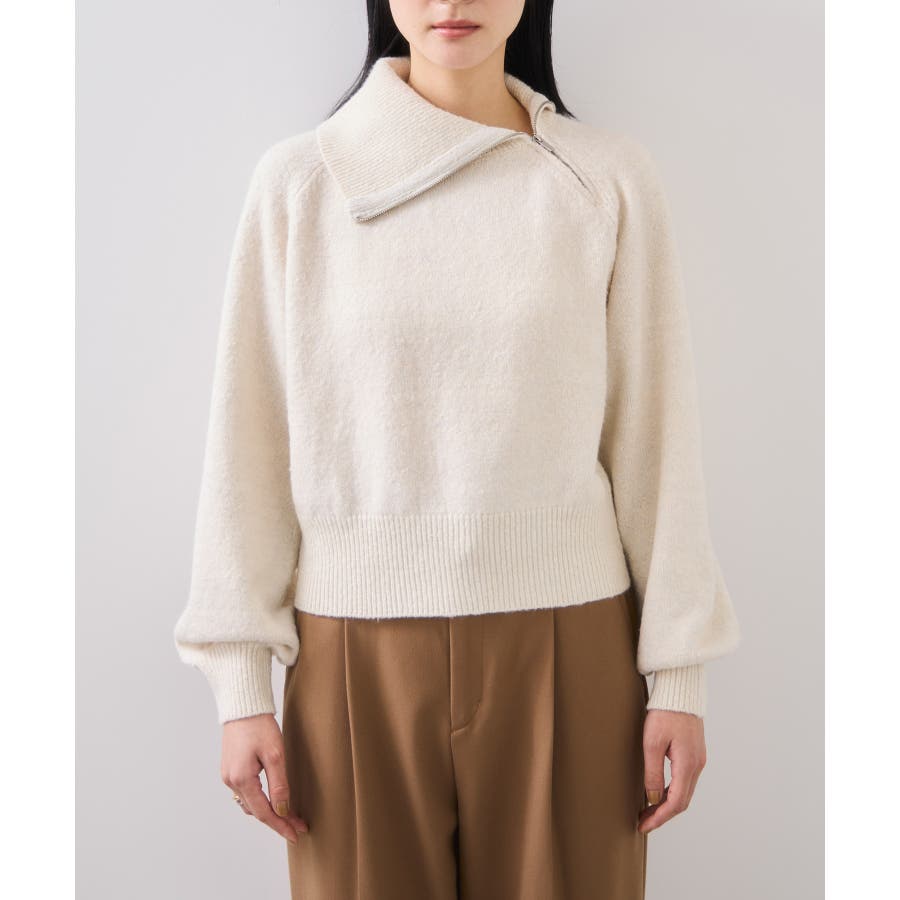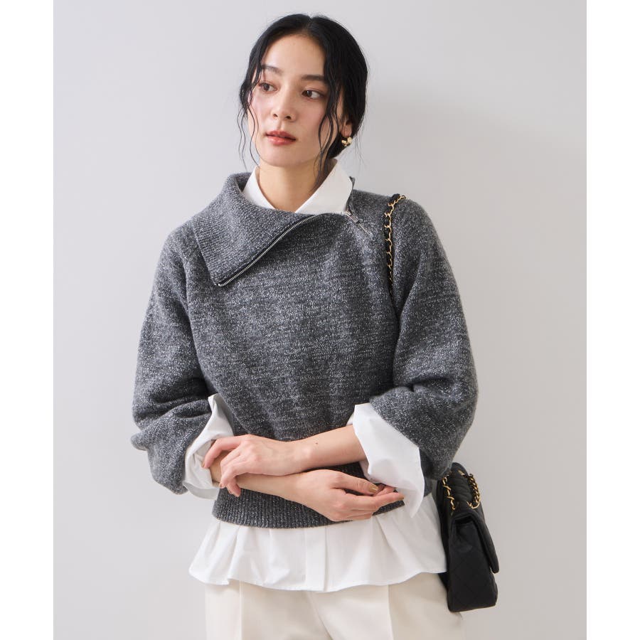 ・ハイネックをフロントのジップ開きで折り返すデザイン。