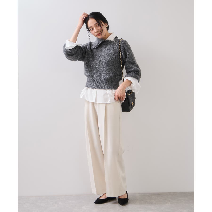 キレイめのワイドパンツやデニム素材と好相性!裾のリブを長めに設定しているのでアウトスタイルが合わせやすいアイテムです。