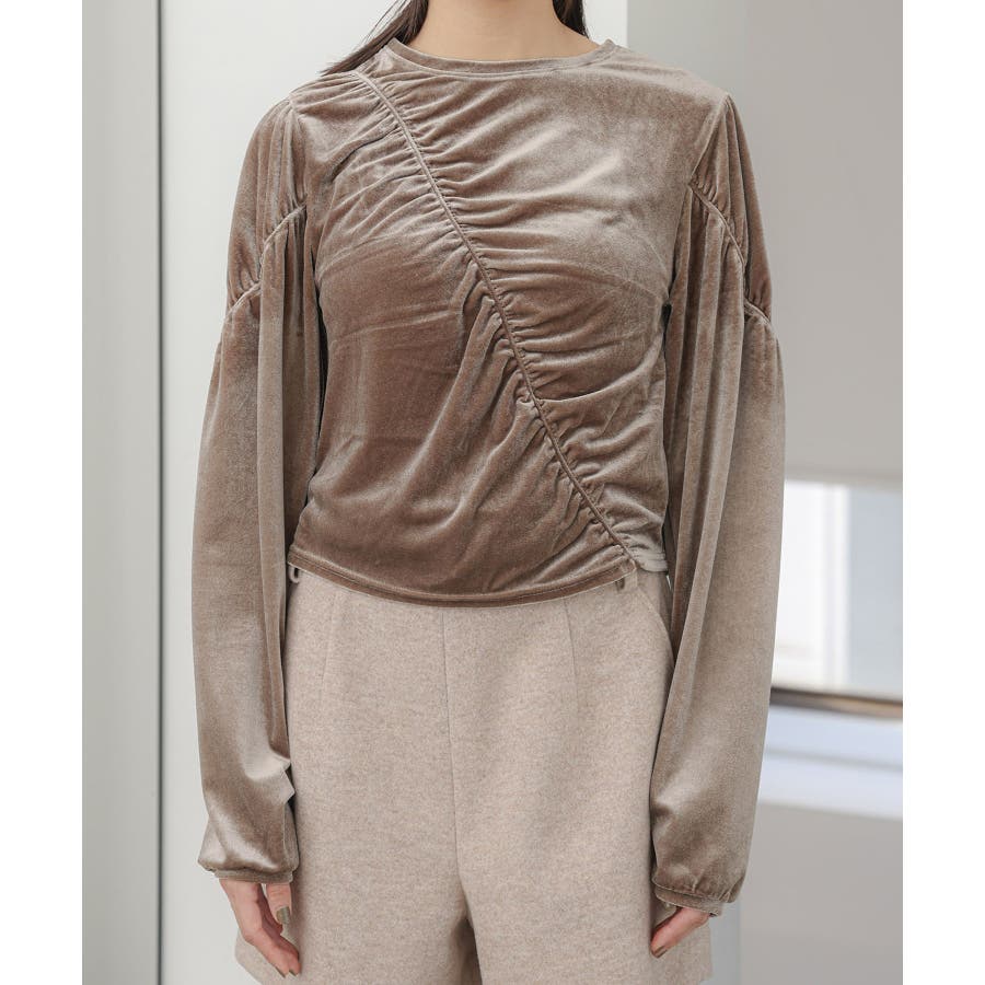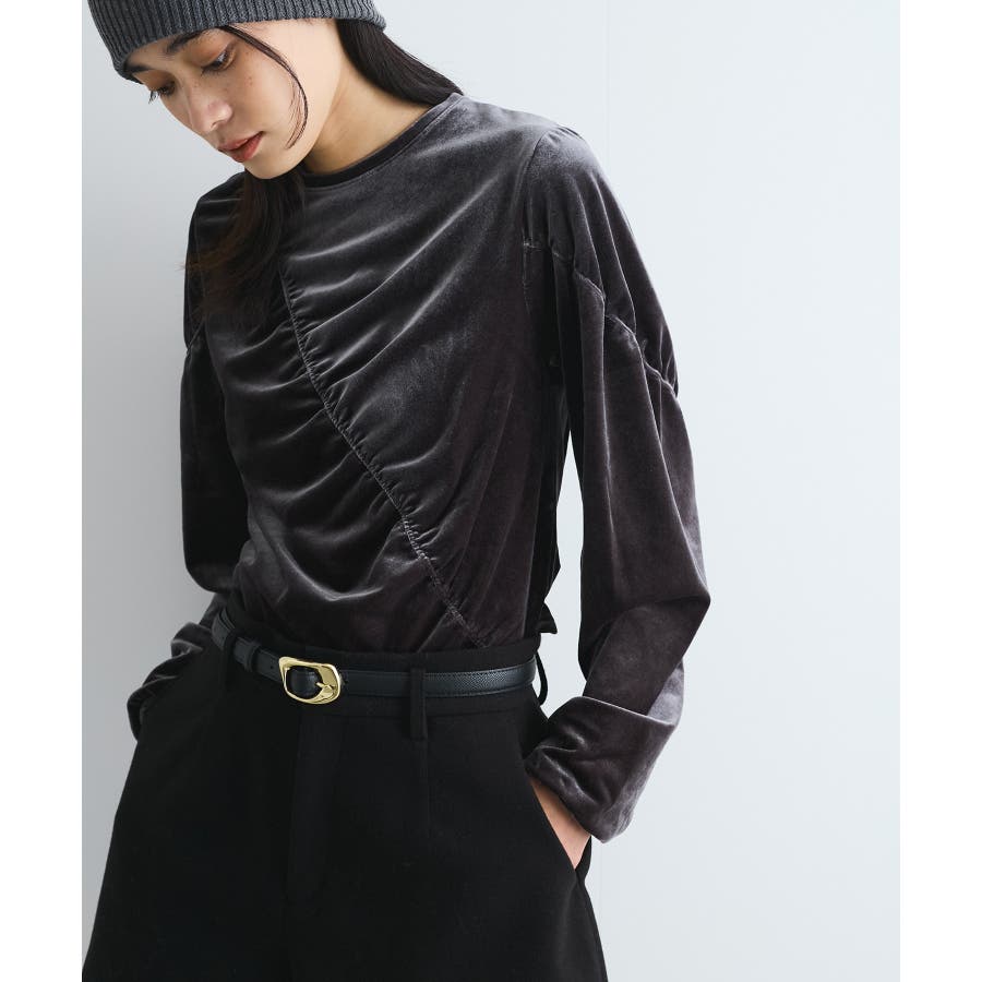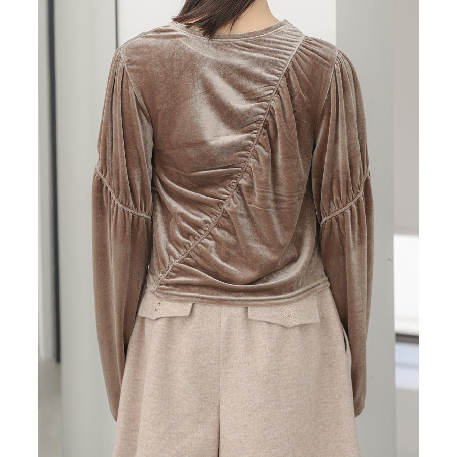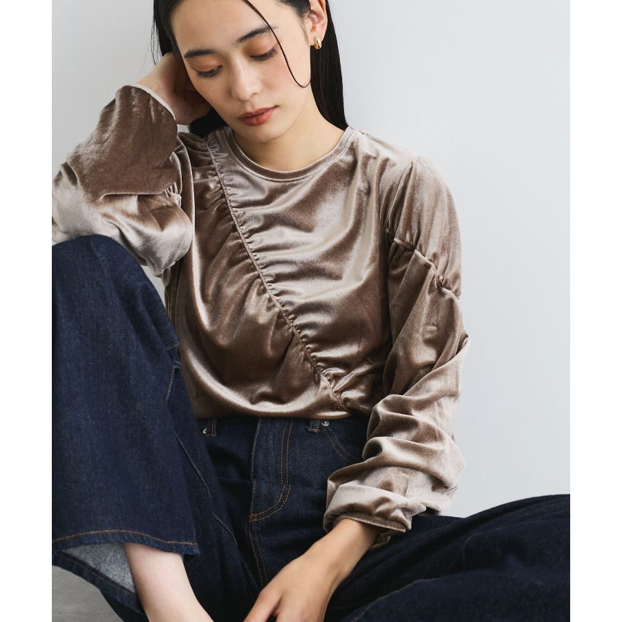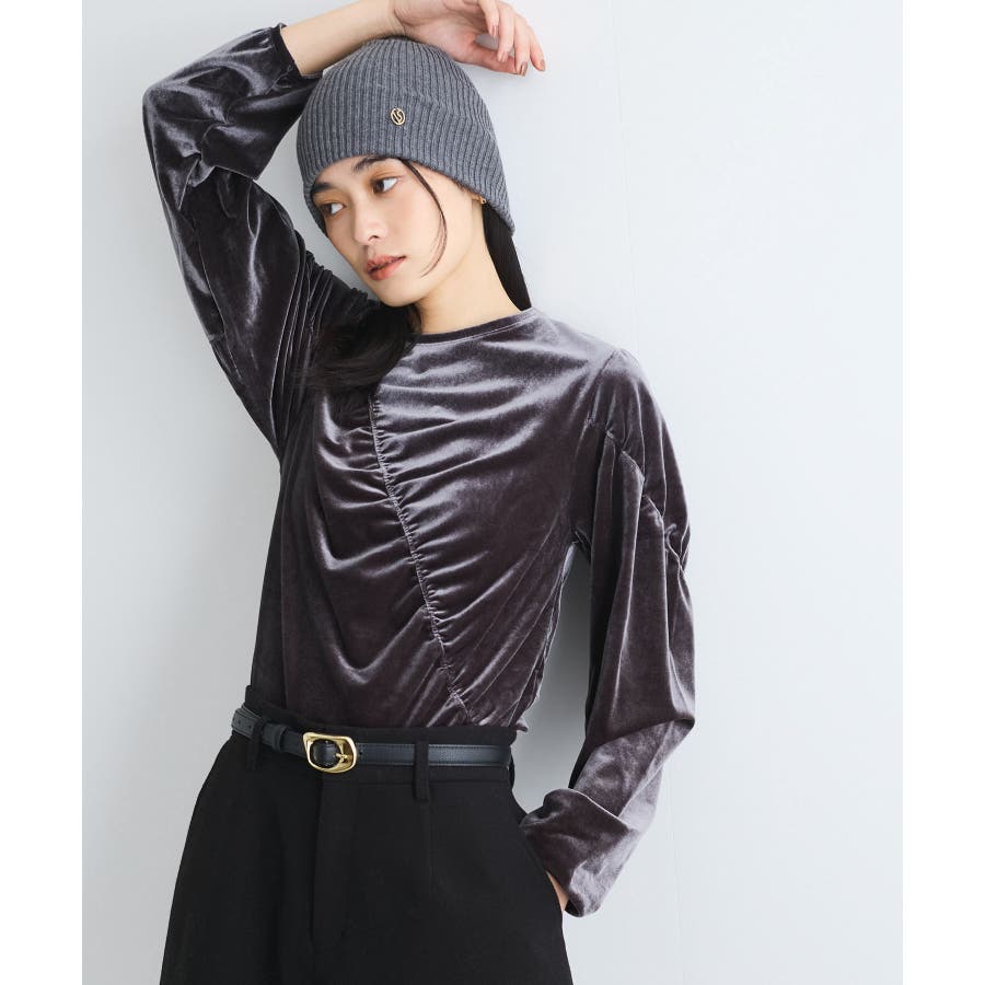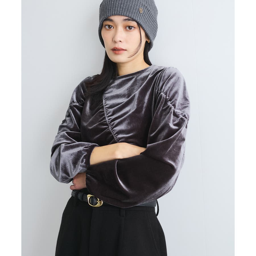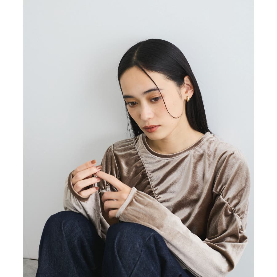 【デザイン・シルエット】 ベロア地の季節感のあるトップスです。