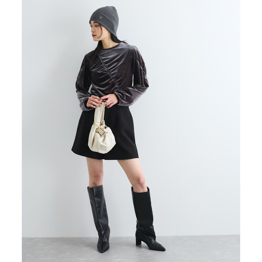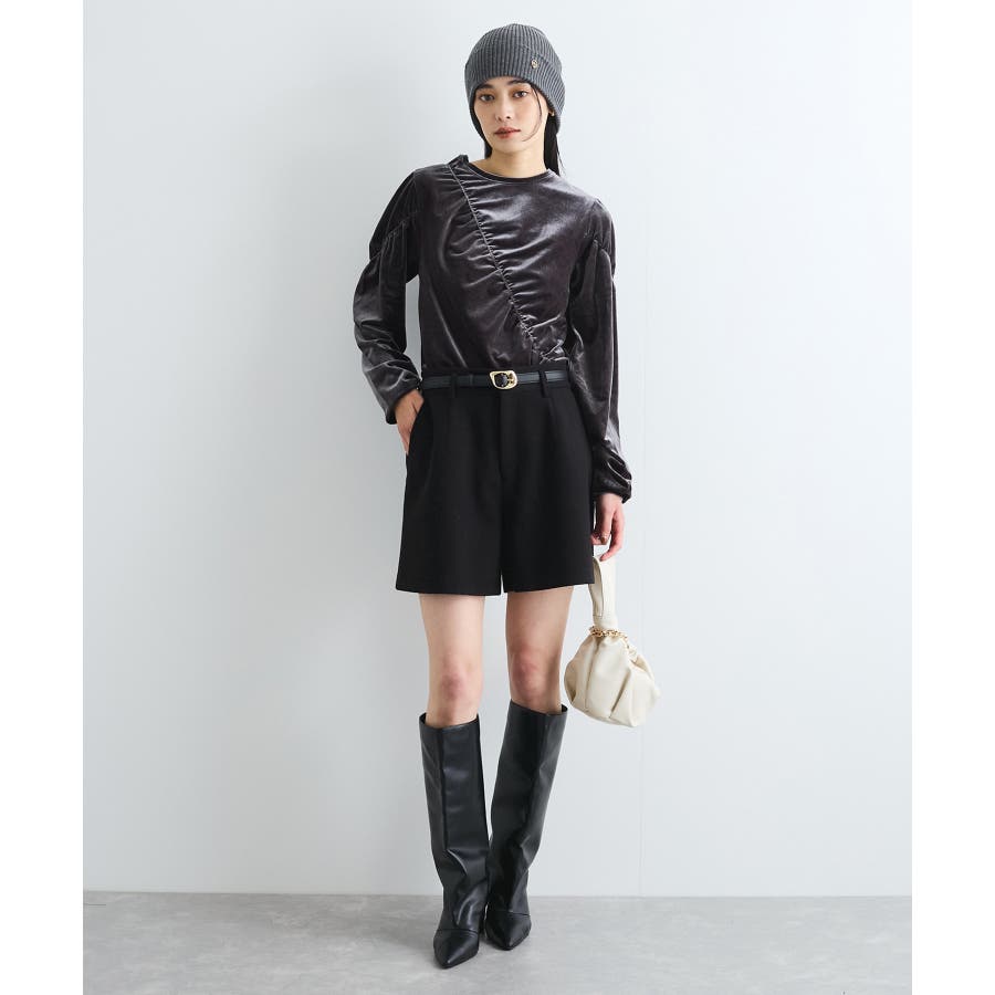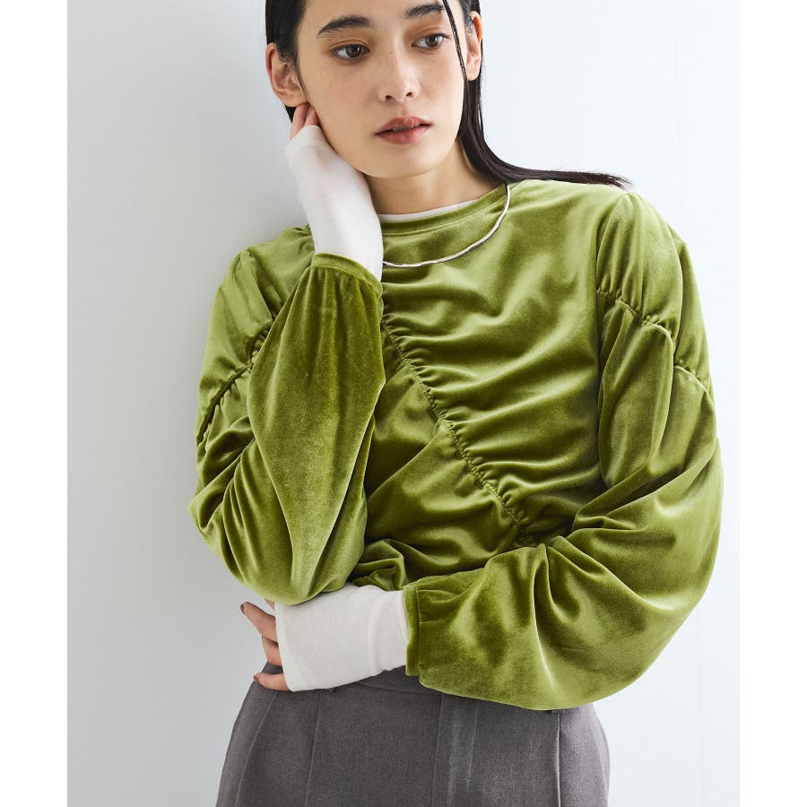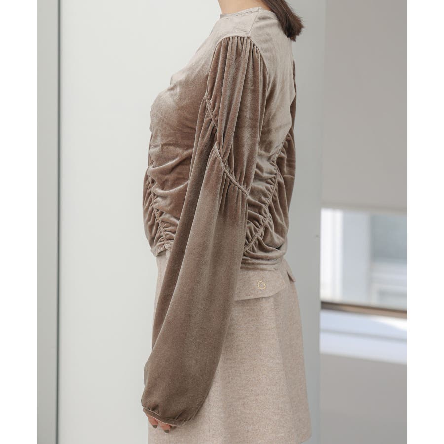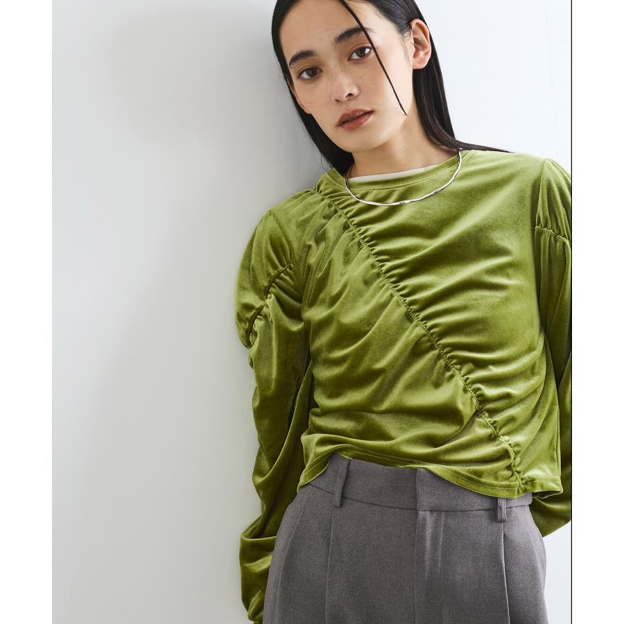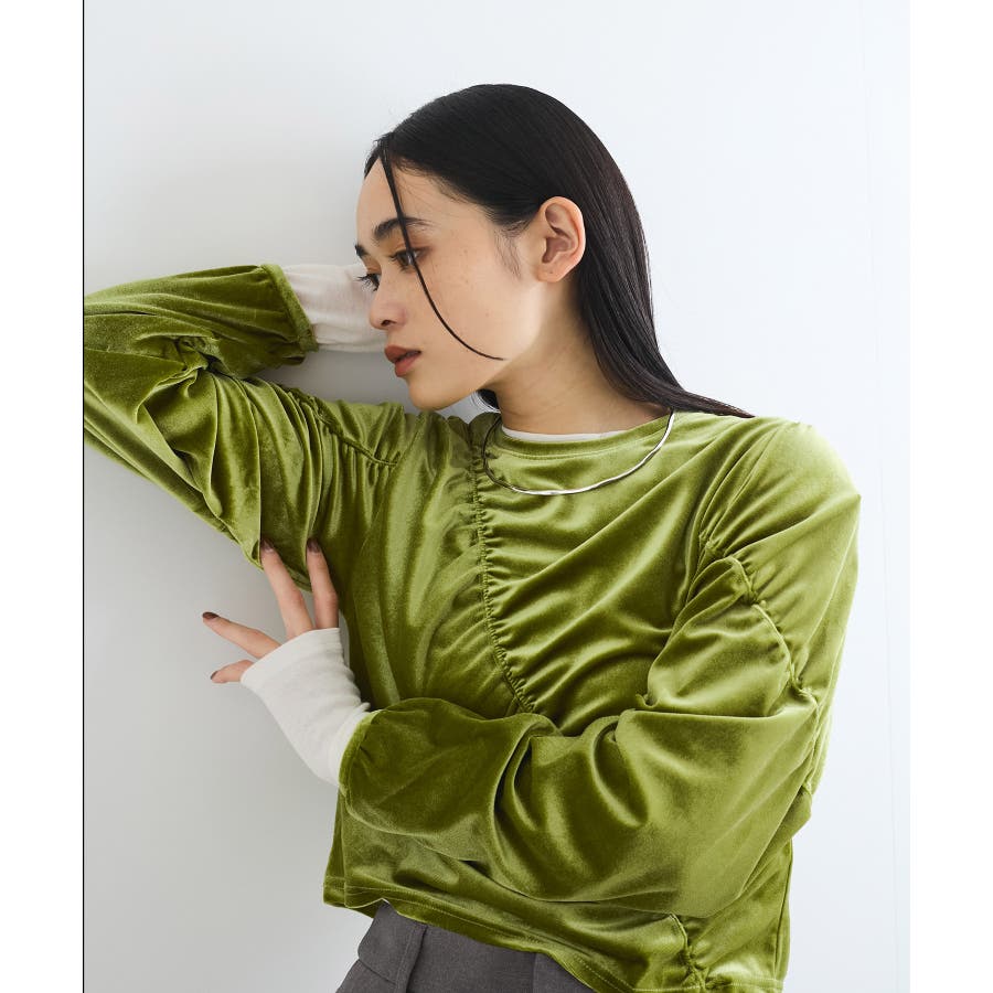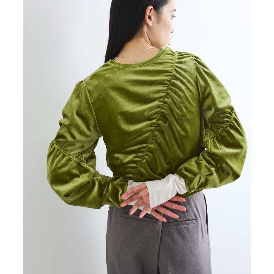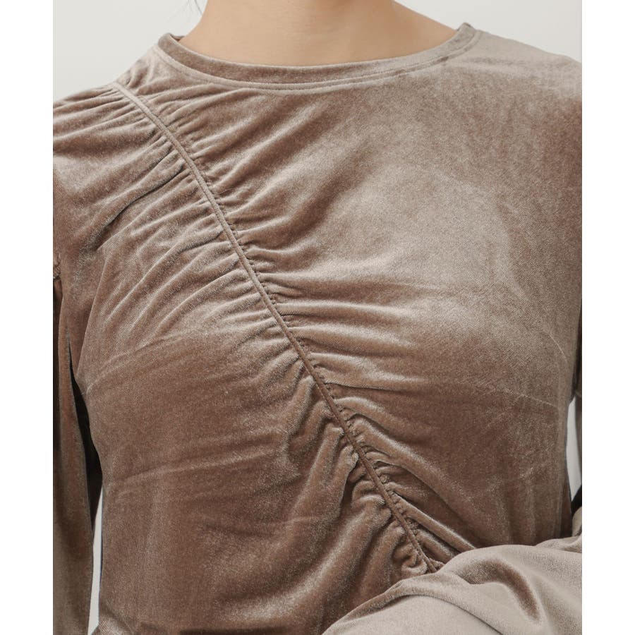 【デザイン・シルエット】 ベロア地の季節感のあるトップスです。