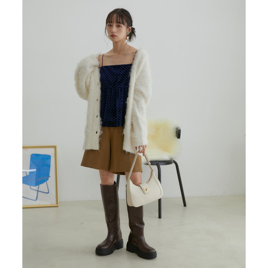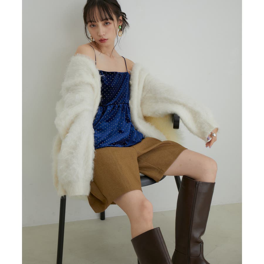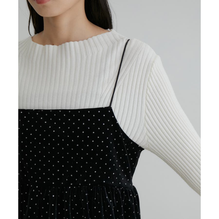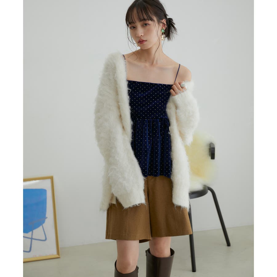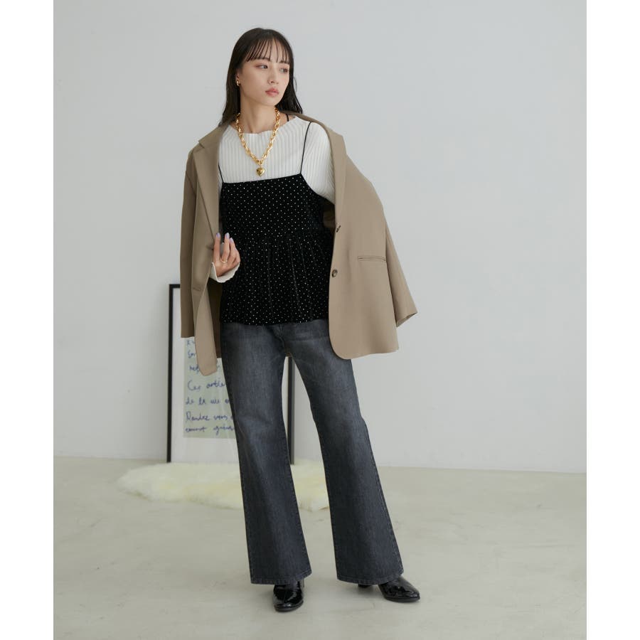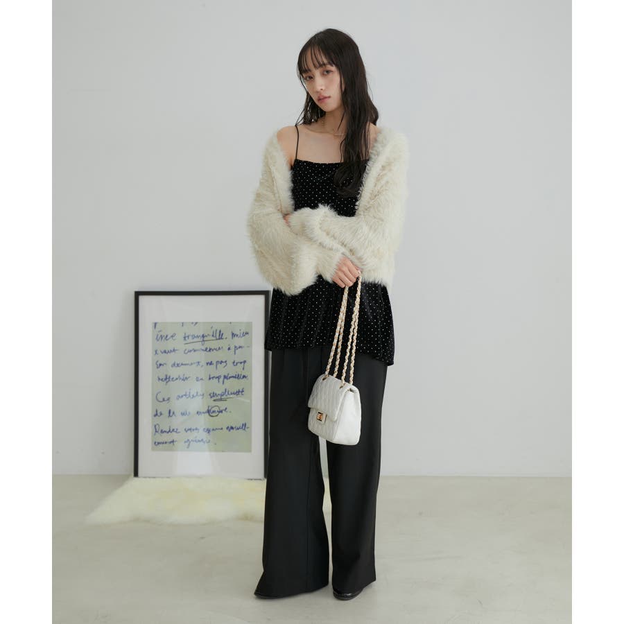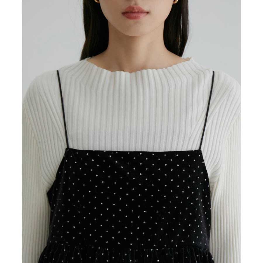 【デザイン・シルエット】 今年注目素材のベロアにラメドットのプリントを施したキャミソールです。