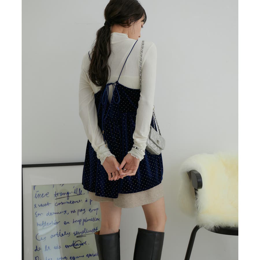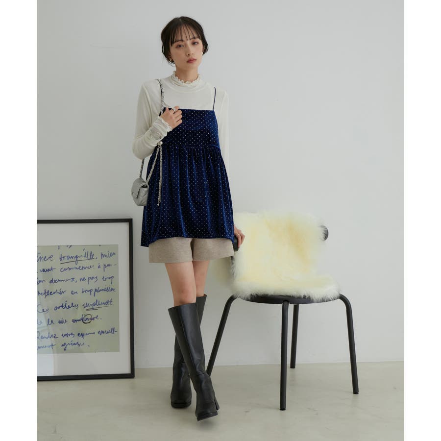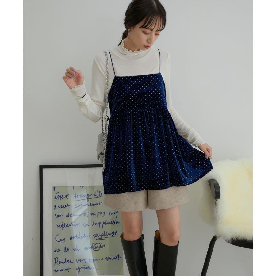 【選べる着丈】ラメドットベロアキャミトップス【洗える】