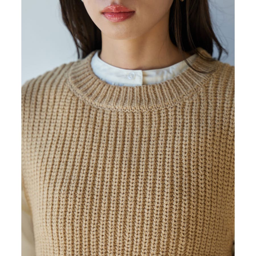 【デザイン・シルエット】 タイトなインナーやロンT、袖にボリューム感あるシャツやブラウスまで様々なレイヤードを楽しめるニットベストです。