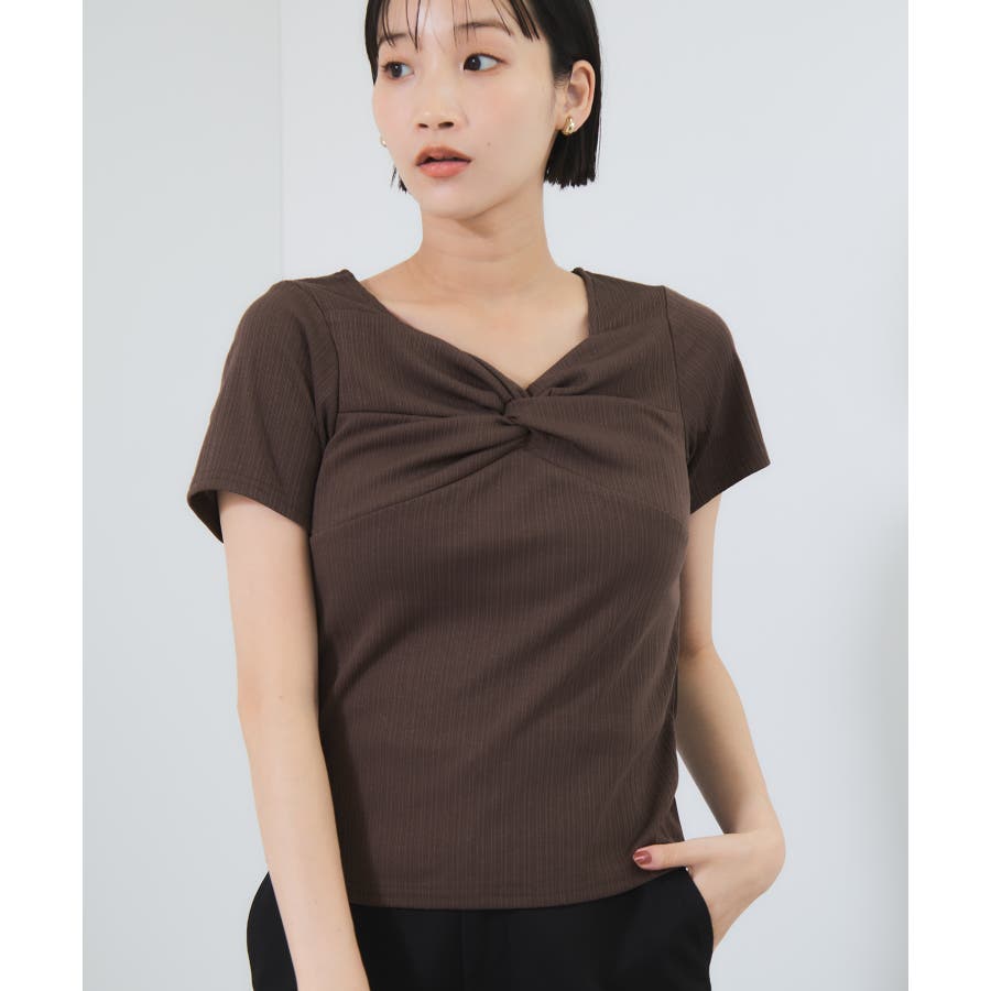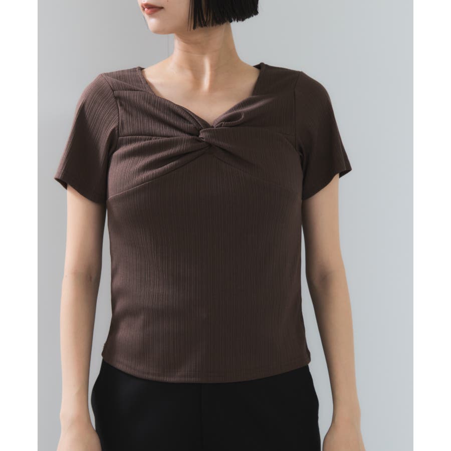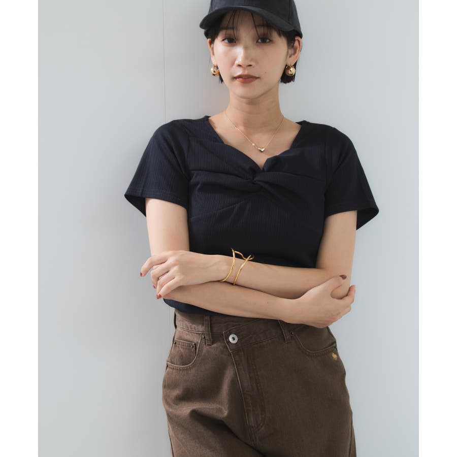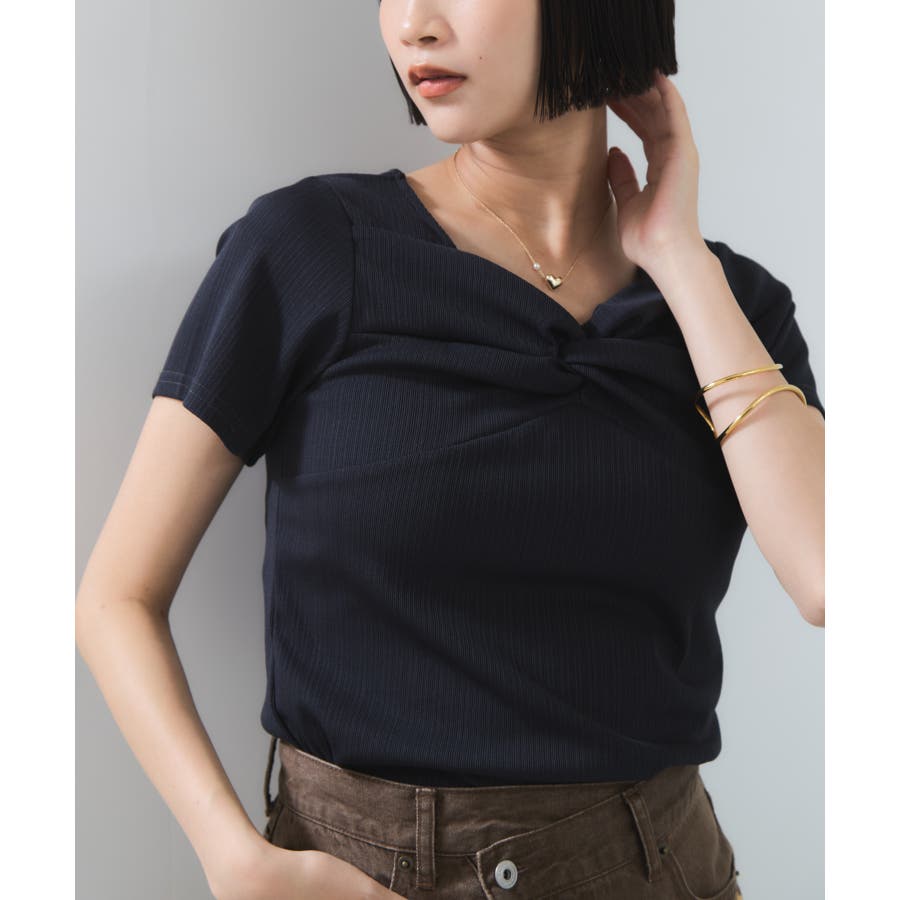 ・フロントにツイストドレープを施したカットソー。