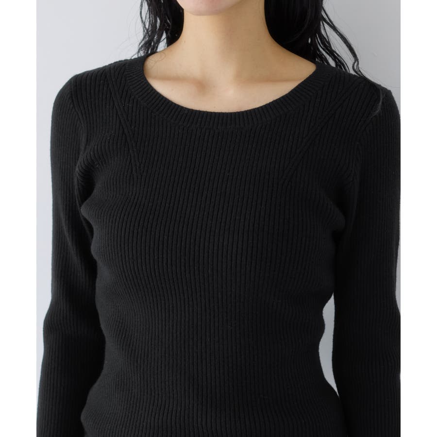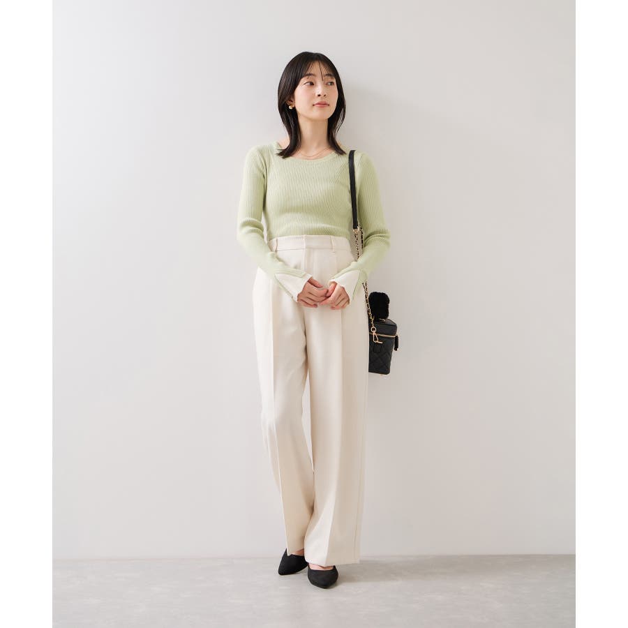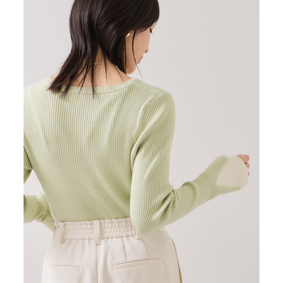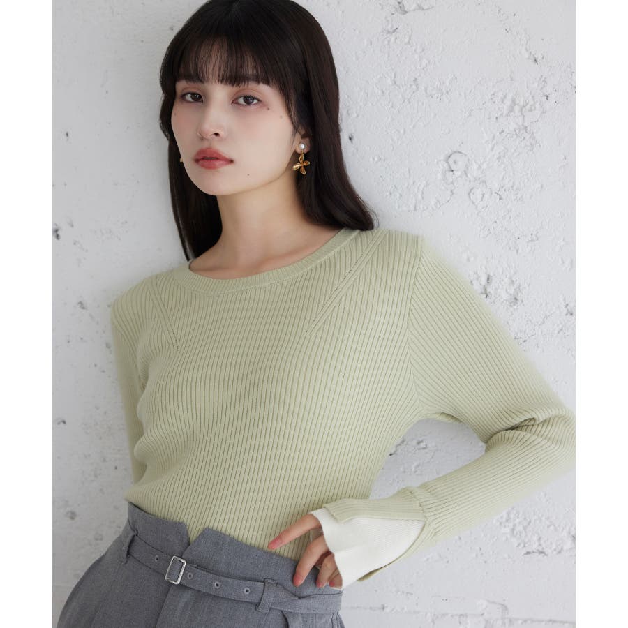 ・ほどよく身体に沿うシルエットでフェミニンな雰囲気を演出するリブ編みニット。