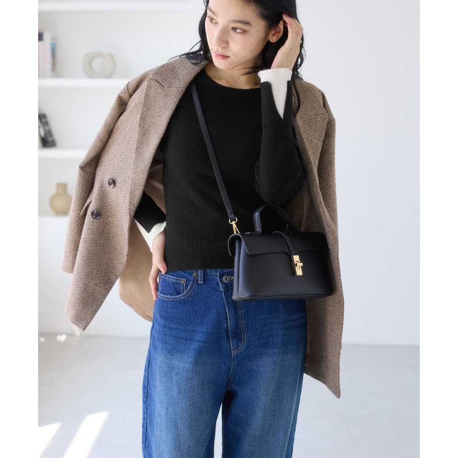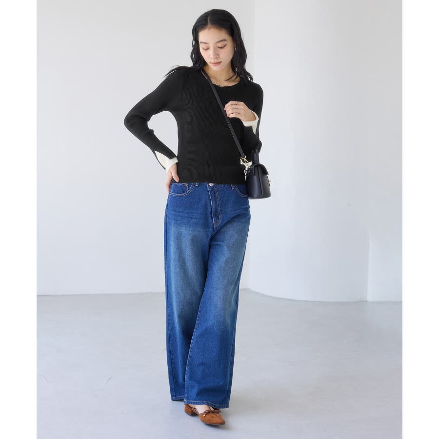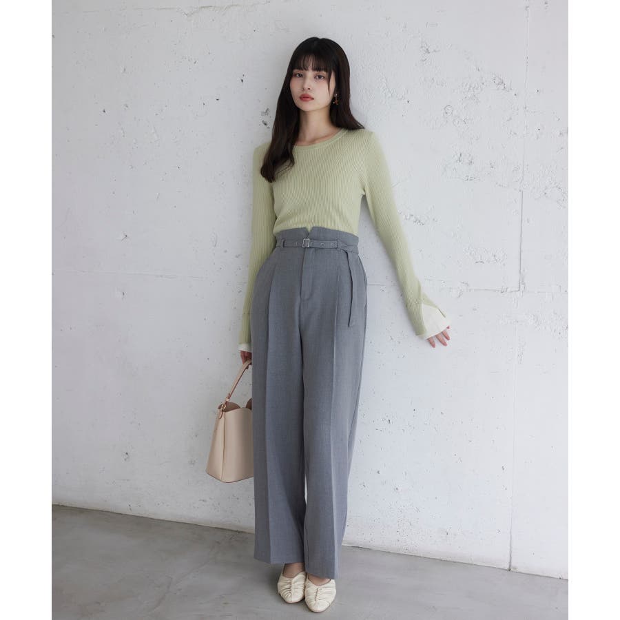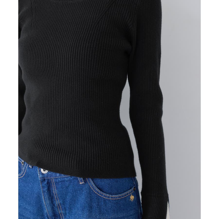 ・ほどよく身体に沿うシルエットでフェミニンな雰囲気を演出するリブ編みニット。