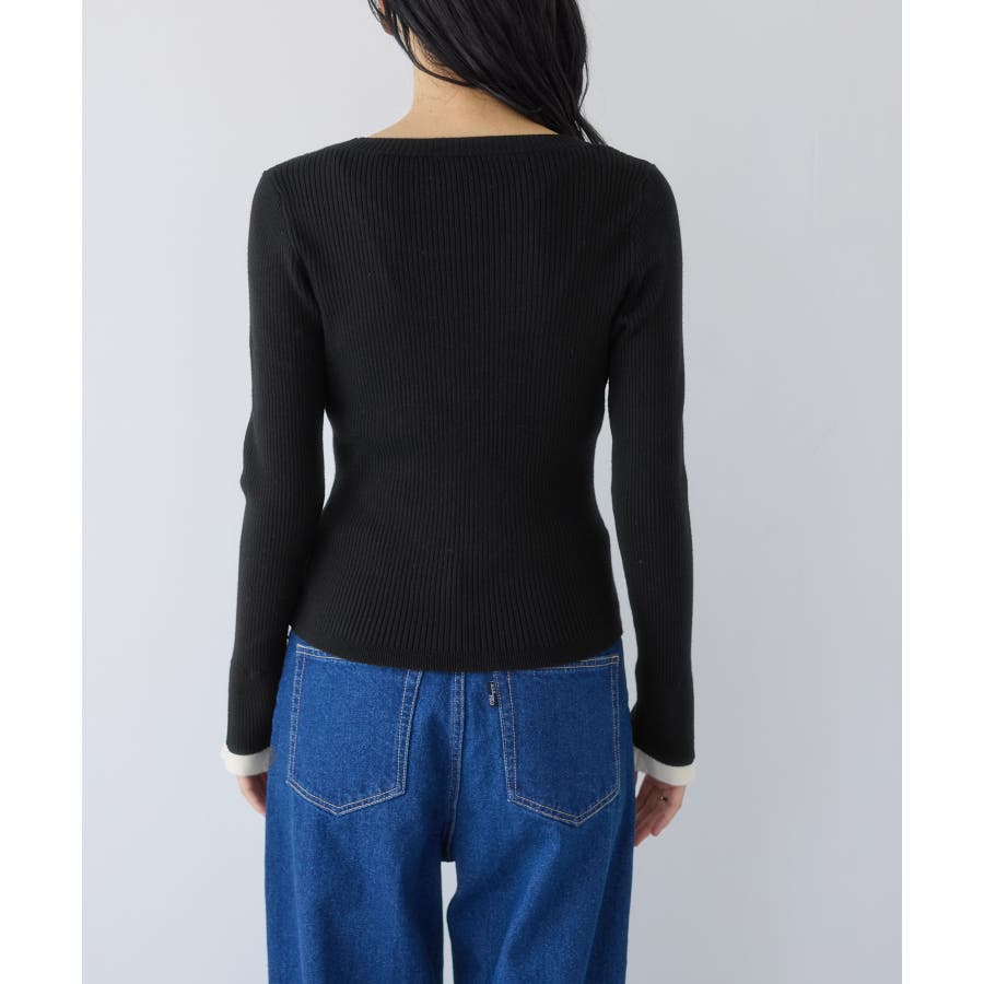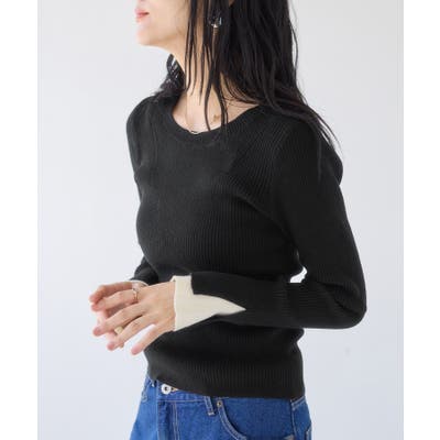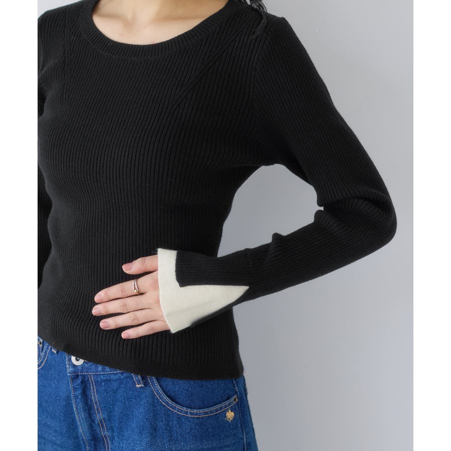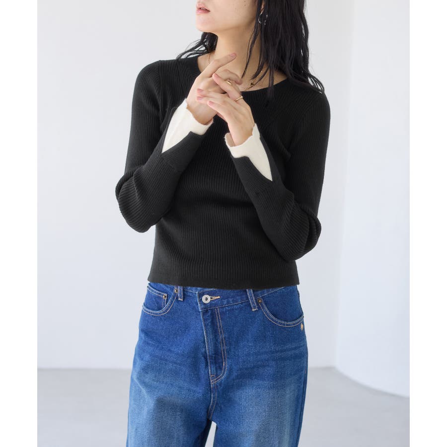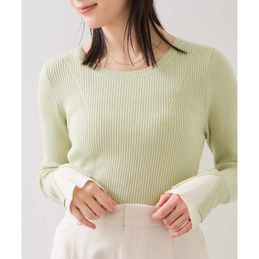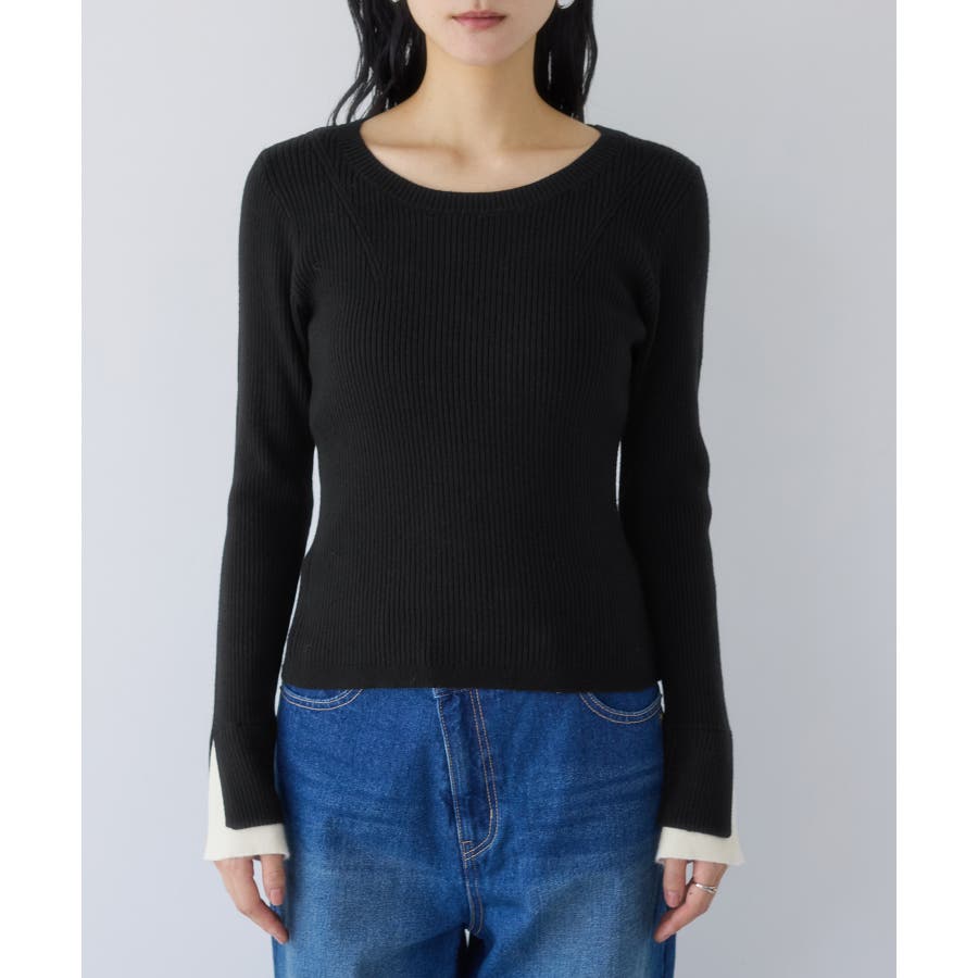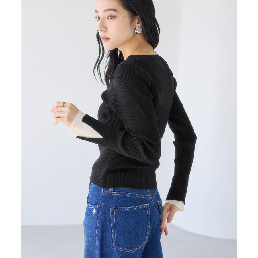 配色ダブルスリーブリブニット