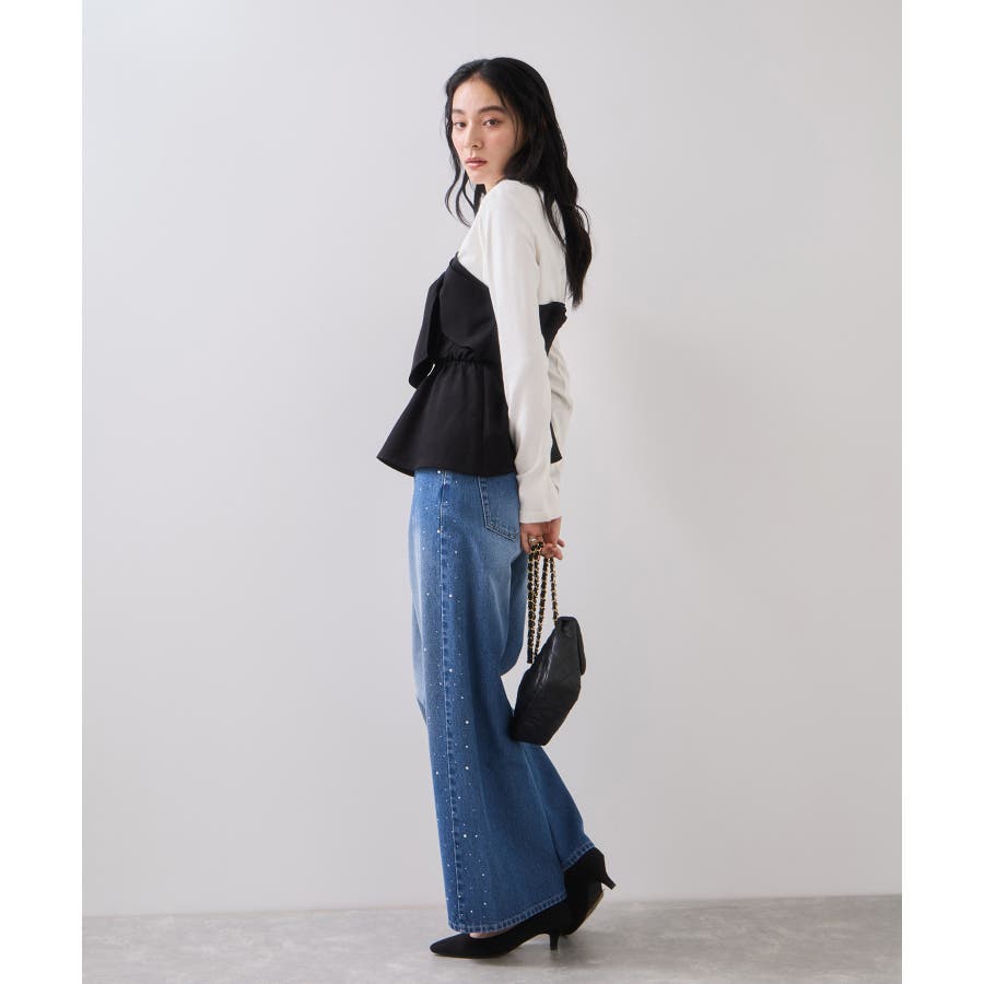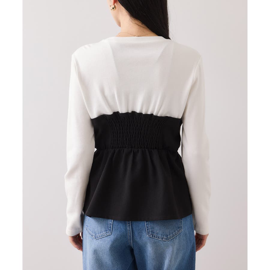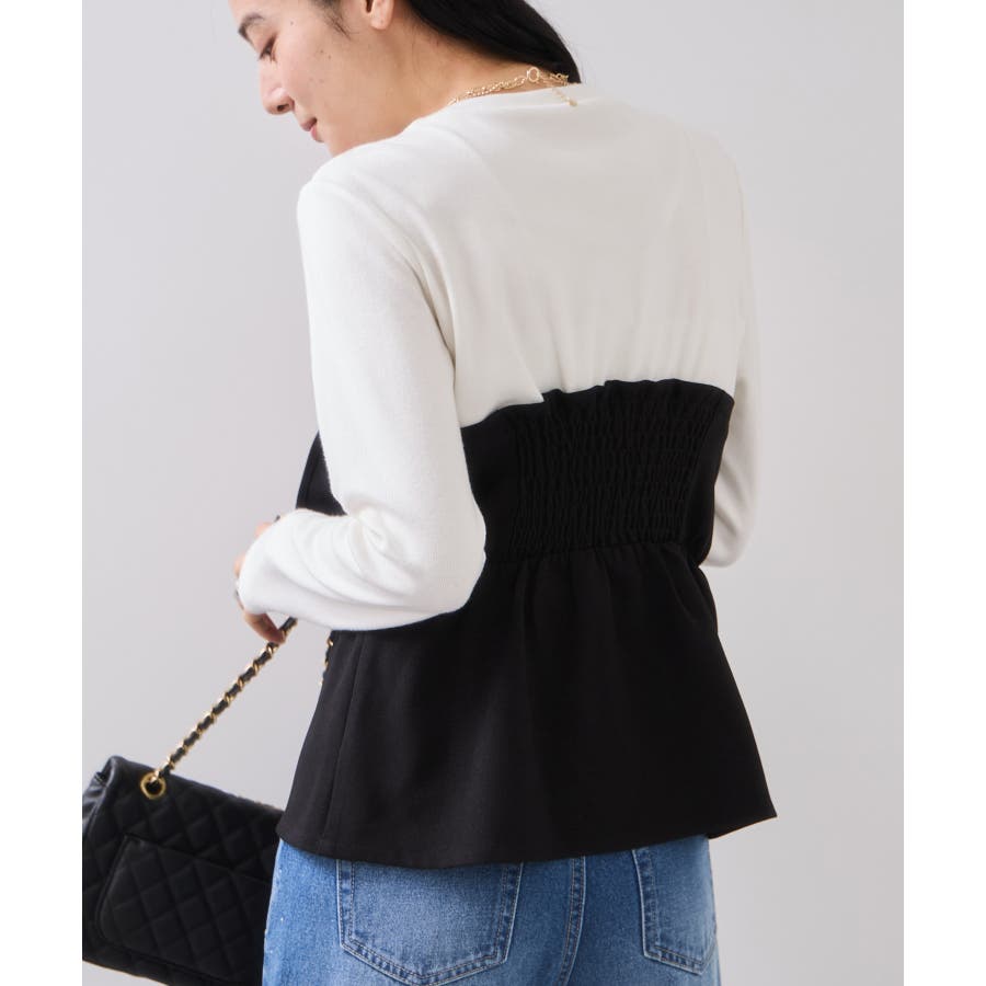 ウエスト位置高めにゴムが入っており、ペプラム仕様にしているので、脚長効果が出てスタイルが良く見えます。