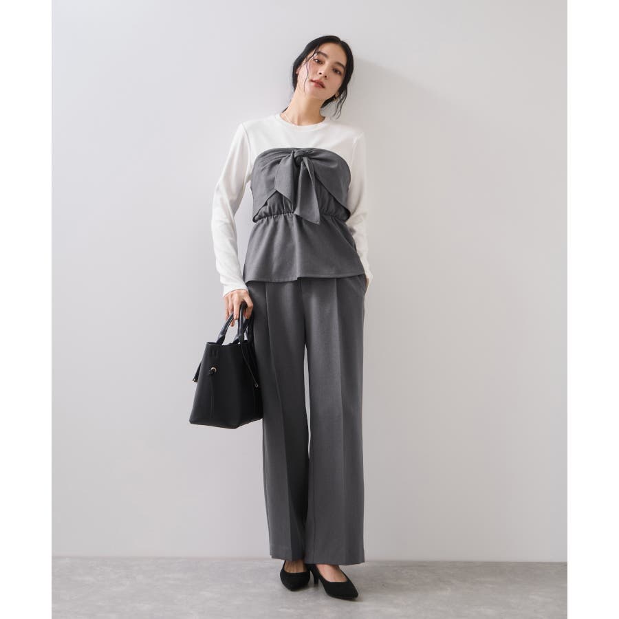 美easyウーリッシュリボンビスチェドッキングカットソープルオーバー セットアッ…