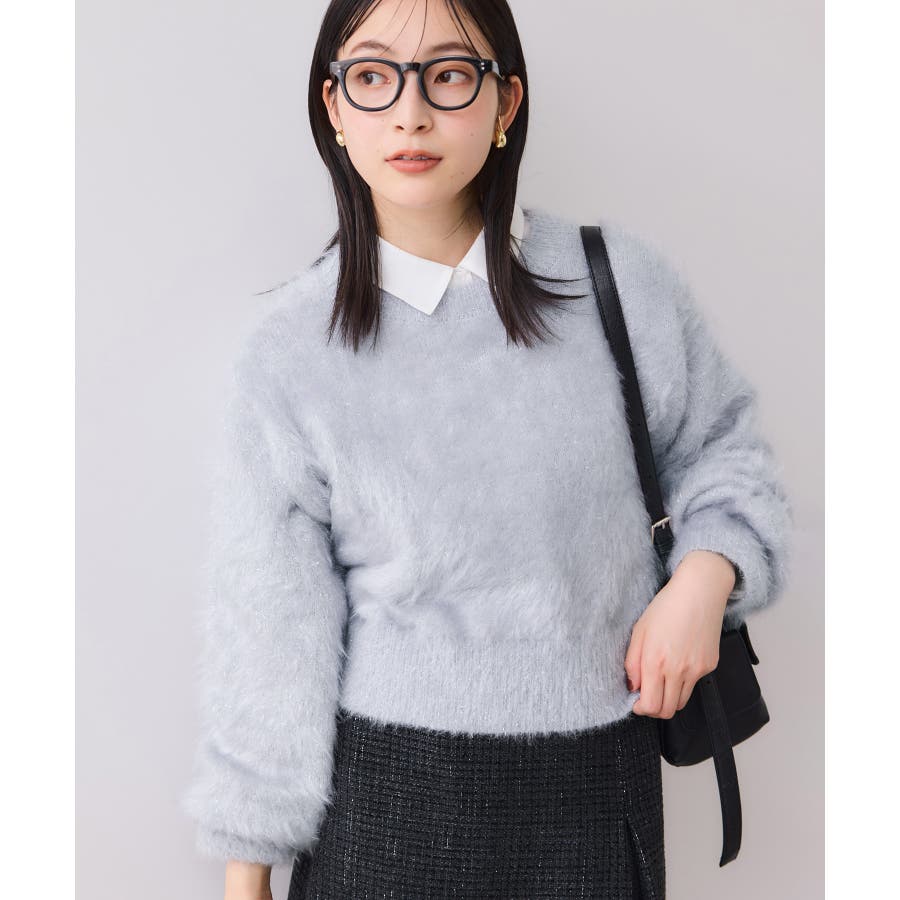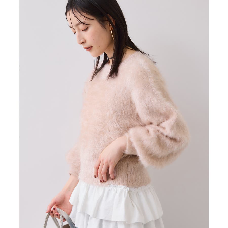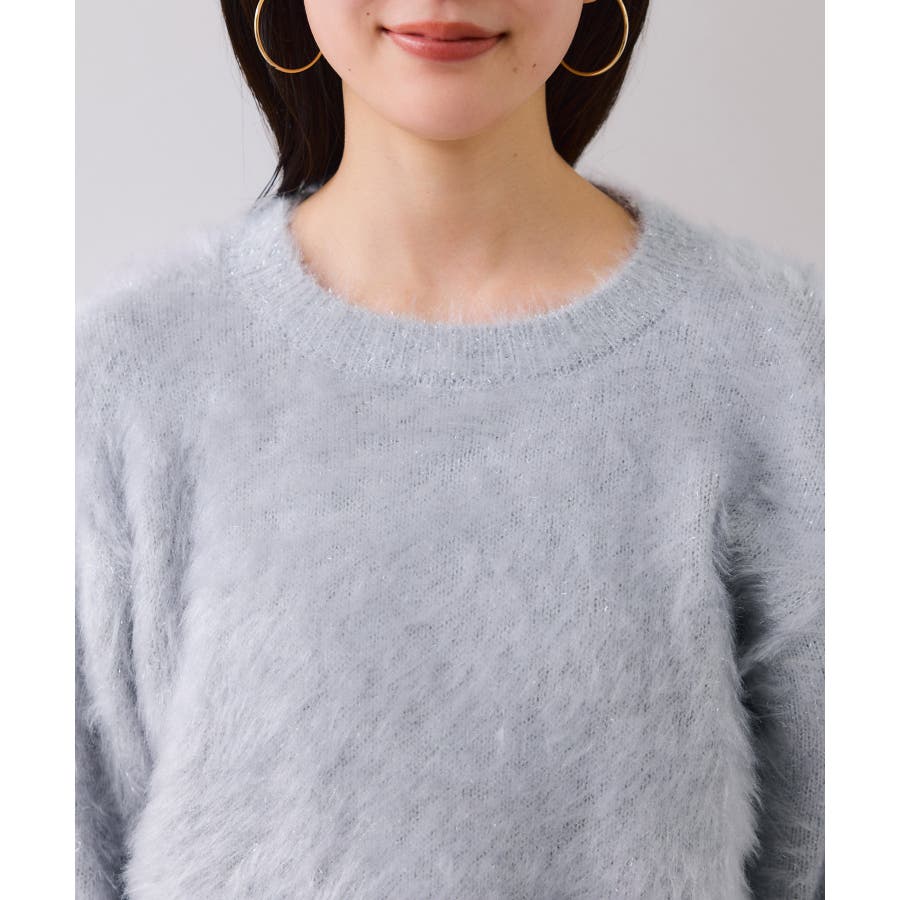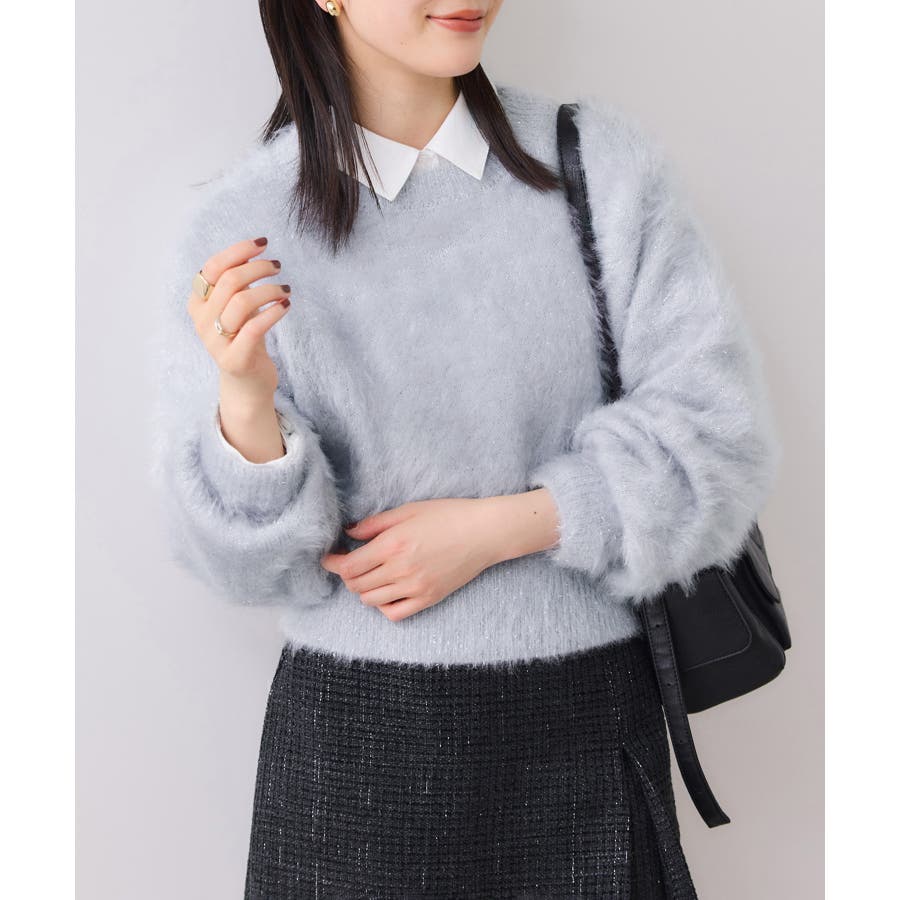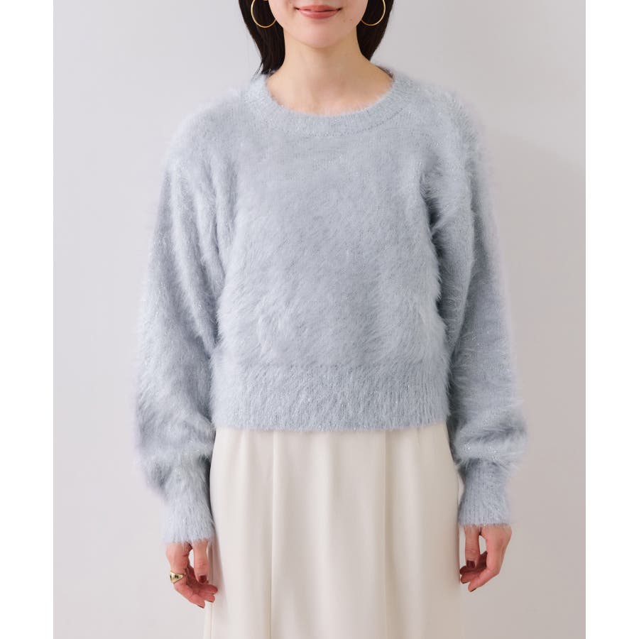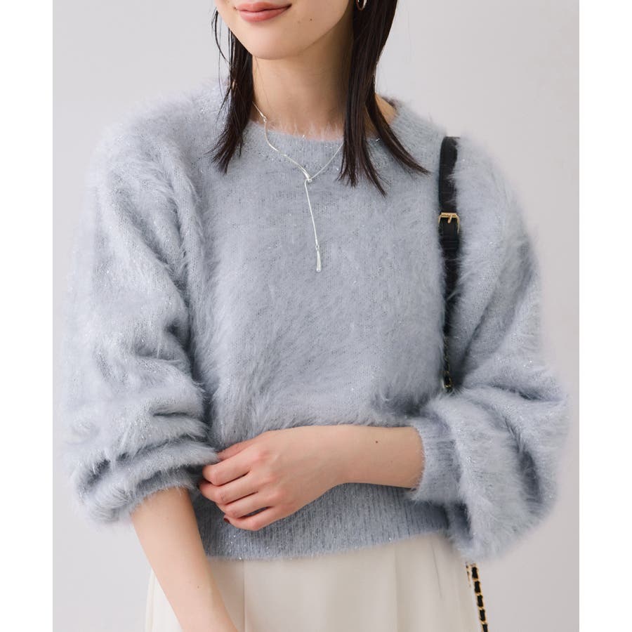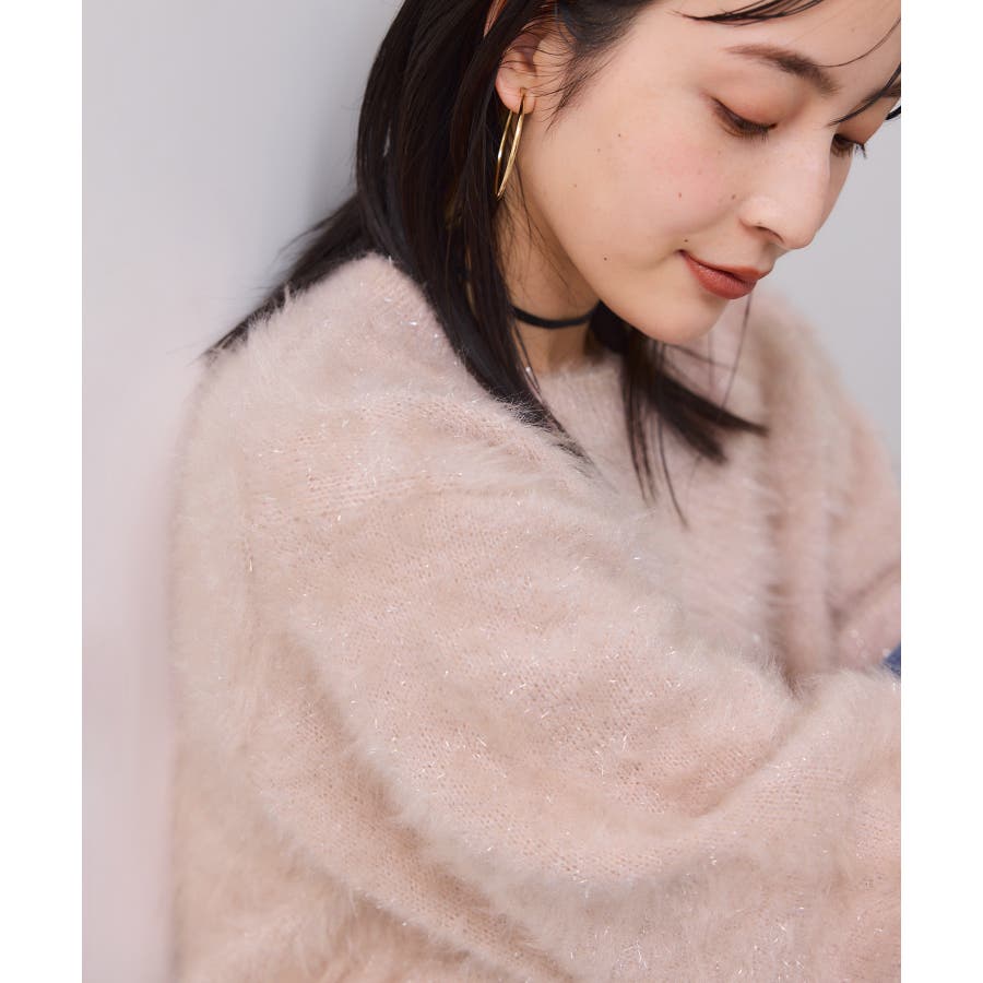 特徴的なキラキラのラメ糸が可愛いニットプルオーバー。着丈はコンパクトながら袖や身頃に程よくボリュームを持たせてメリハリのあるシルエットに。シンプルなデザインですが糸の遊び心でこの冬の主役級アイテムです!