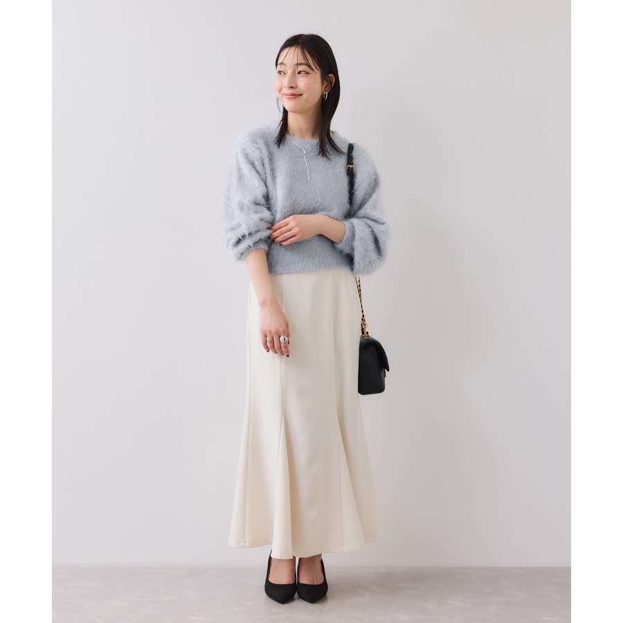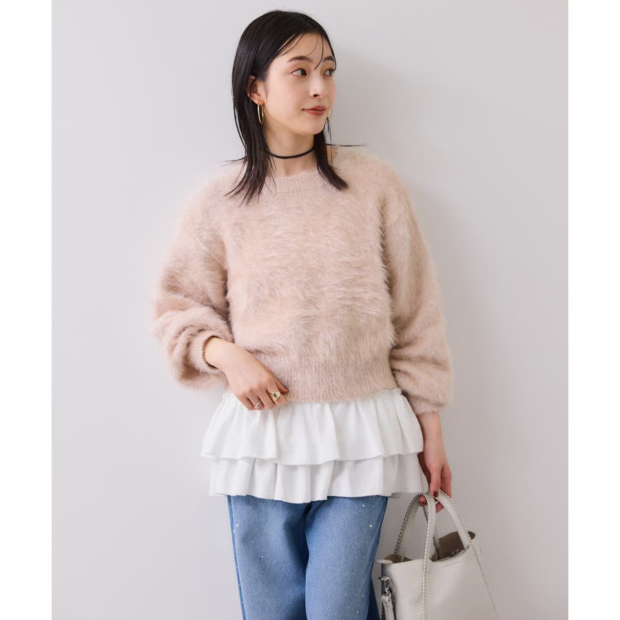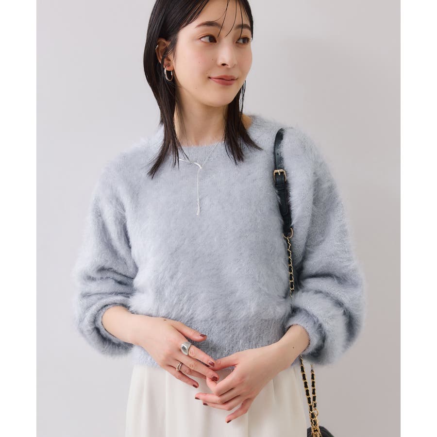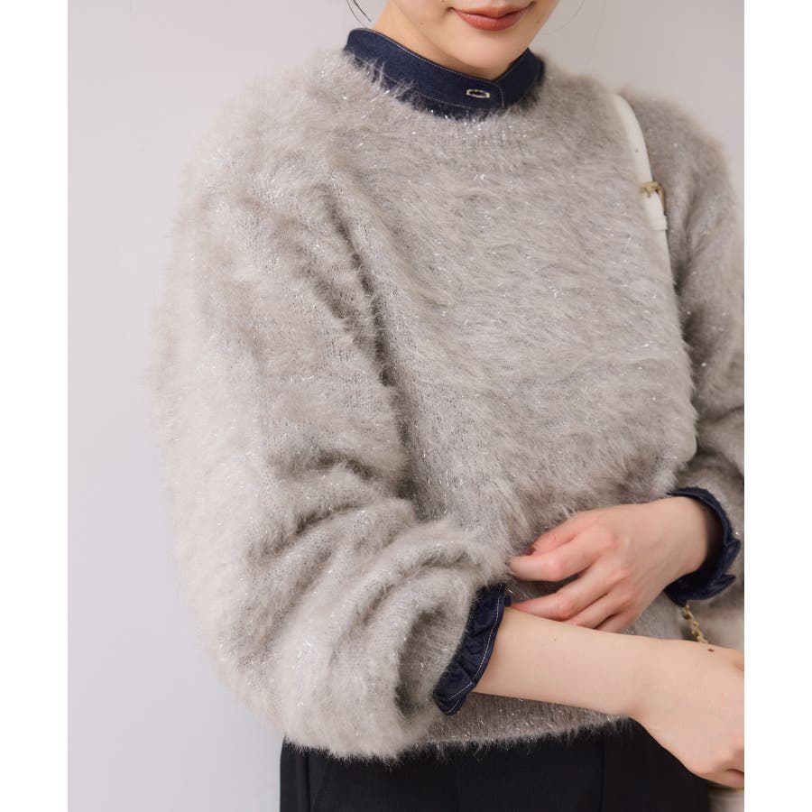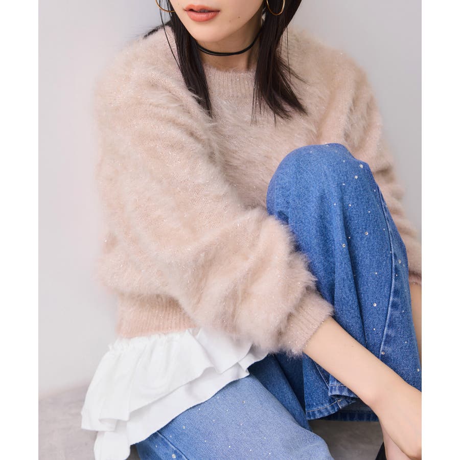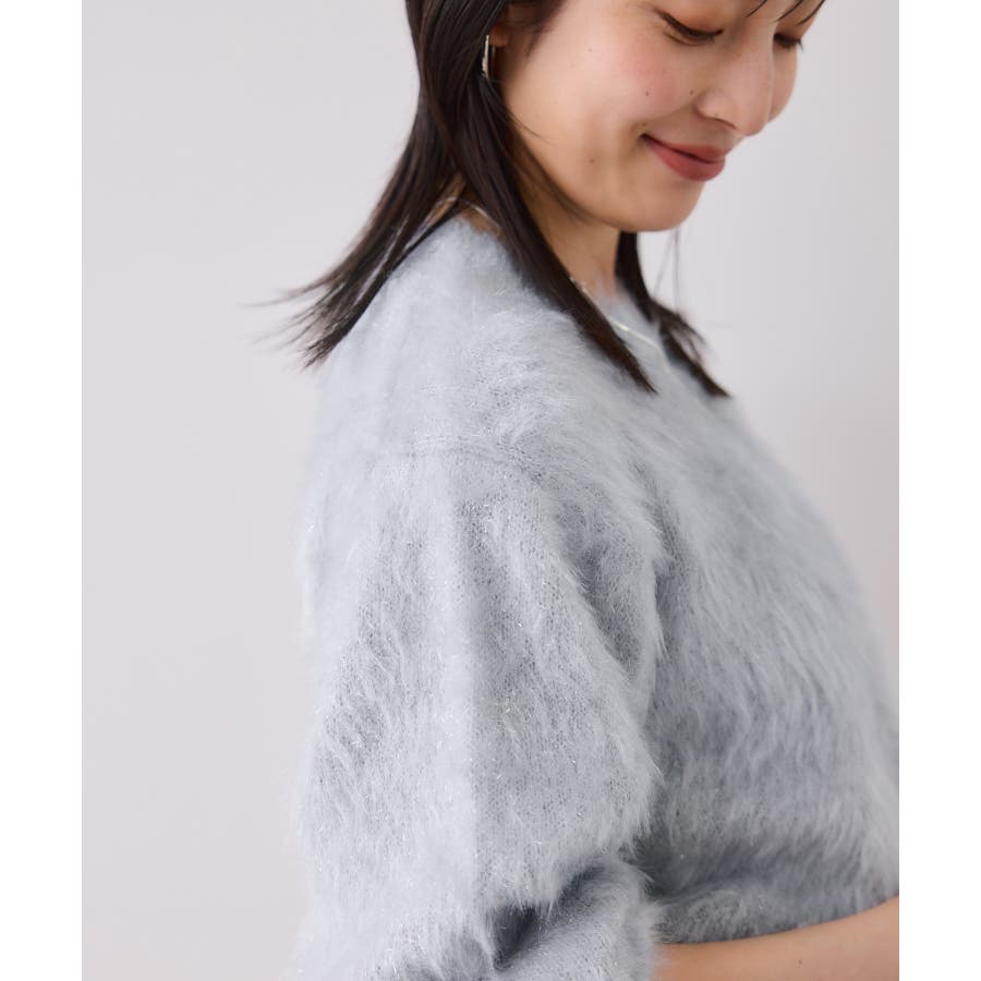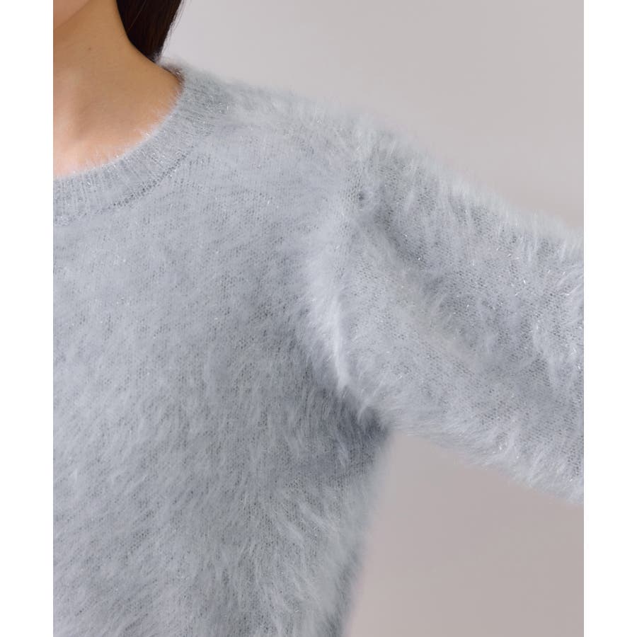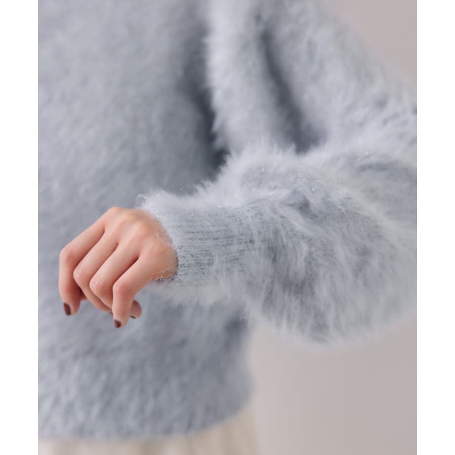 特徴的なキラキラのラメ糸が可愛いニットプルオーバー。着丈はコンパクトながら袖や身頃に程よくボリュームを持たせてメリハリのあるシルエットに。シンプルなデザインですが糸の遊び心でこの冬の主役級アイテムです!