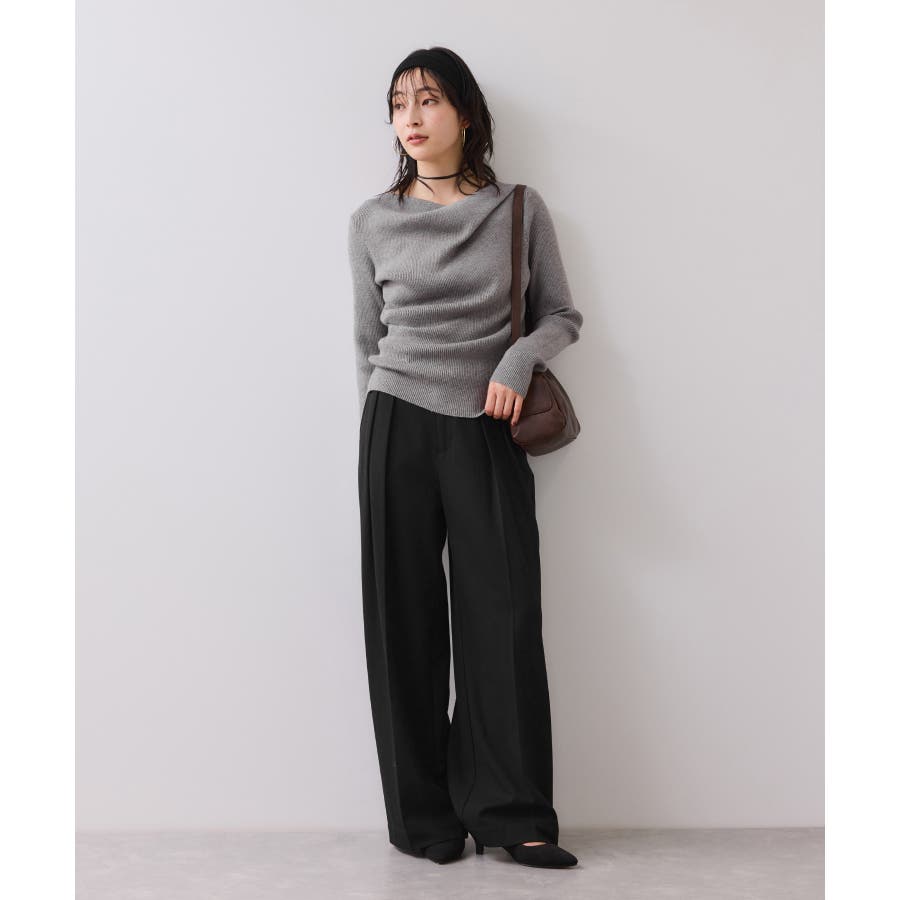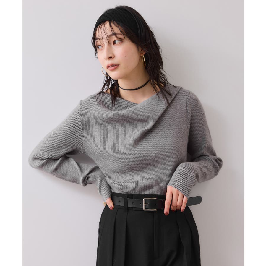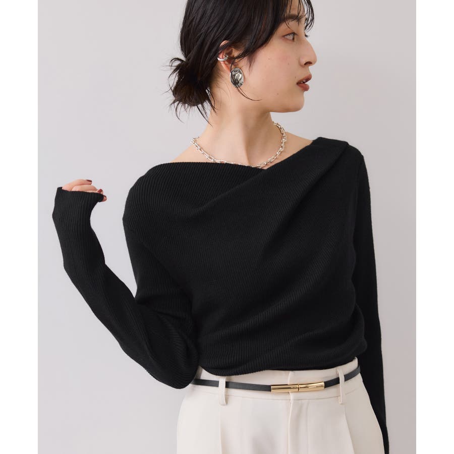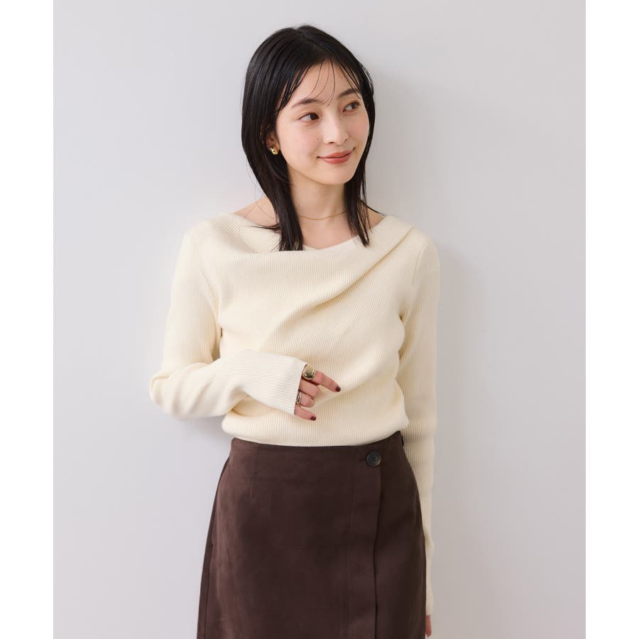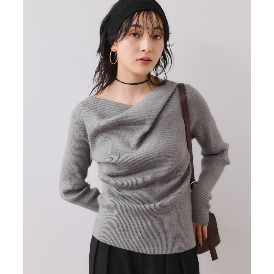 【美得】もちもちドレープリブニットトップス/イージーケア