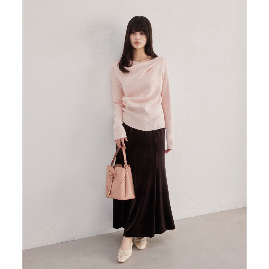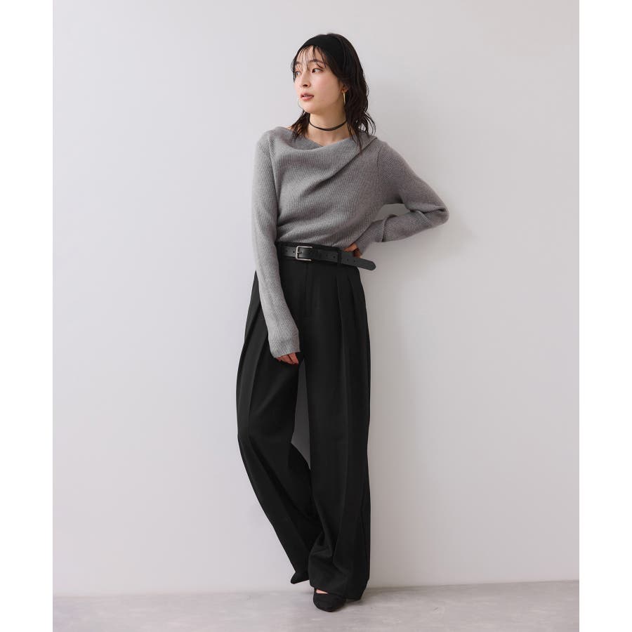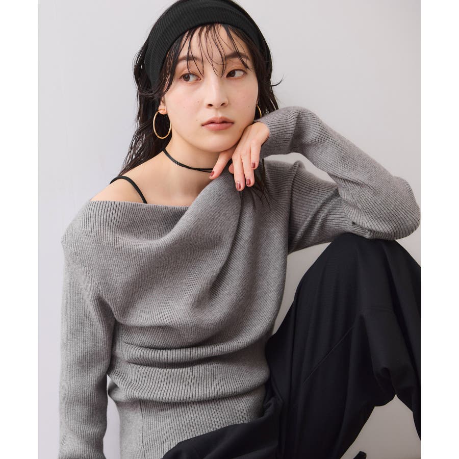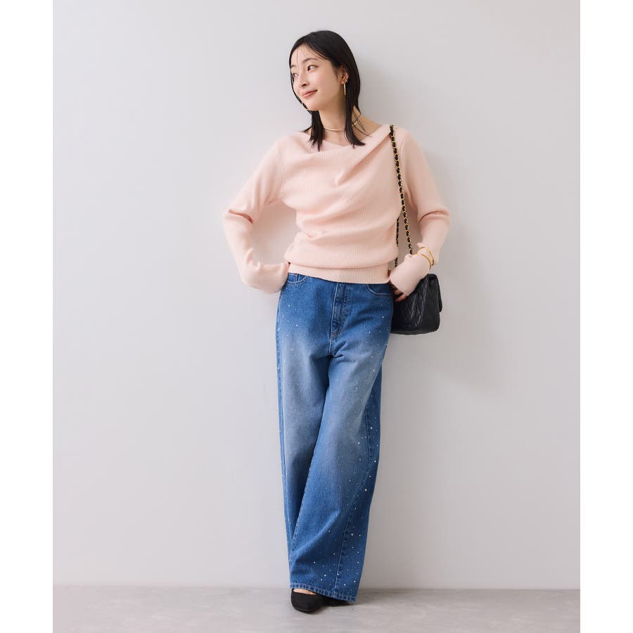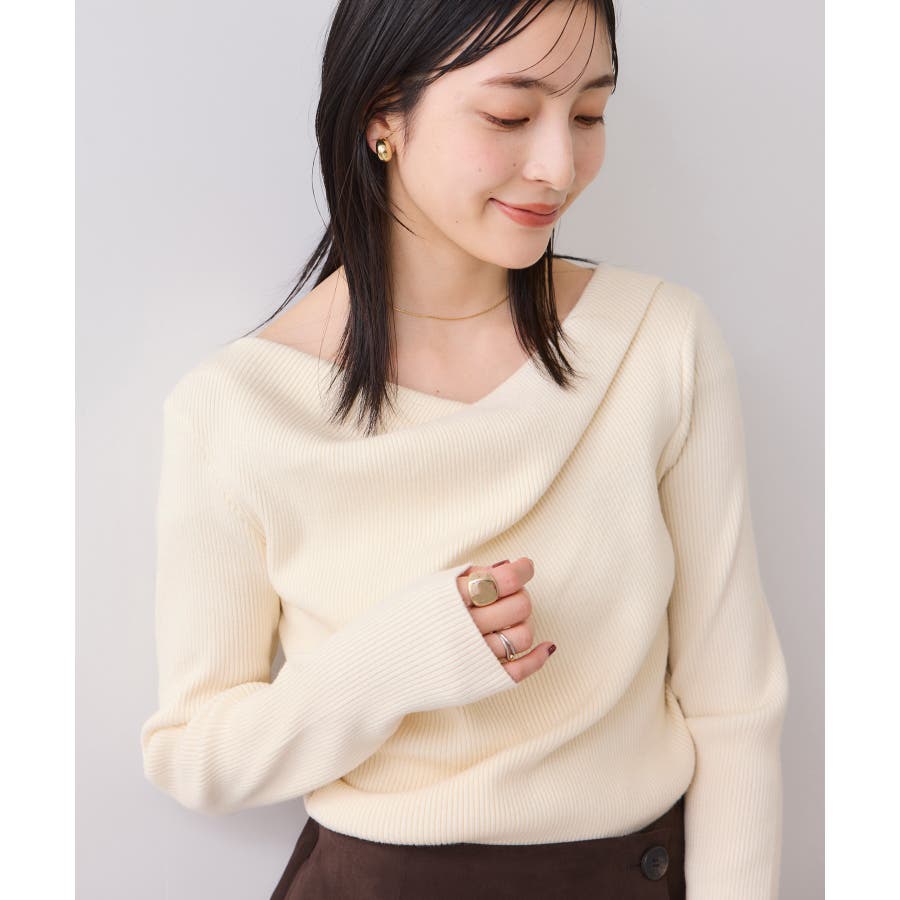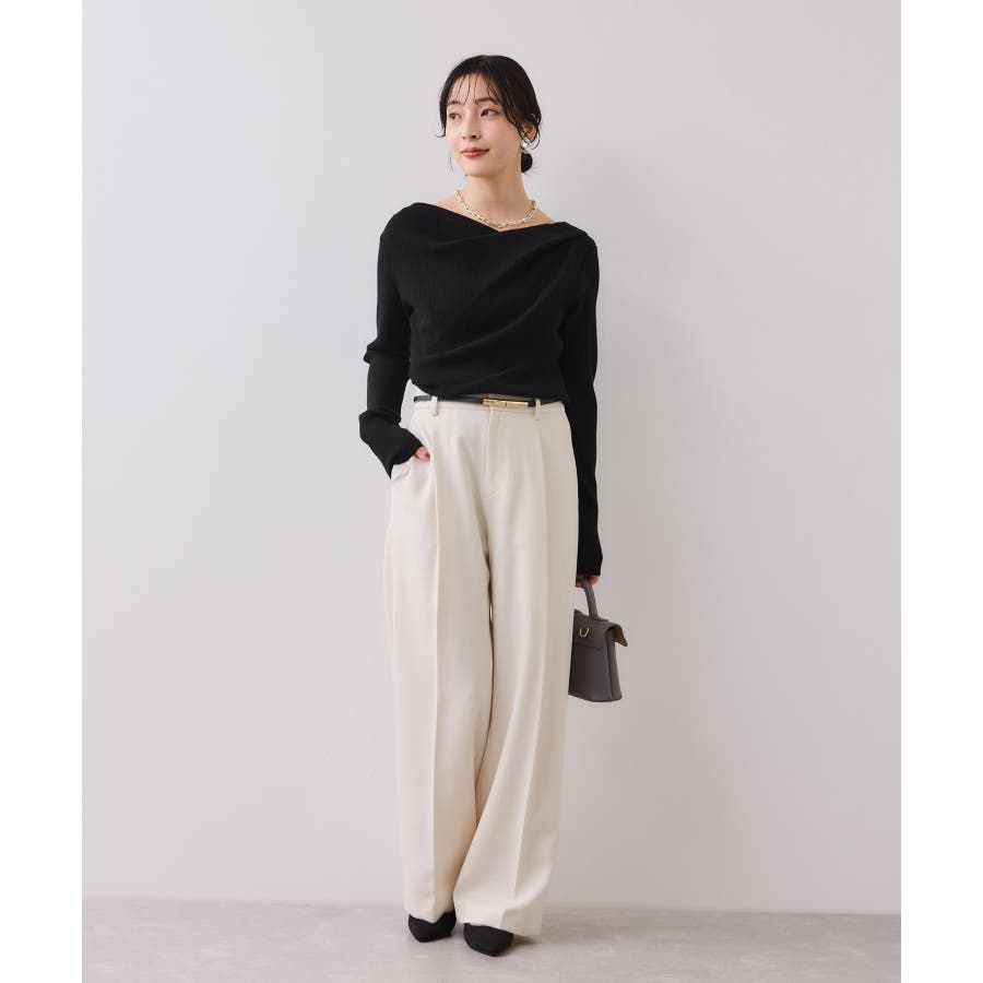 【美得】もちもちドレープリブニットトップス/イージーケア