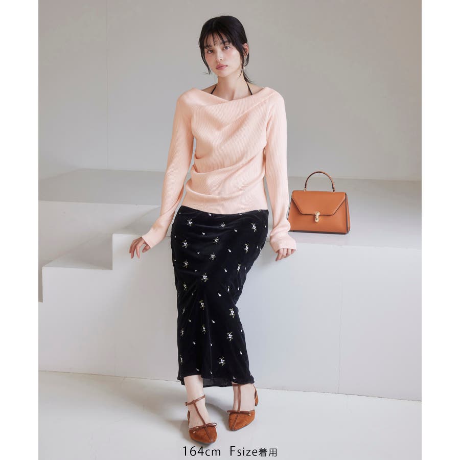 ハイゲージニットなので一枚で着て華やかに、アウターのインにも、と今買って長く使える万能感が〇