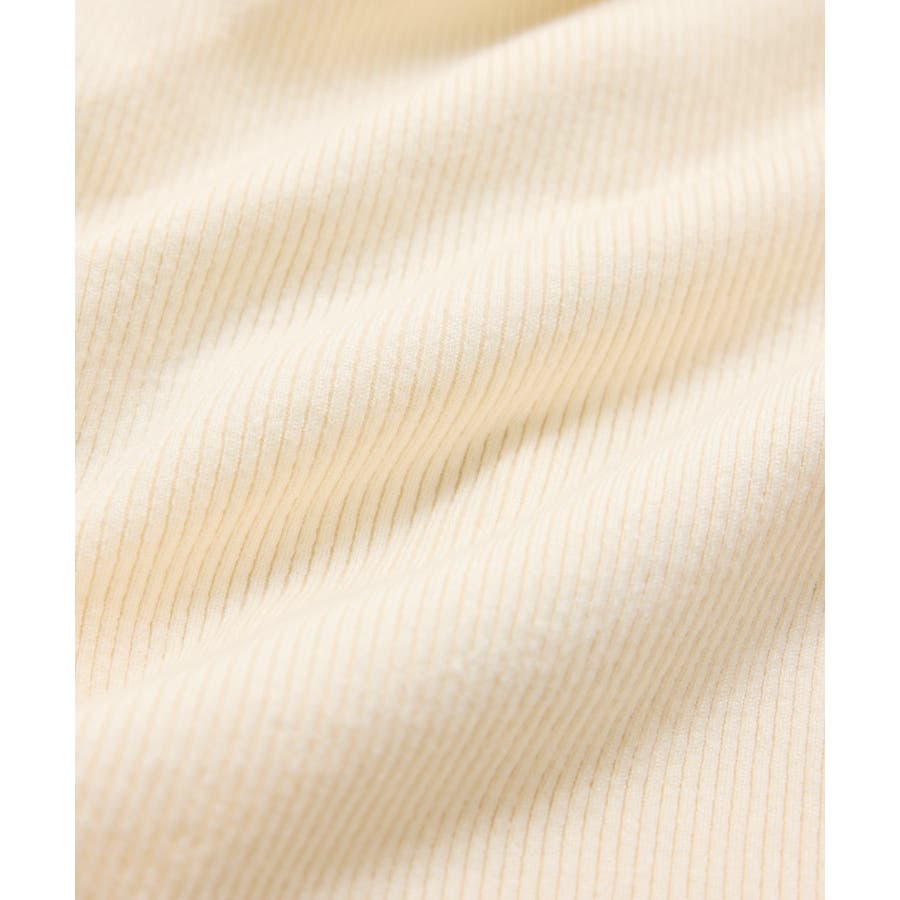 厚みのあるリブなので着心地がいいのはもちろんの事、体のラインを拾いにくいのも嬉しいポイント。