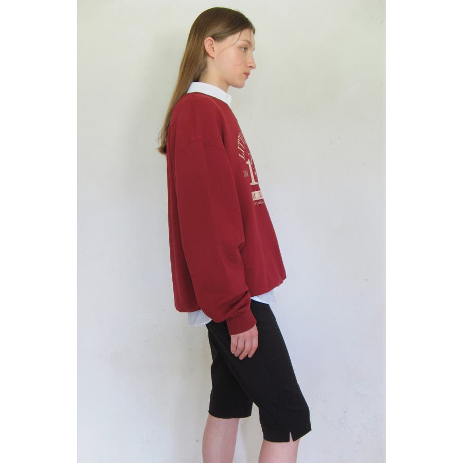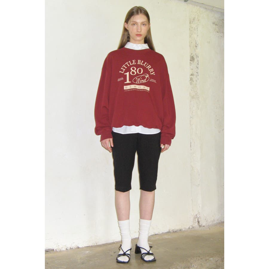 【sinoon/シヌーン】 韓国で2015年に設立されたロマンティック×ガーリーをコンセプトにしたファッションブランド。リアル店舗を韓国のトレンド最先端エリア、狎鴎亭(アックジョン)に構える。日常に溶け込む“ナチュラルな甘さ”漂うムードが韓国のおしゃれ女子に支持されています。 【デザイン・シルエット】 「LITTLE BLURRY」のロゴがアクセントの、ヴィンテージなムードが感じられるスウェットシャツです。 ・前板前面のタイポグラフィックナ染めにガーマンガーメントウォッシング加工により特有のヴィンテージな色味が特徴。 ・ボディ裾ラインがとれるようにデザインしてセミコクーンラインに落ちるシルエットで、ルーズフィットで制作され、体型にこだわらず着用が可能なアイテムです。 ・裏側のネックラインにヘリンボーンテープを付け加え、すっきりとした仕上げ加工を施し、生地の反りや収縮防止のため、高温でダンブル、テンタ加工を施して変形を最小化しました。 【素材】 さらっとした肌触りの綿100%素材。 気軽に洗濯機洗いができるのも嬉しいポイントです。 【カラー】 ヴィンテージ感のあるディープレッドカラー。 【おすすめのスタイリング】 1枚での着用はもちろん、シャツレイヤードしたスタイリングもおすすめ◎ ボトムはワイドパンツやハーフパンツなどと合わせた大人カジュアルな合わせがおすすめです。 ----------------------------- 裏地:なし 光沢感:なし 透け感:なし 伸縮性:あり 生地の厚さ:普通 季節:秋、冬、春 ----------------------------- 【メーカー品番】 SN2D3TT009 LITTLE BLURRY SWEATSHIRT ※こちらは、WEB店舗と一部の実店舗限定の商品です。 ※画像の商品はサンプルです。 実際の商品と仕様、加工、サイズが若干異なる場合がございます。