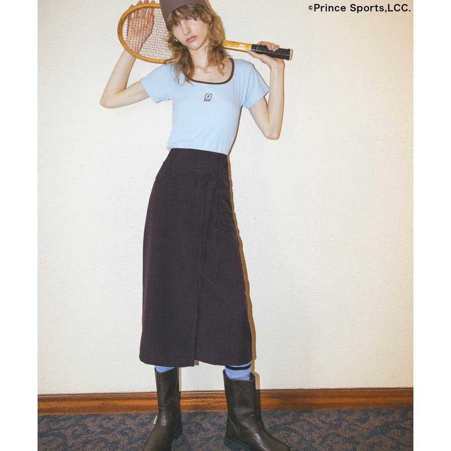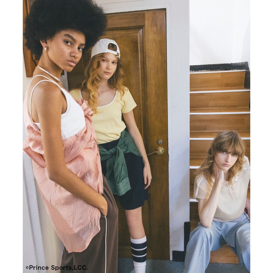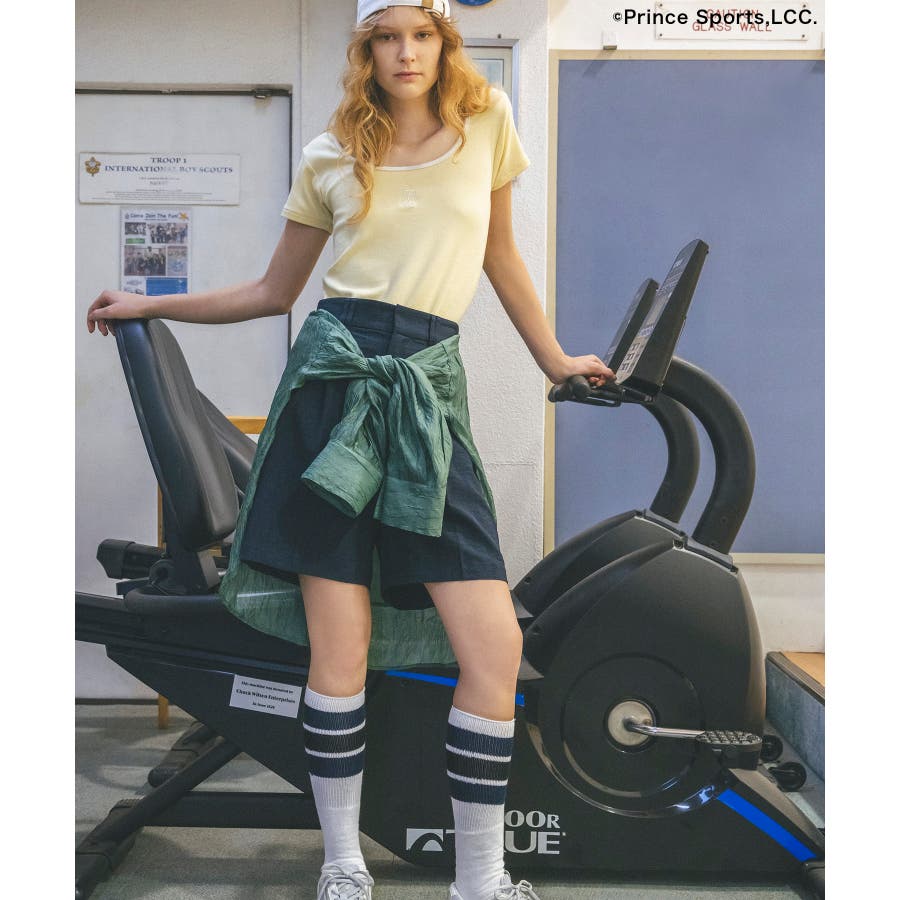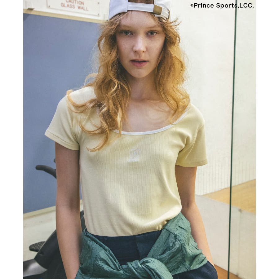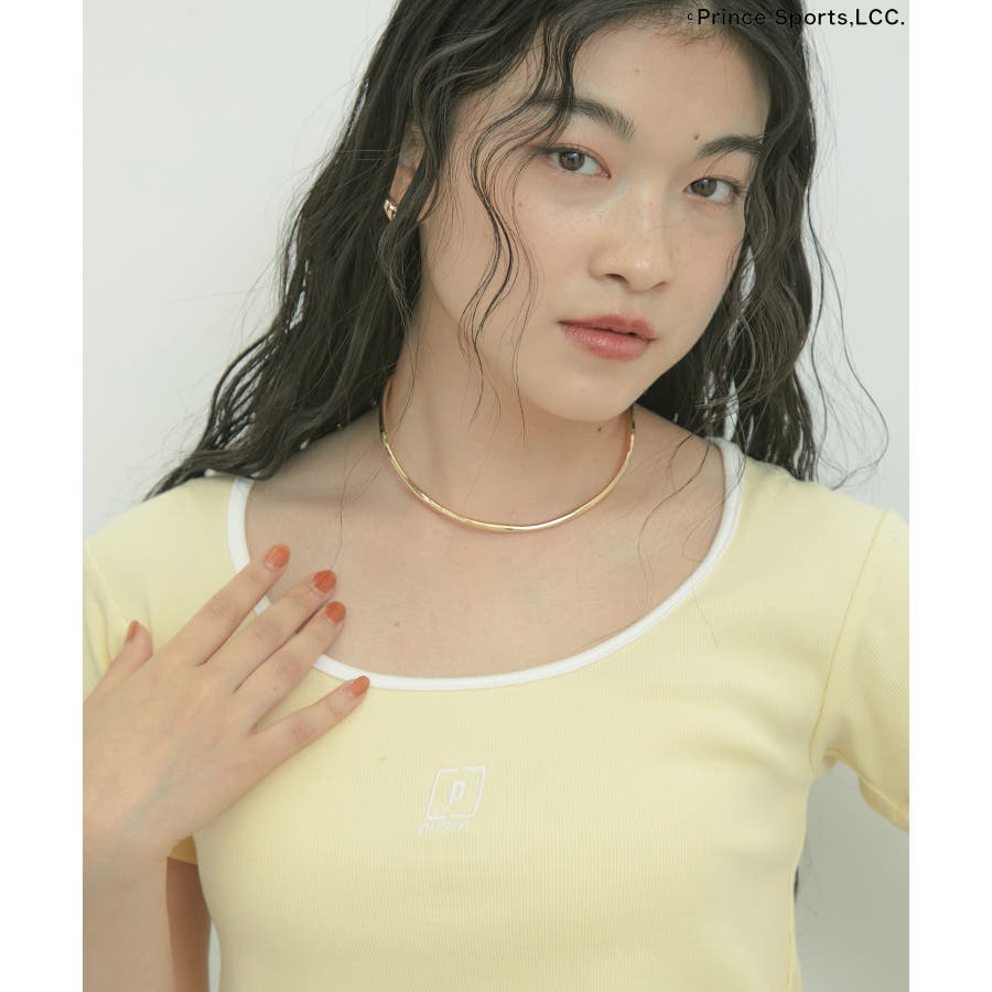 ◆2024-25 秋冬◆ 【デザイン・シルエット】 テニスウェアーから着想を受けデザインしたバイカラーTシャツ。 スポーティーな印象になりすぎないように、ネックの開きにこだわりデコルテラインが綺麗に見えるようにデザインしました。 テレコリブを使用しているので、程よくフィットし体のラインを綺麗に見せてくれます。 立体感のあるプリンスの刺繍ロゴがワンポイントになります。 【素材】 柔らかく伸縮性がある素材感。 【カラー】 スミクロ、サックス、ライトイエローの3色展開。 【おすすめのスタイリング】 コンパクトで女性らしいシルエットのサイズ感でどんなボトムスとも相性がぴったりです。 今シーズンはワイドパンツやフレアシルエットのボトムスと合わせるのがおすすめ!