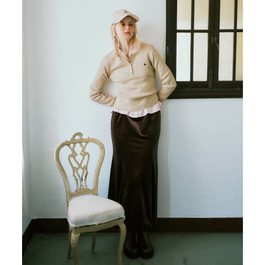 1枚で女性らしく着れるシルエットなので、JKなどのハンサムなアイテムのインナーにおすすめです。