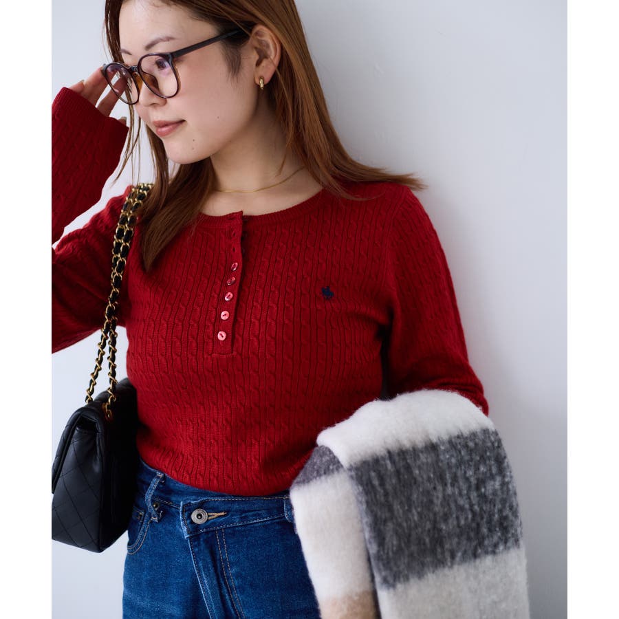 【POLO BCS】VIS別注ヘンリーネックミニケーブルニットトップス