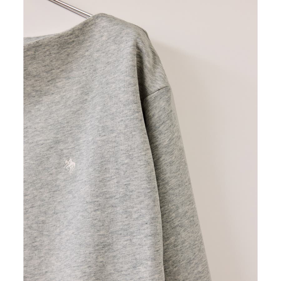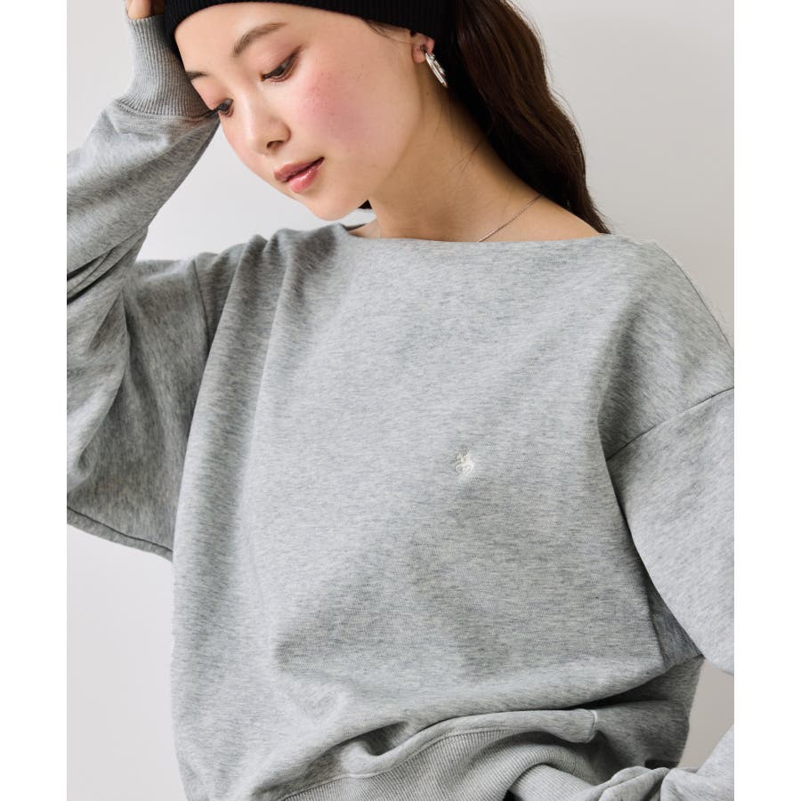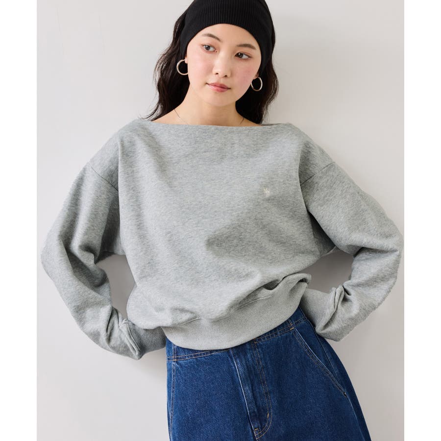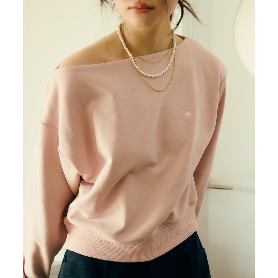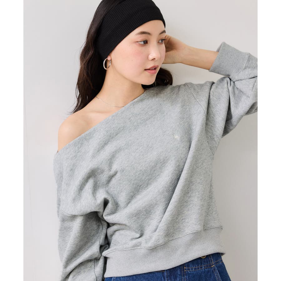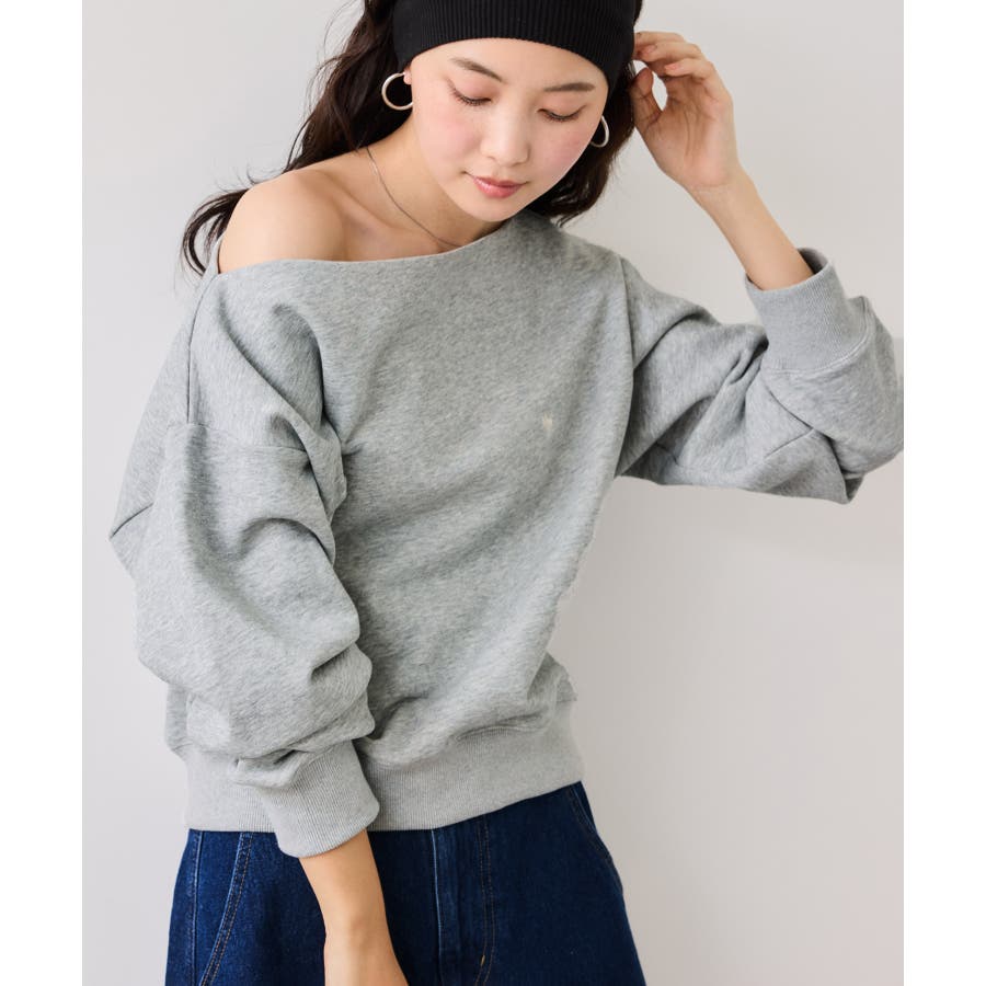 メンズライクな裏毛のスウェットを女性らしく着れるようなオフショルデザインのスウェットです。