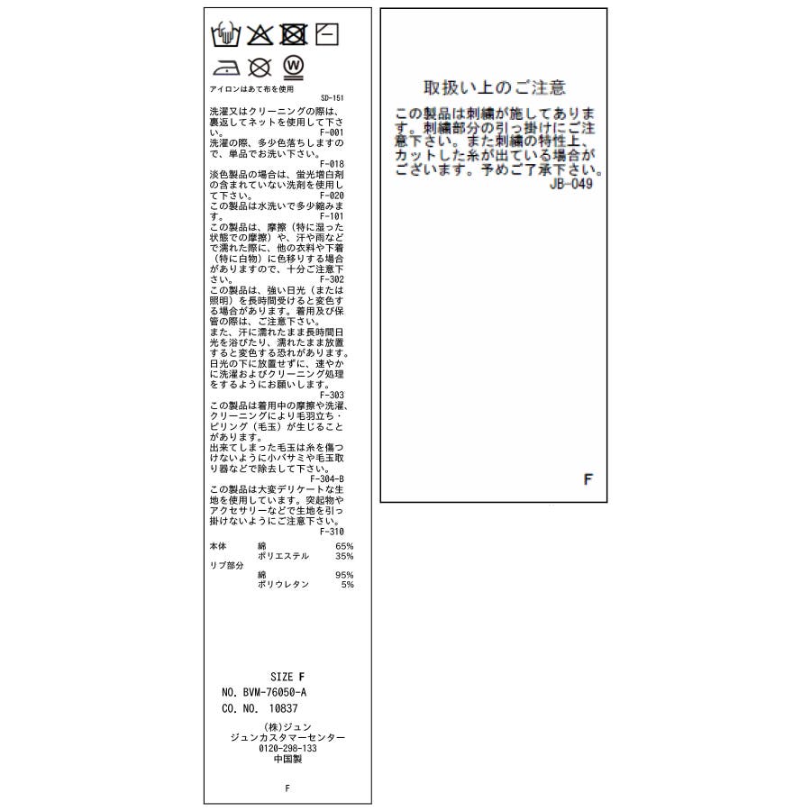 | 素材 | (本体) 綿 65% ポリエステル 35% (リブ部分) 綿 95% ポリウレタン 5% |