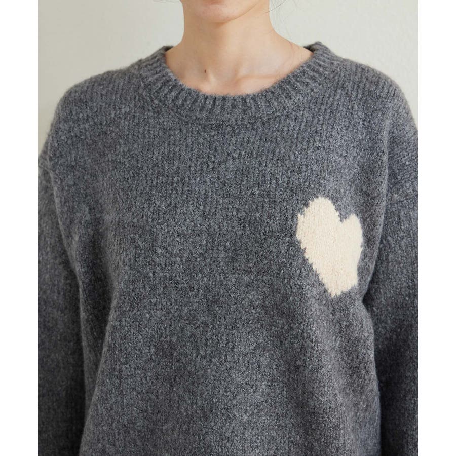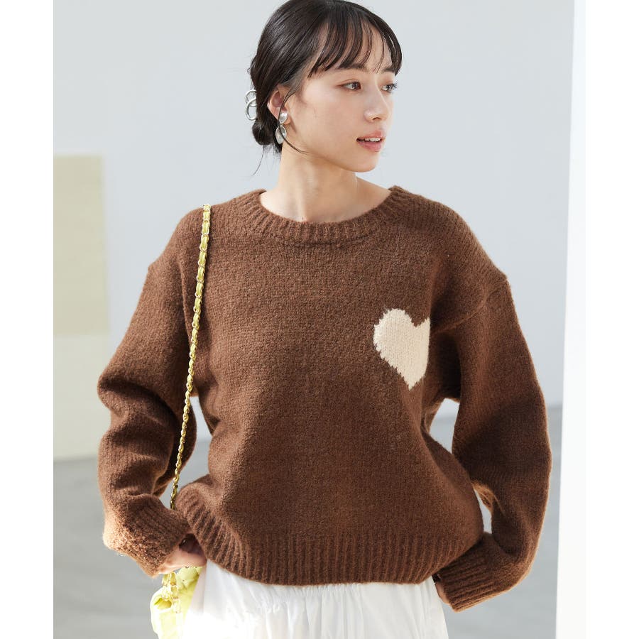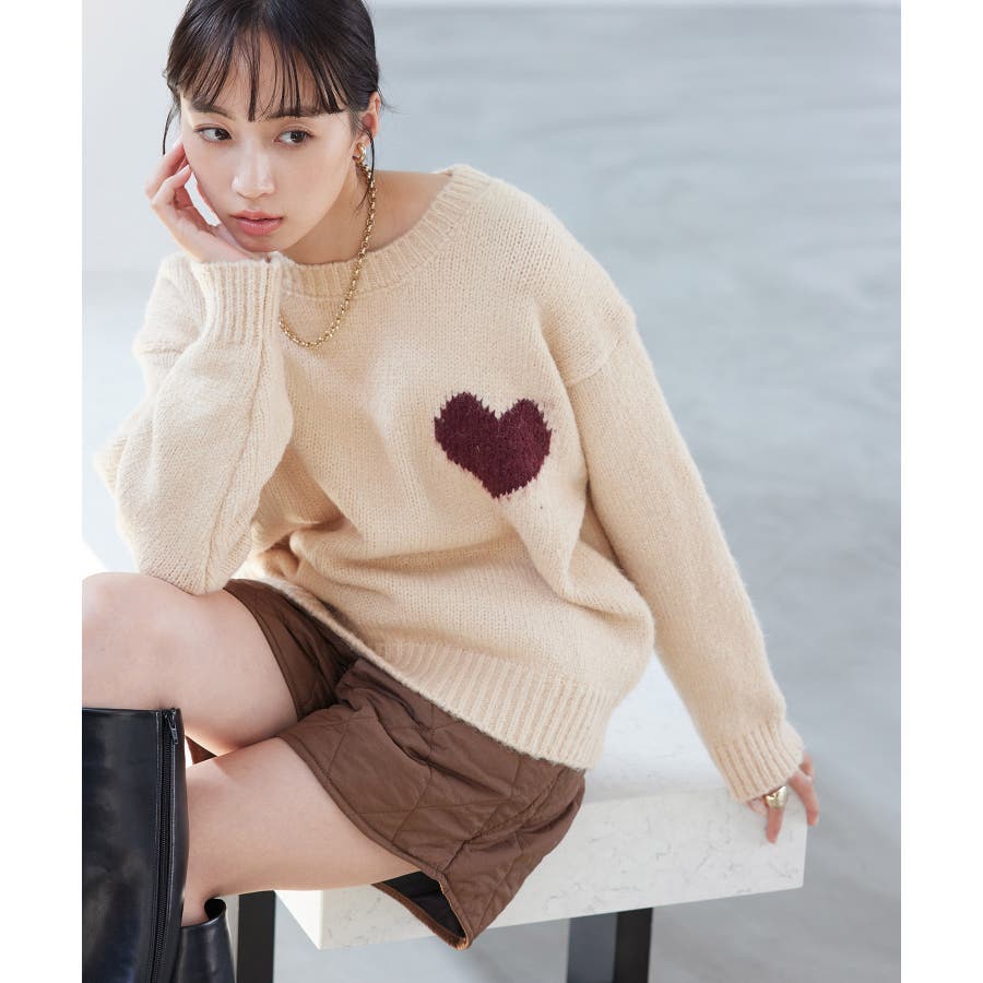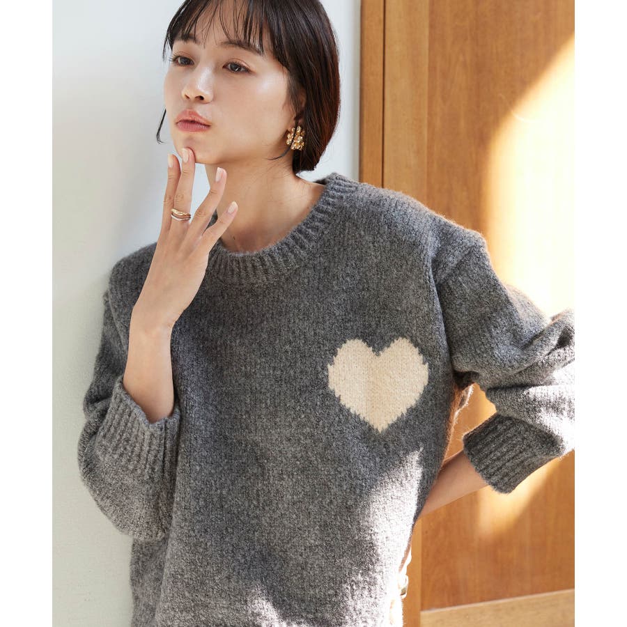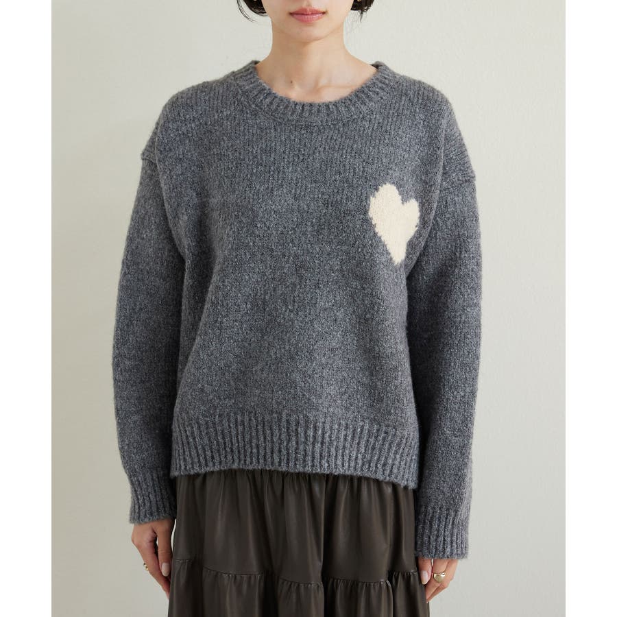 【デザイン・シルエット】 シンプルながらもハート柄のアクセントがキュートなニットです。
