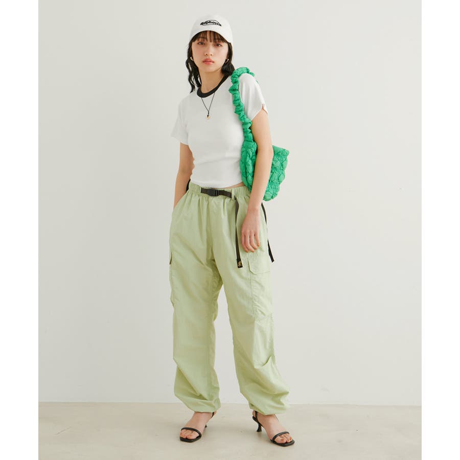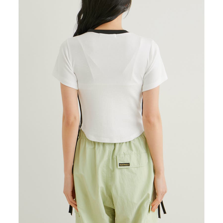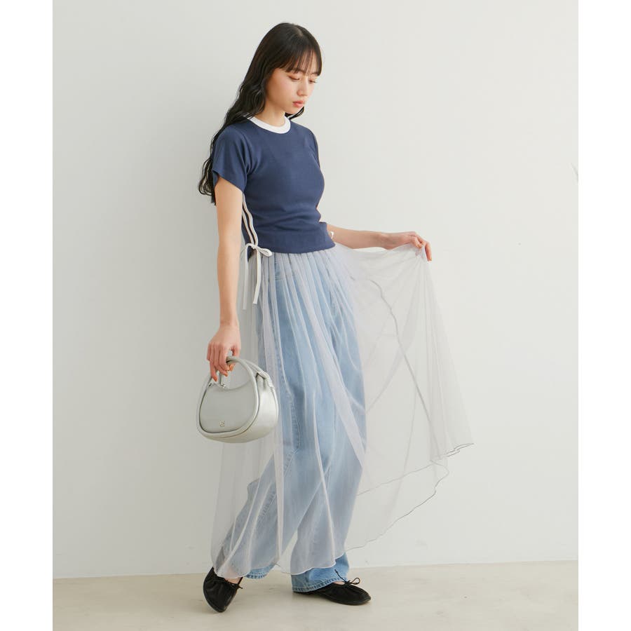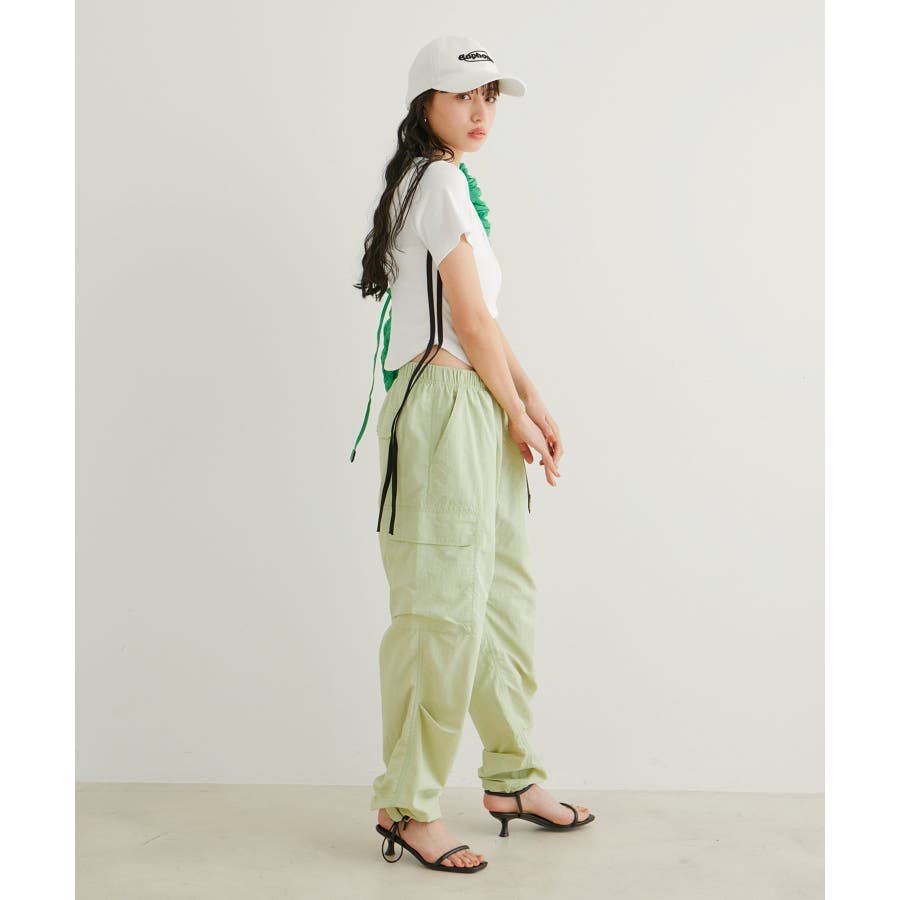 ◆2024春夏◆ 【デザイン・シルエット】 甘さのあるリボンにスポーティな要素を取り入れたサイドラインがポイント! サイドはラウンドしているため、スポーティさに肌見せをプラス。