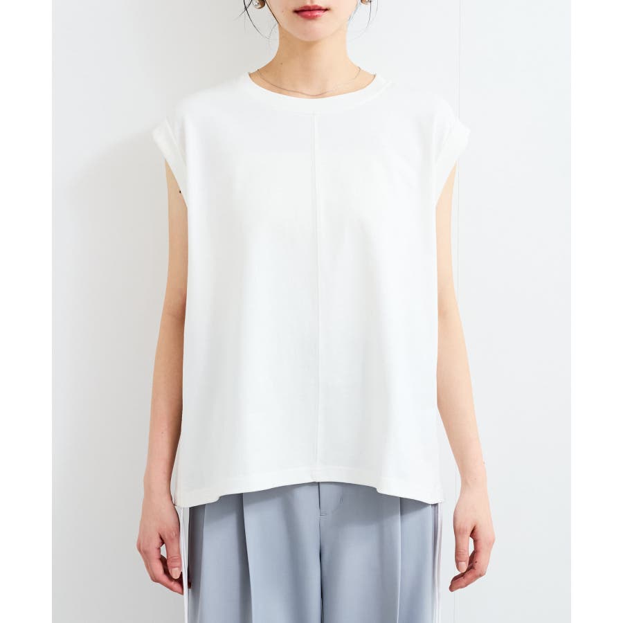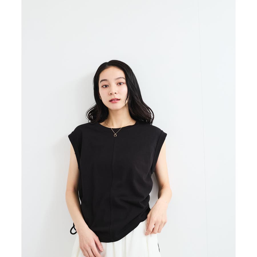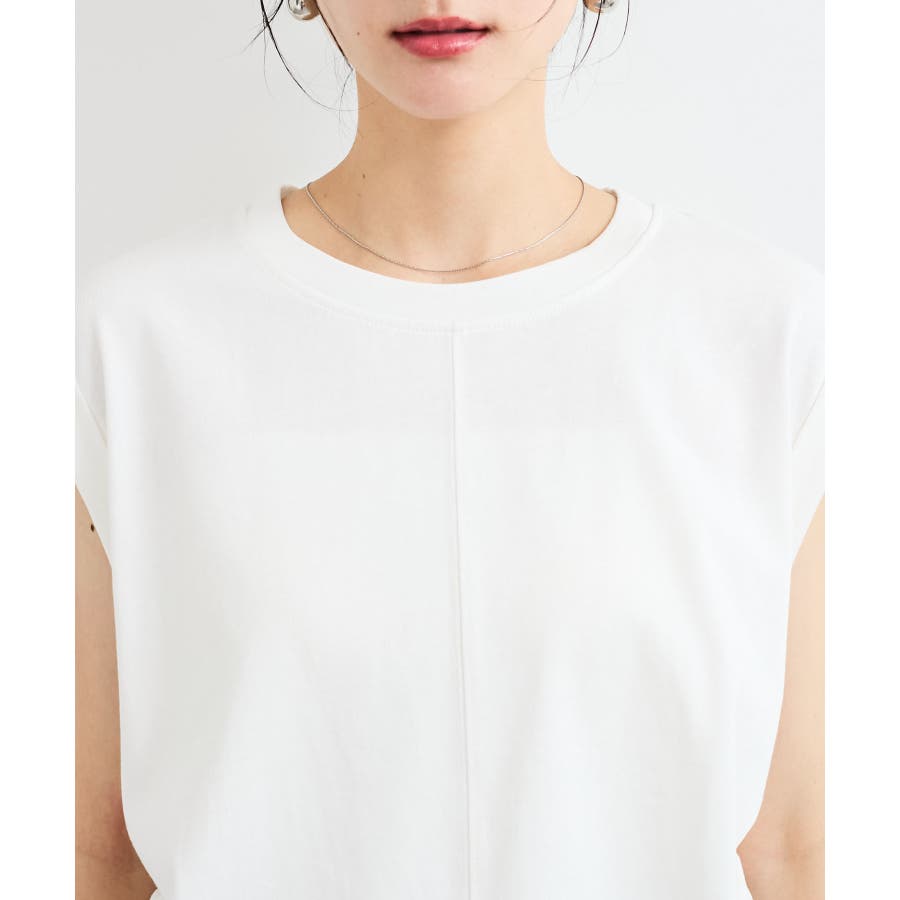 袖口は折り返しデザインを施し、フレンチスリーブになっているので腕まわりをさりげなくカバーし、華奢見せしてくれます。