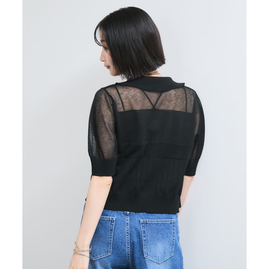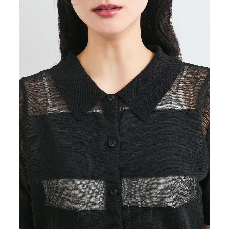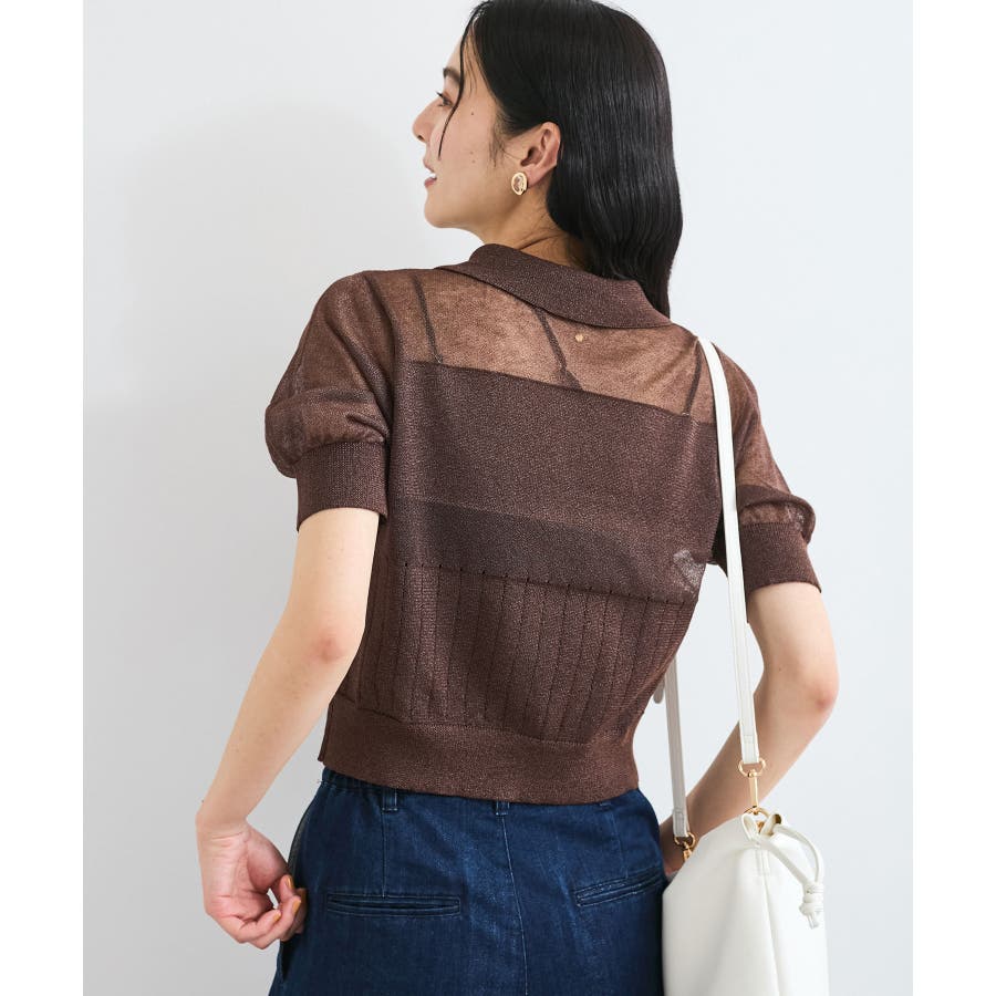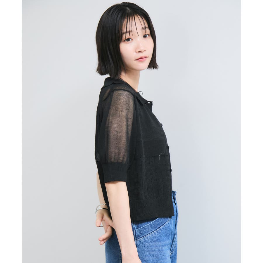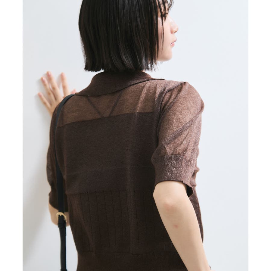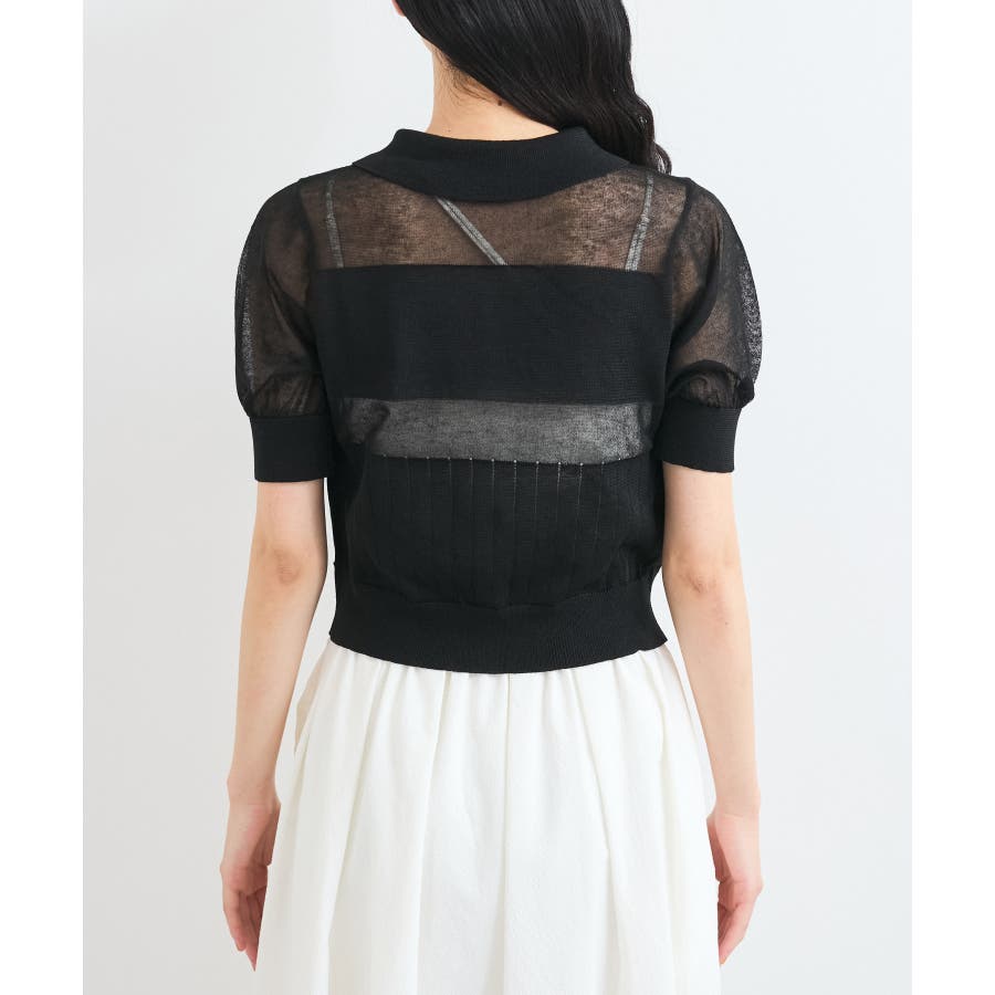 ・編み地の切り替えデザインで、カジュアルすぎず女性らしく着れるポロデザインに。