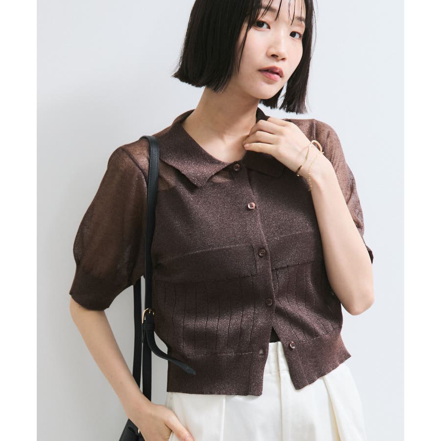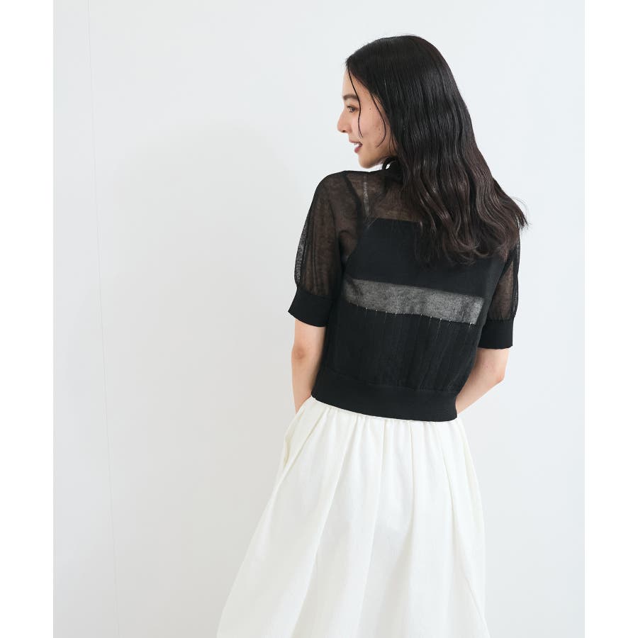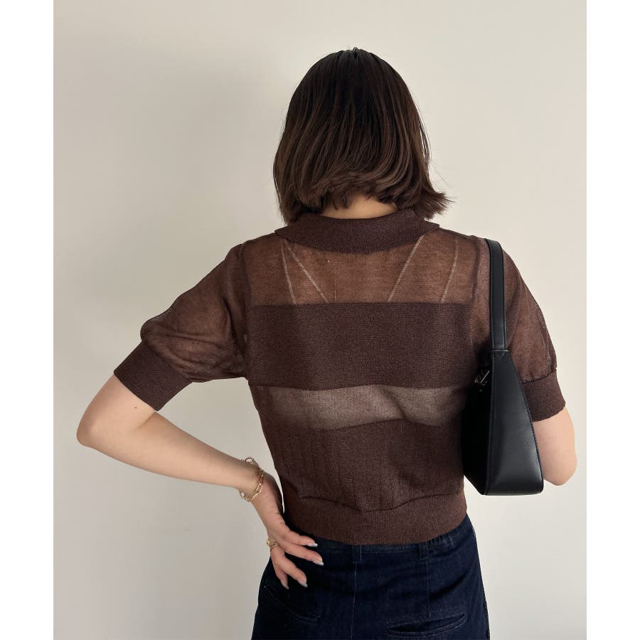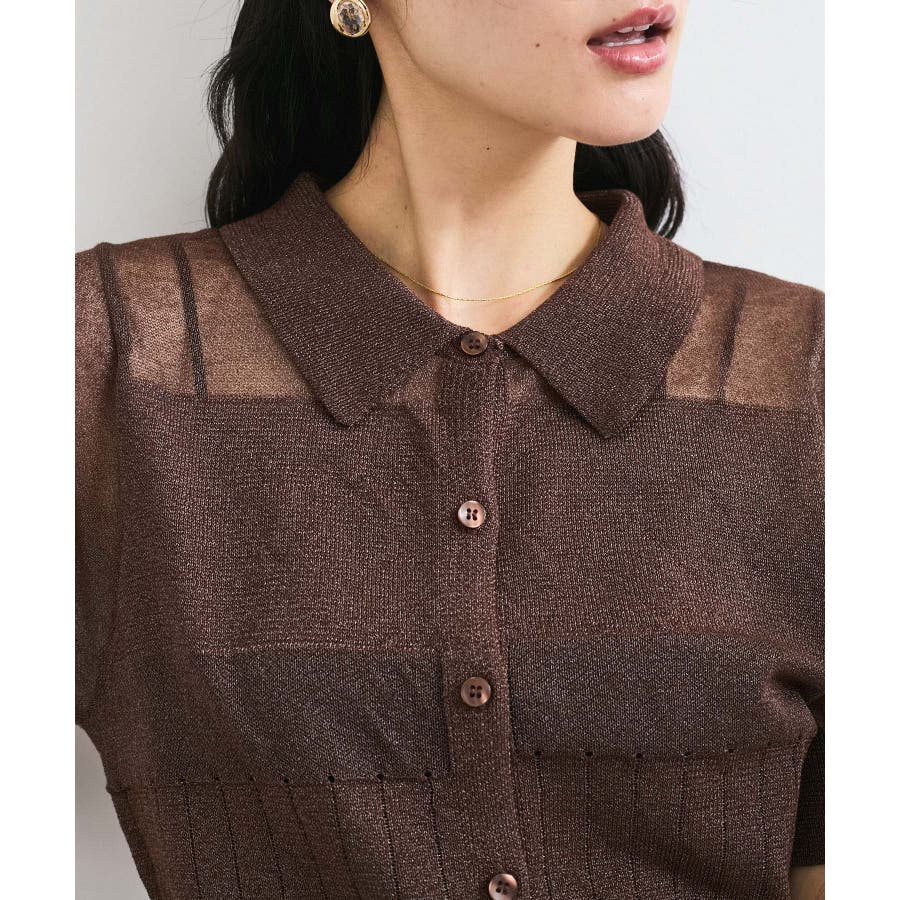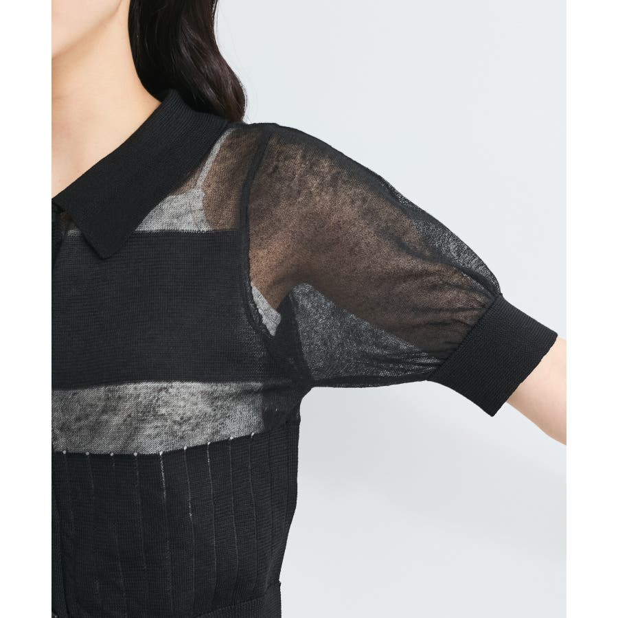 ・編み地の切り替えデザインで、カジュアルすぎず女性らしく着れるポロデザインに。