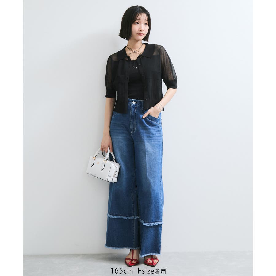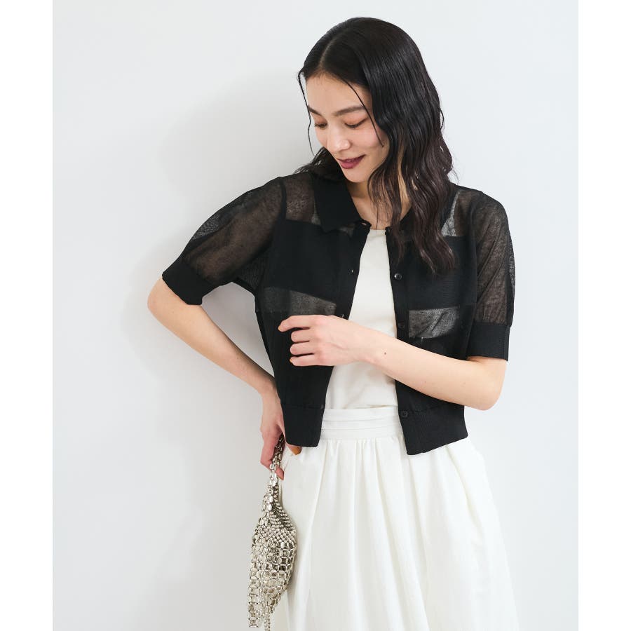 クロップド丈なのでワンピースに羽織ったり、スカートに合わせると女性らしい印象に◎。