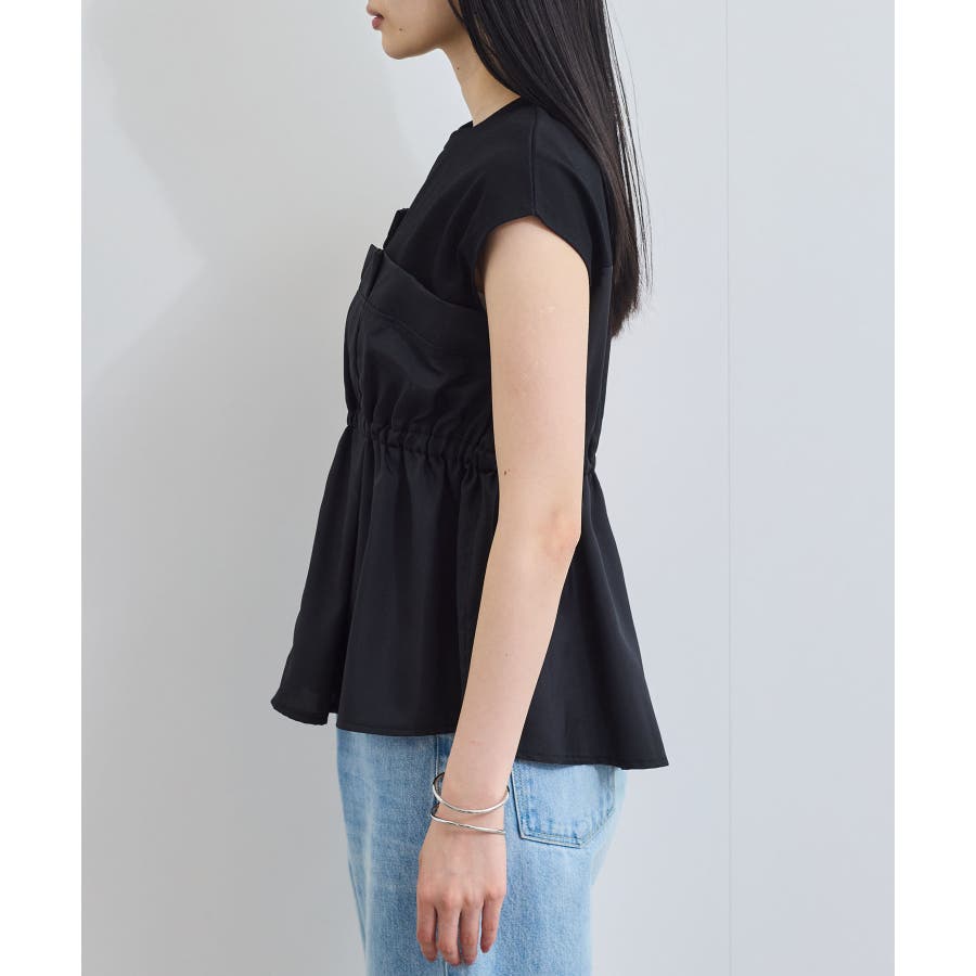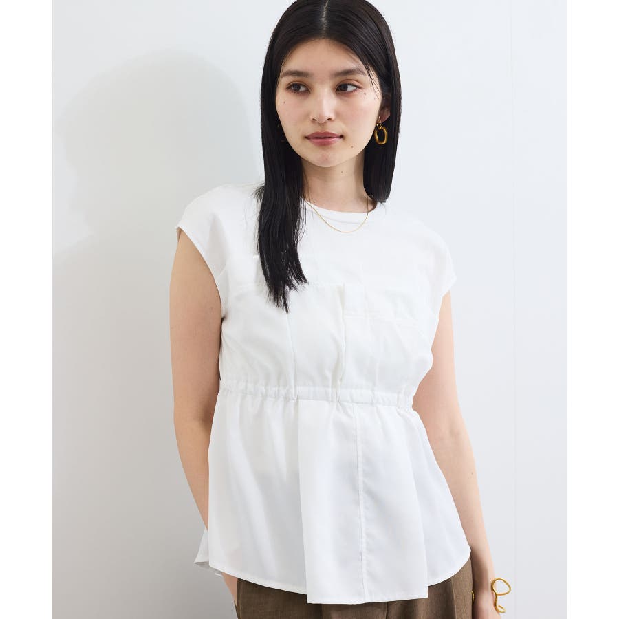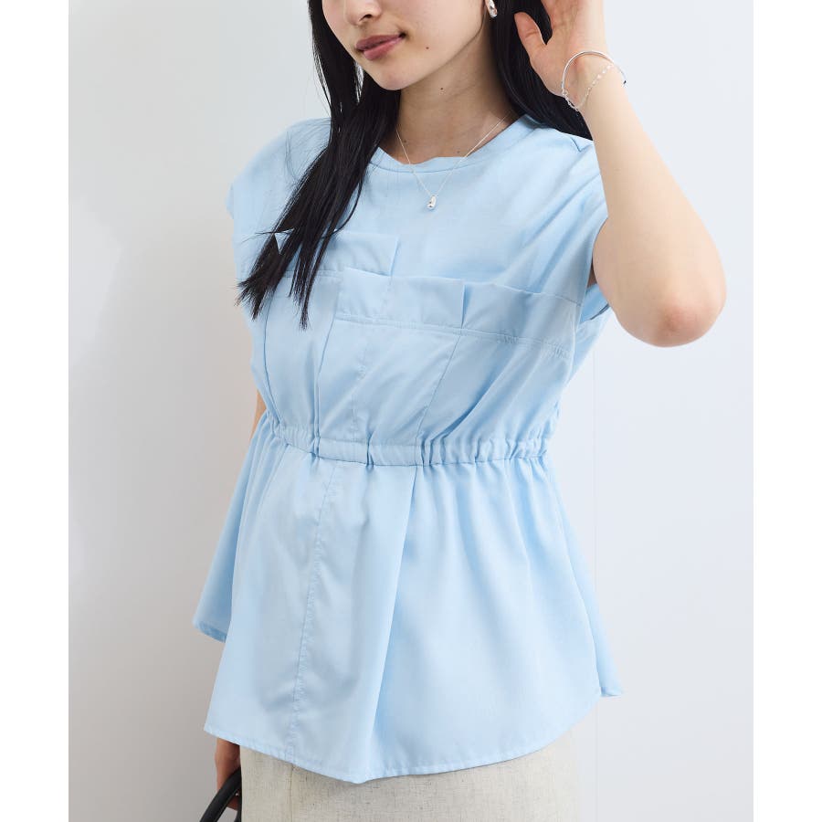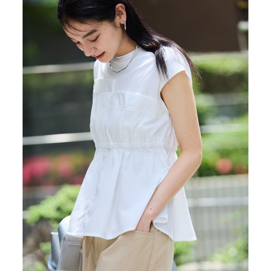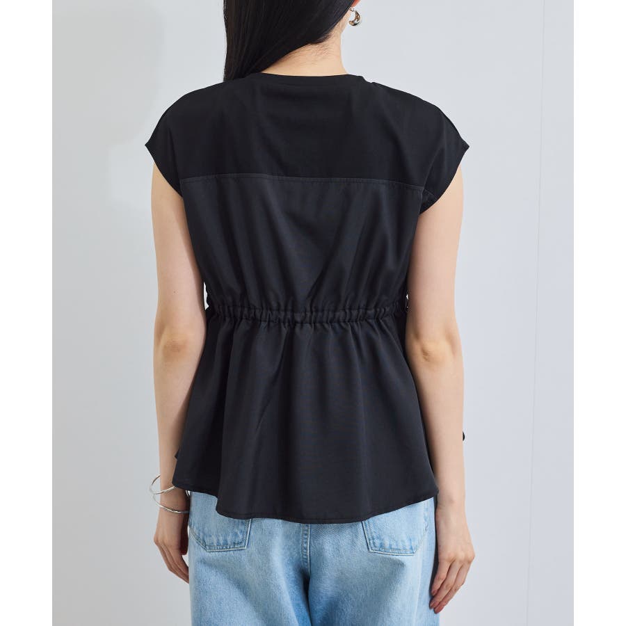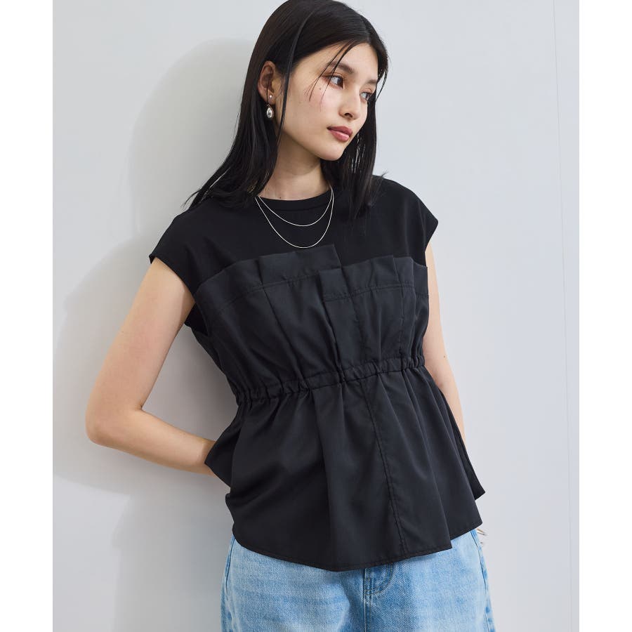 ・サラリと着れるカットソー生地とふわりと揺れる布帛の異素材が目を惹くデザインペプラムトップス。