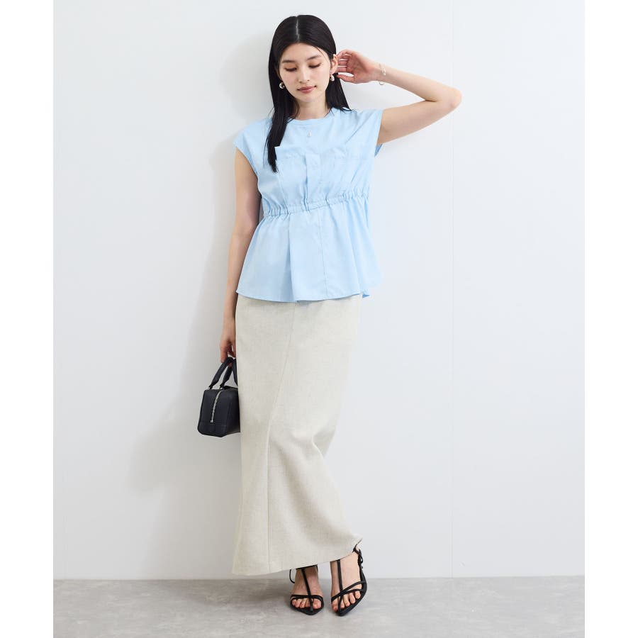 ・裾はふんわりと広がるアシンメトリーペプラム仕様で、気になるお腹周りもカバーしながら女性らしいメリハリのあるラインを演出します。