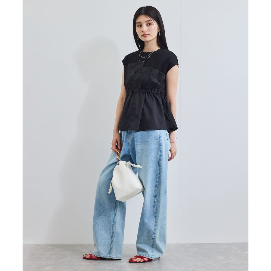 デニムパンツとも相性抜群です!ジャケットを羽織ればオフィスカジュアルなスタイリングにも。胸元にデザインと広がりがあるため、Iラインスカートやテーパードパンツなど細身のボトムと好相性です。