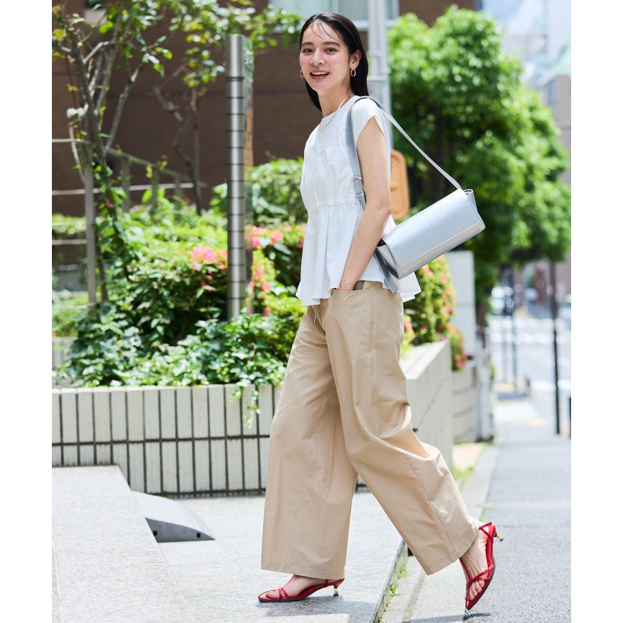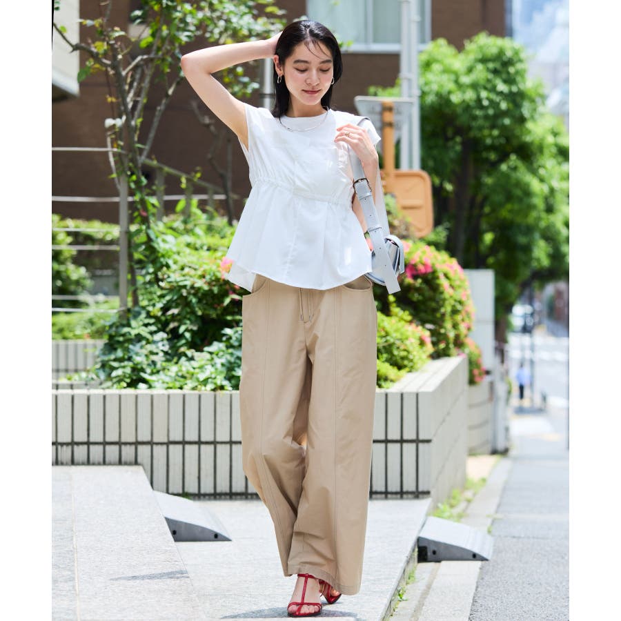 きれいめなテーパードパンツ合わせで大人カジュアルですっきりバランスのいいコーデに仕上がります。