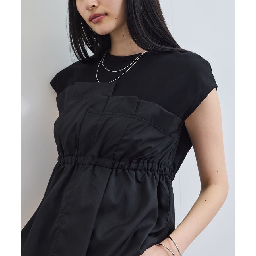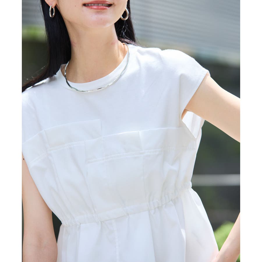 肌触りの良いさらりとしたカットソー生地と程よい広がりのある布帛素材のコンビ。