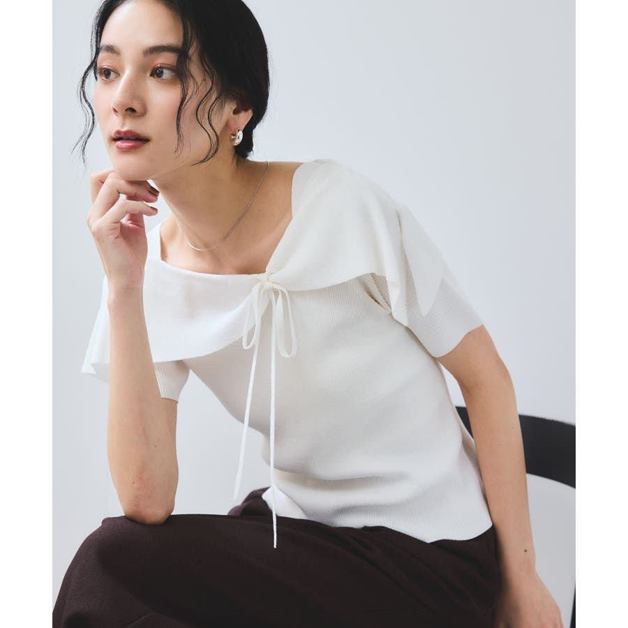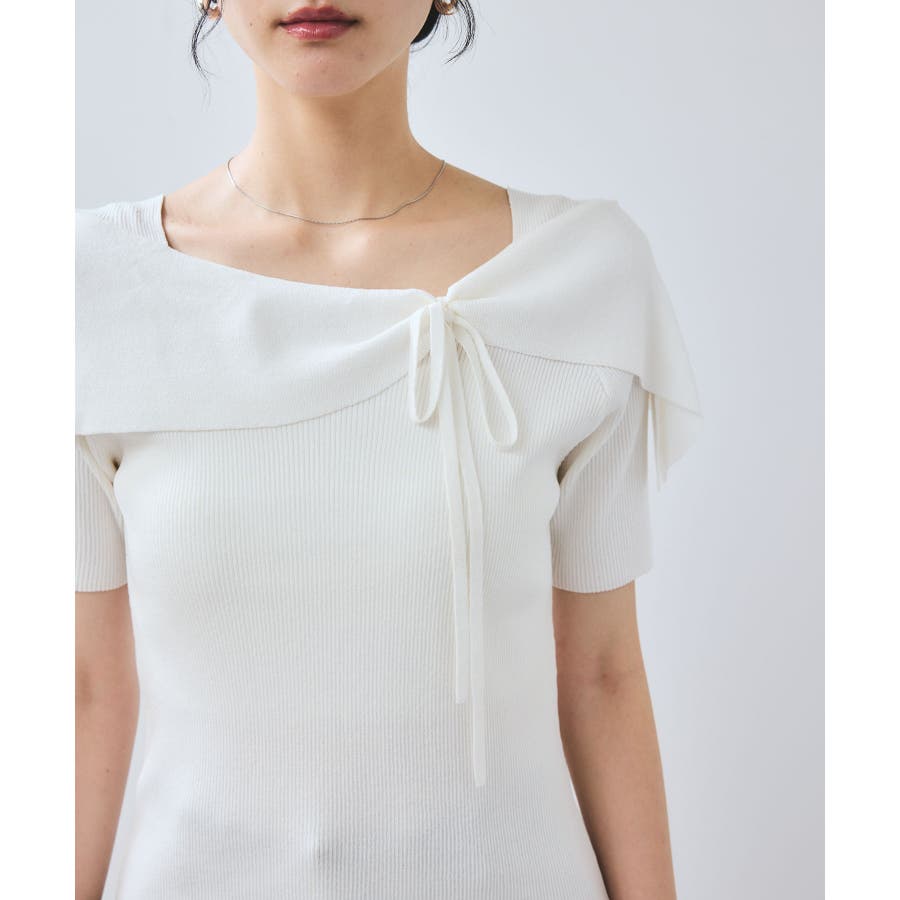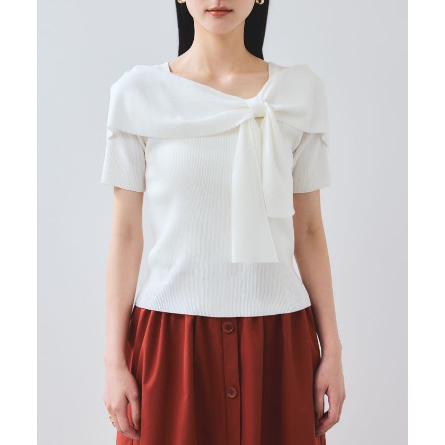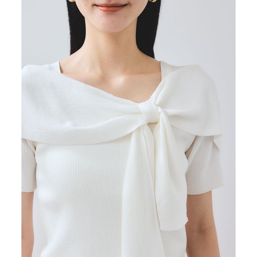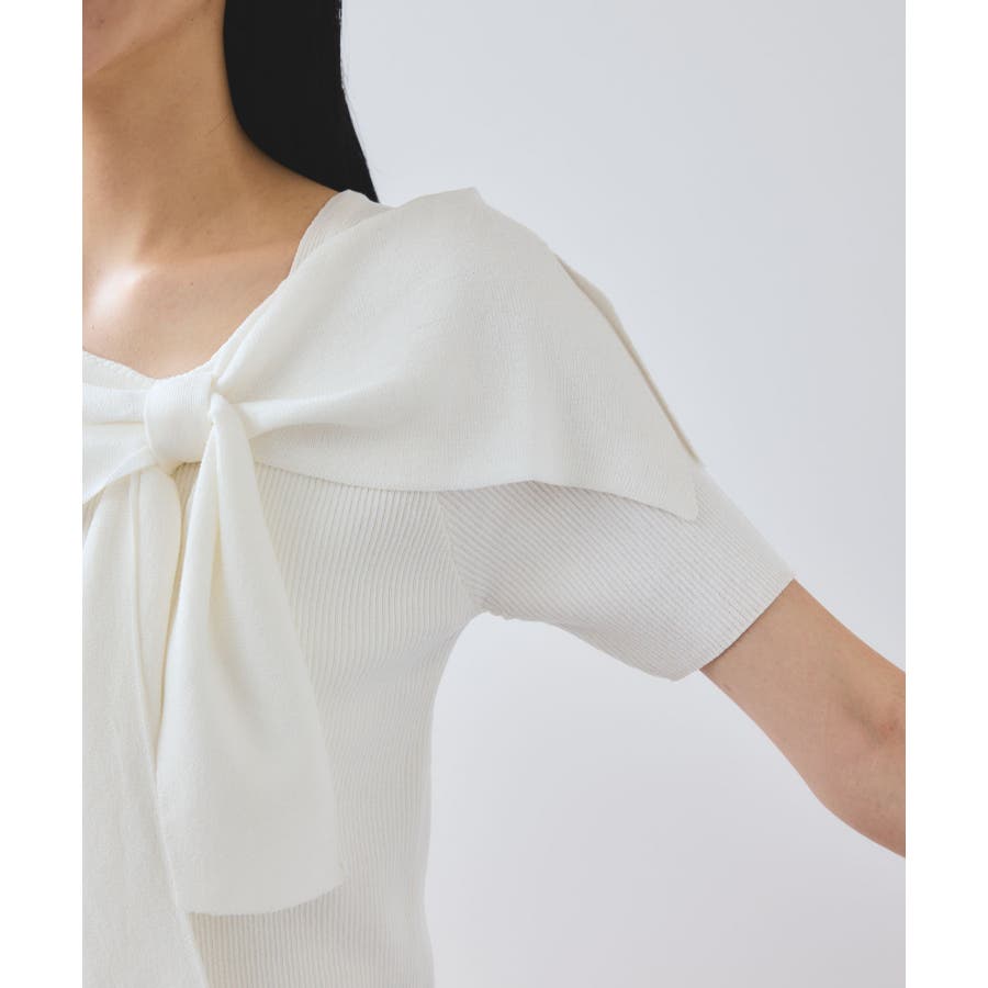 【WEB限定】【骨格で選べる2タイプ】オフショル風リボン半袖ニット
