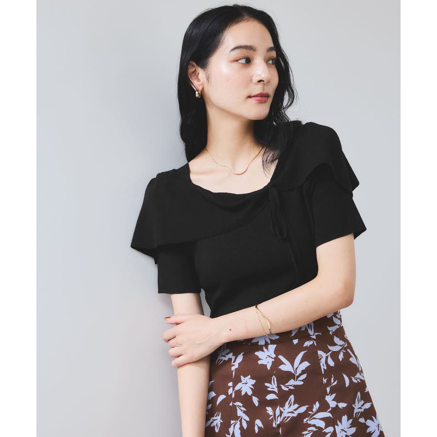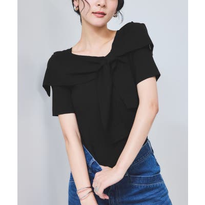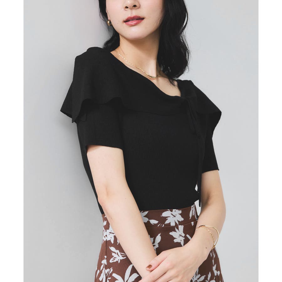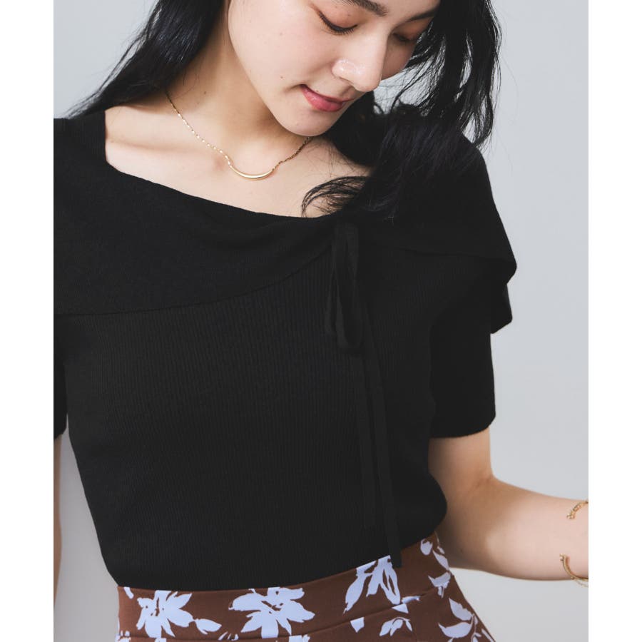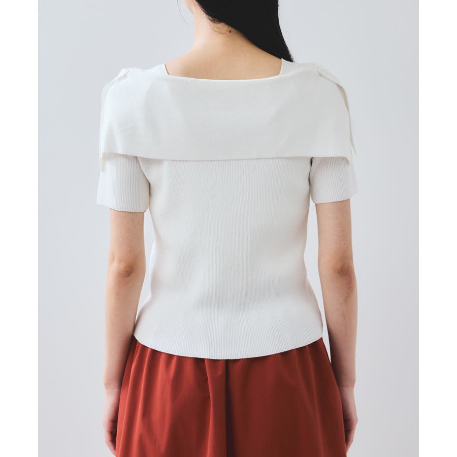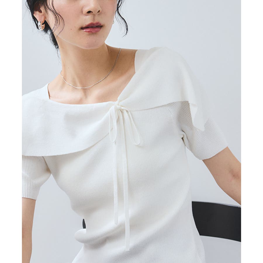 【WEB限定】【骨格で選べる2タイプ】オフショル風リボン半袖ニット