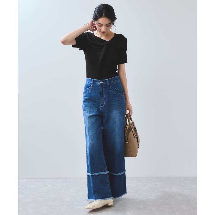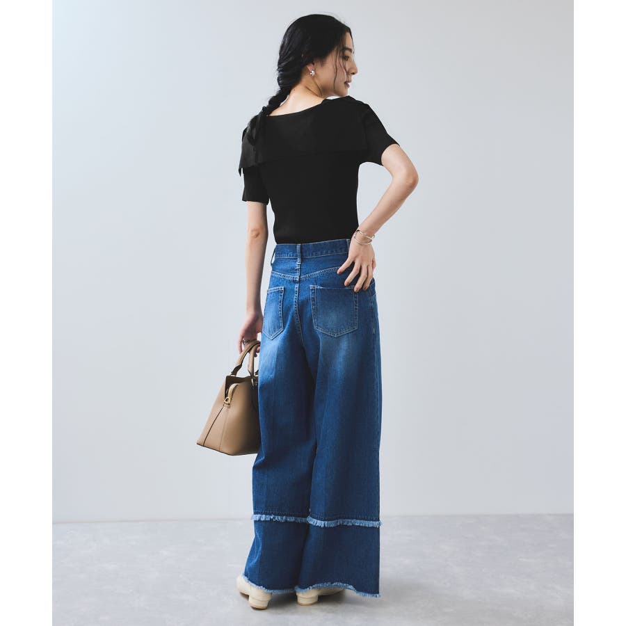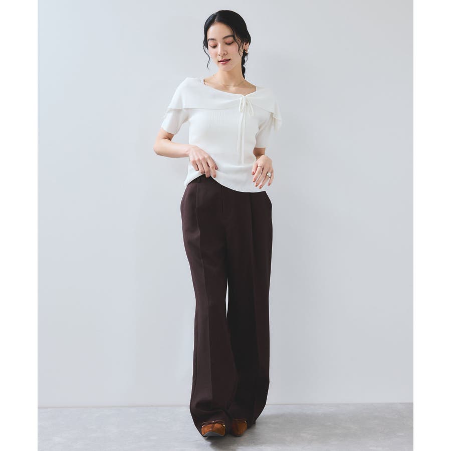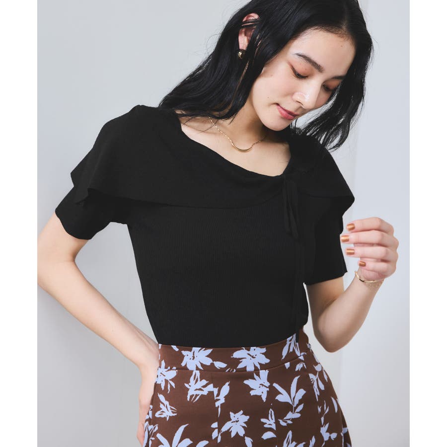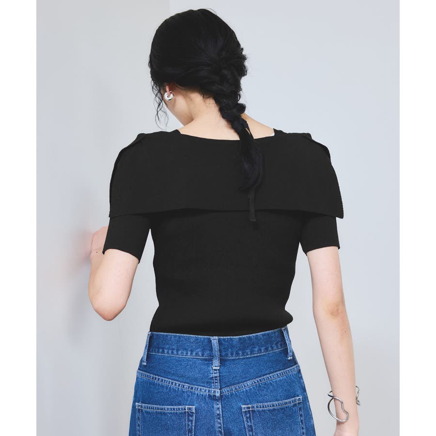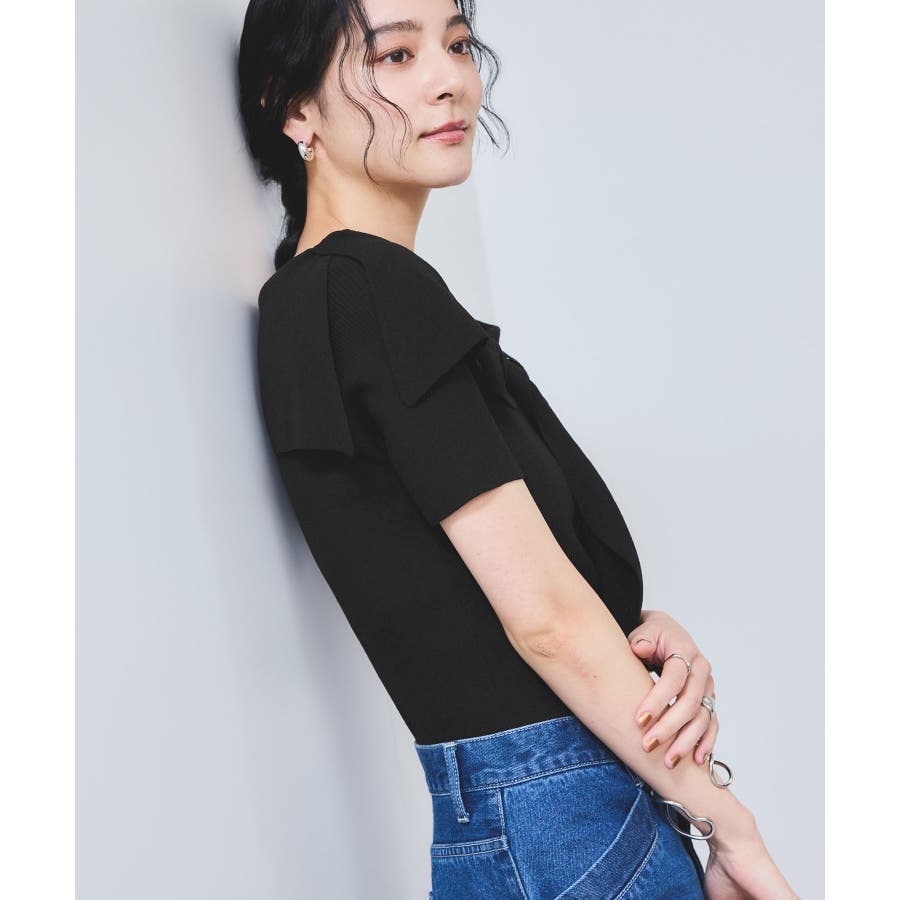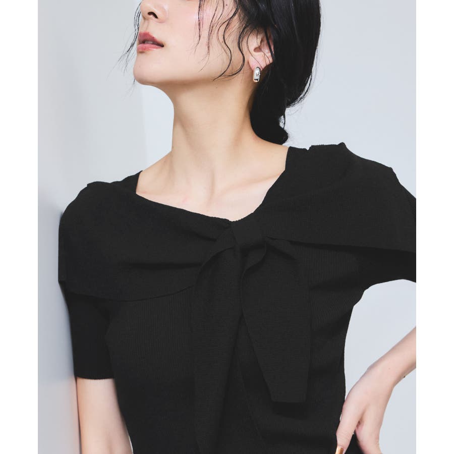 ぐるりと一周するボリューム衿が顔まわりを華やかに演出し、1枚で着映えが叶います。大きめリボンタイプは、ナチュラルさんやウェーブさんにおすすめの華やかフェミニンスタイルに。細めリボンタイプはストレートさんにも取り入れやすい、すっきりとした印象に。肩にはマチを入れているので、オフショル風でもずれにくく安心感のある着用感も嬉しいポイント。さらに、ショルダーにはスリットを入れていることで、腕を動かしてもズレにくく、ストレスフリーな着心地を実現しました。程良く伸びるリブニットがボディにフィットしすぎず沿うことで、スタイルアップも叶えてくれる優秀シルエット。