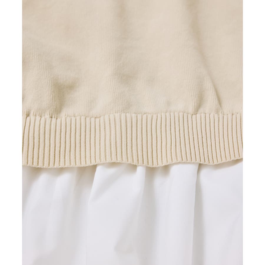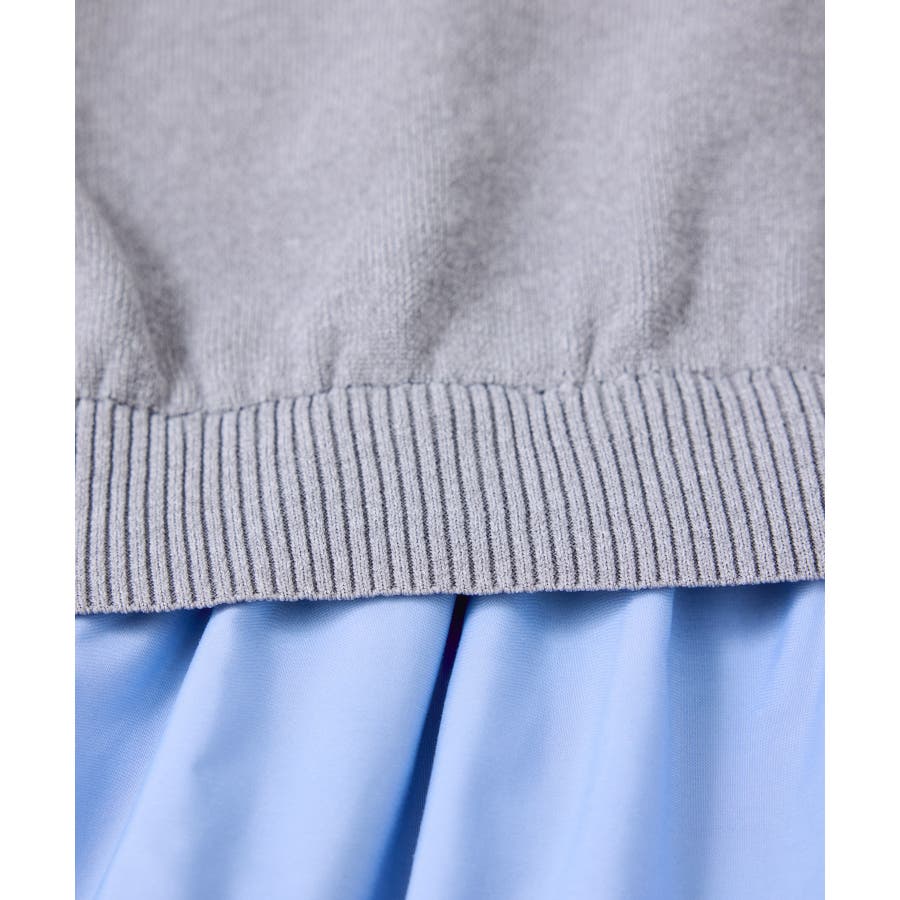 ニット部分は程よい厚みでさらりと着られる素材感。シャツ部分は軽やかで程よくハリのある布帛を使用。