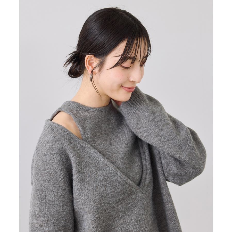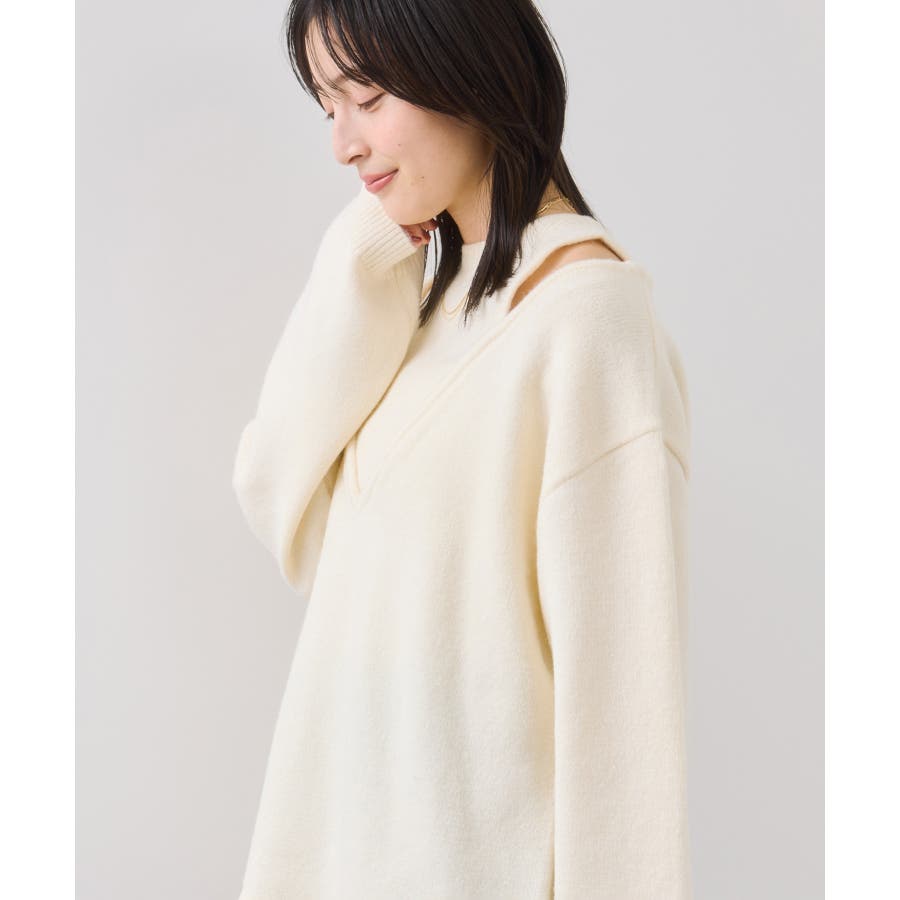 肩がちらりと覗くディテールが、大人っぽくモードな印象をプラス。