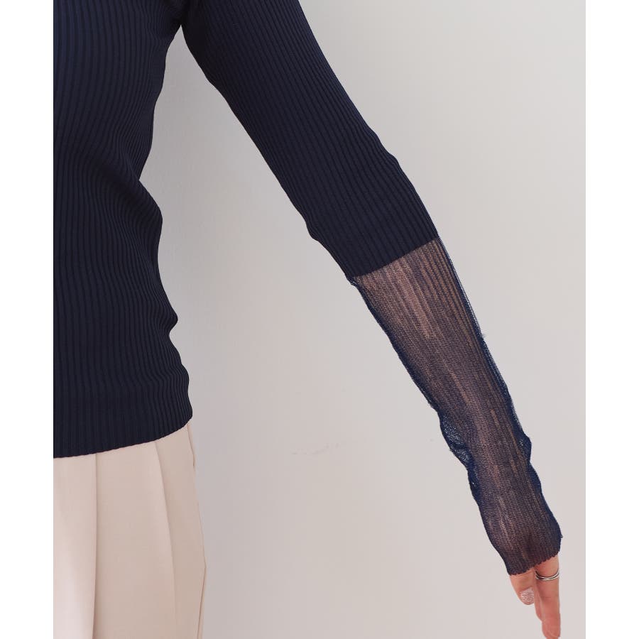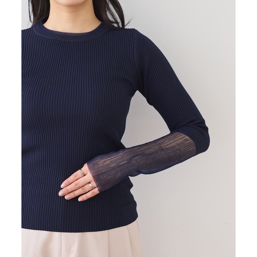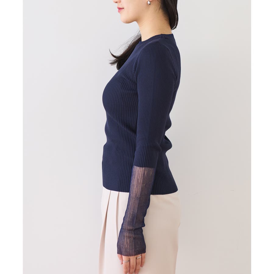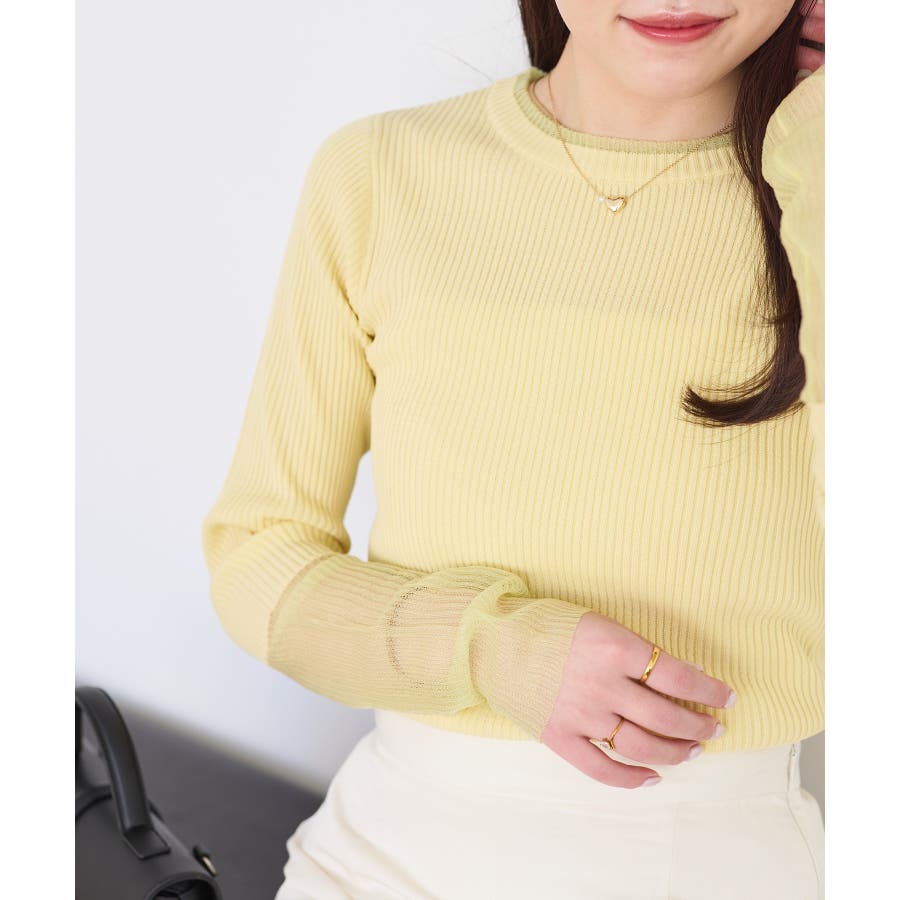 【WEB限定】袖シアー切り替えリブニットプルオーバー