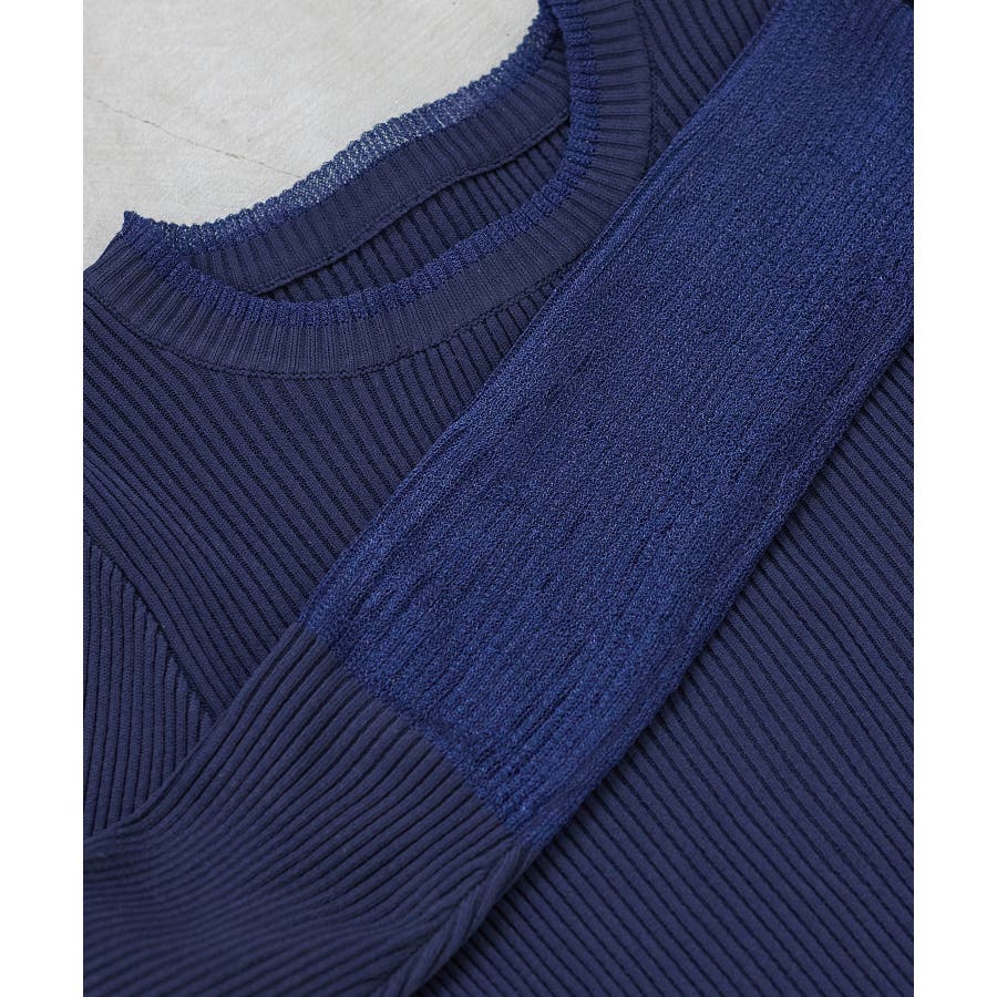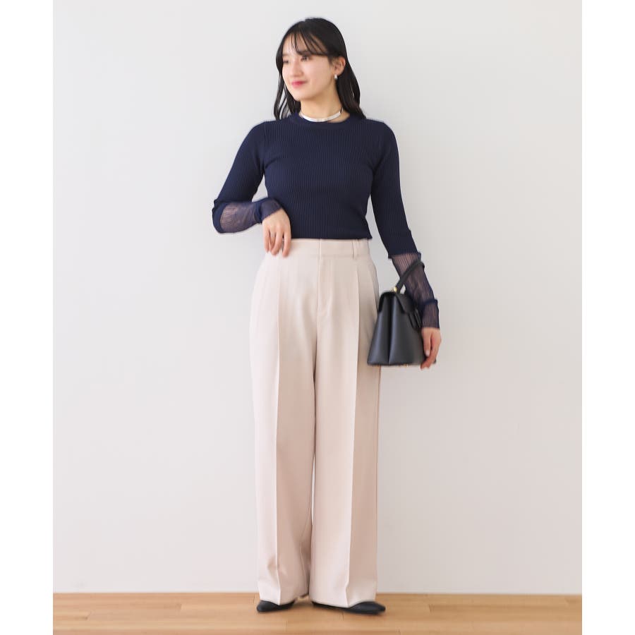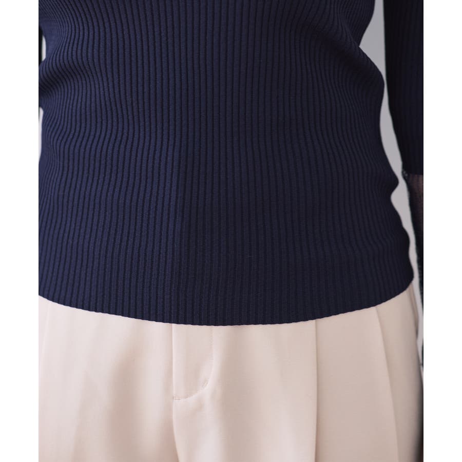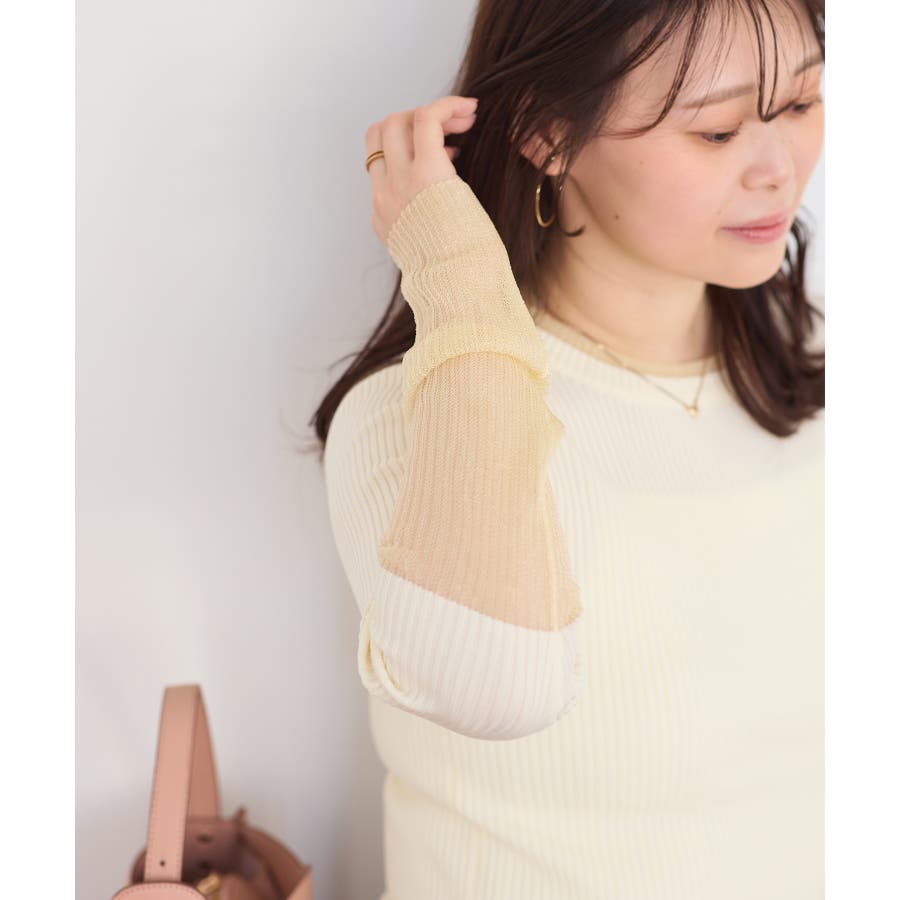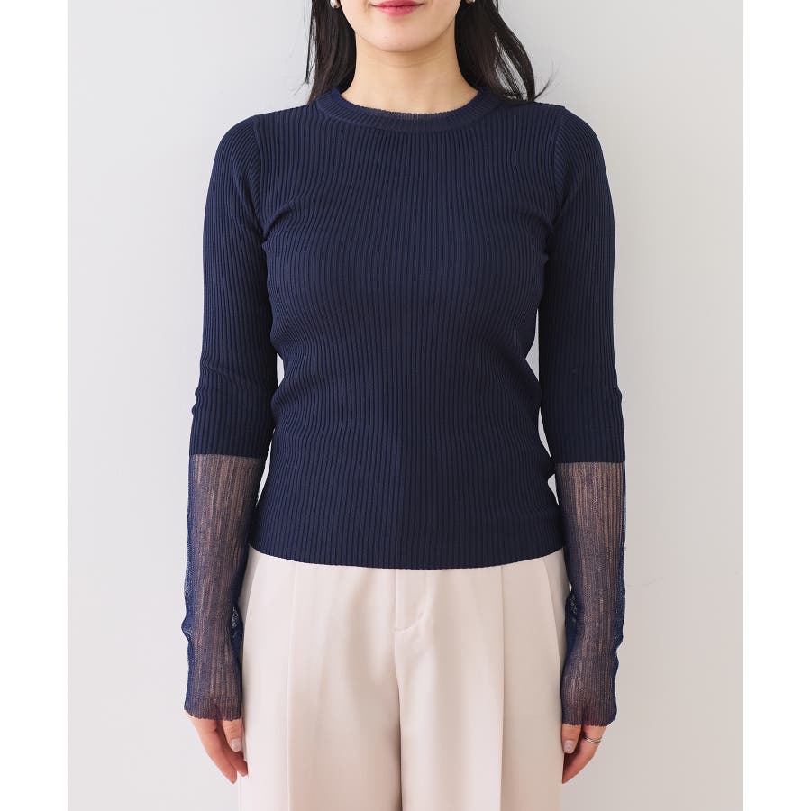 【WEB限定】袖シアー切り替えリブニットプルオーバー