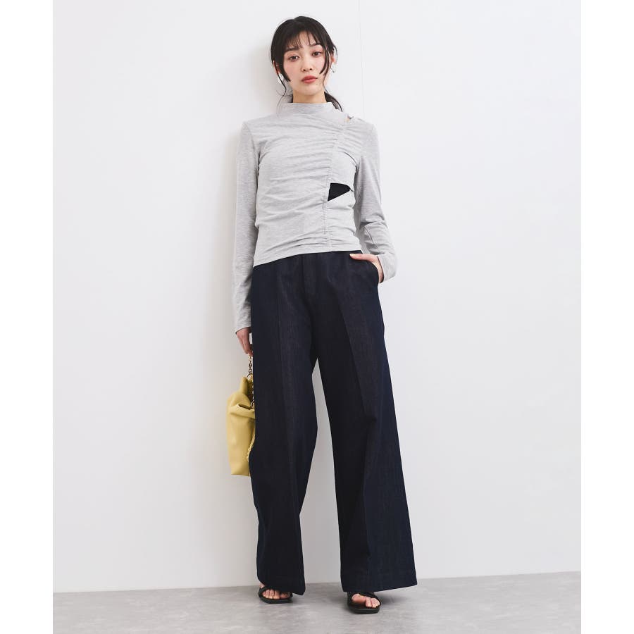 着映えするデザインなので、シンプルボトムでも華やかなスタイリングに。