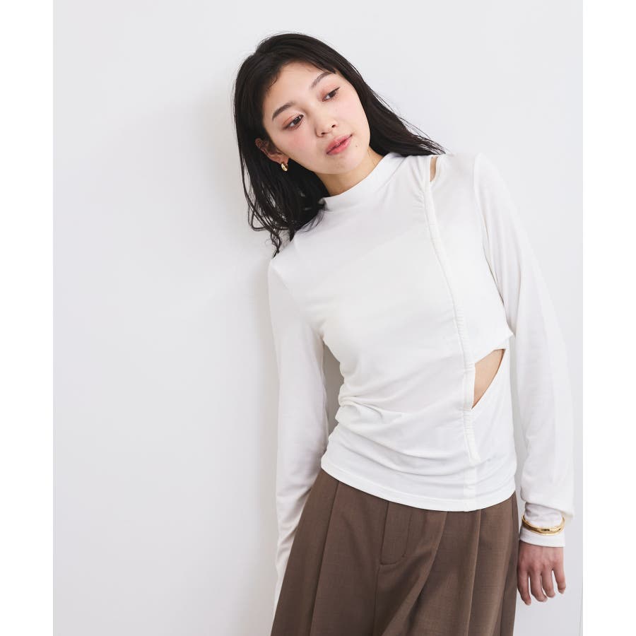 カットアウトとシャーリングデザインのトレンド感たっぷりのプルオーバー。