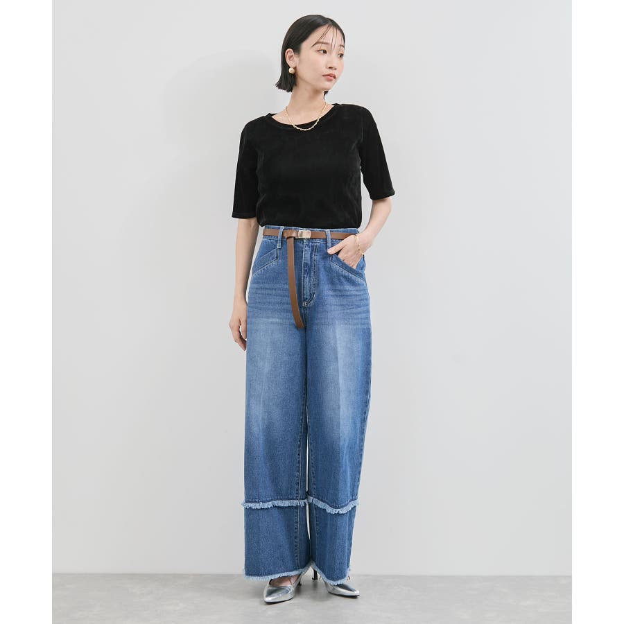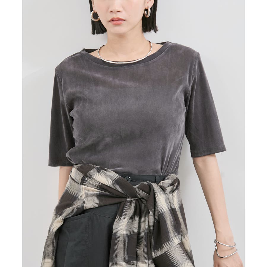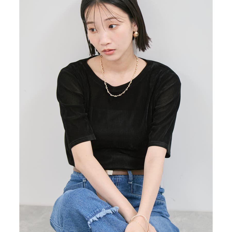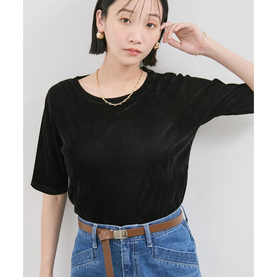 Tシャツよりも手軽にスタイリングをブラッシュアップできるベロアTシャツ。