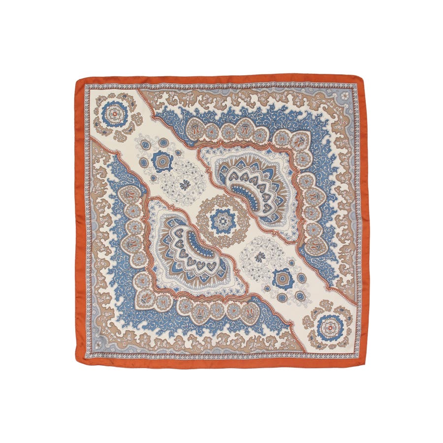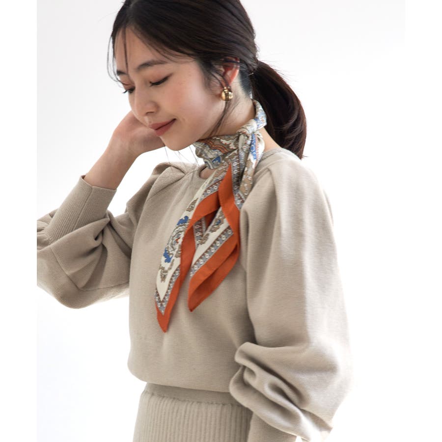 【デザイン・シルエット】 首回りはもちろん、小物やデニムにも合わせて使いたいスカーフ。 程よいツヤ感で上品にお使いいただけます。 スタイリングのアクセントにぴったりなアイテムです。 【カラー】 オレンジとグリーンが今年らしいポイントのカラーバリエーション。 ※画像の商品はサンプルです。 実際の商品と仕様、加工、サイズが若干異なる場合がございます。