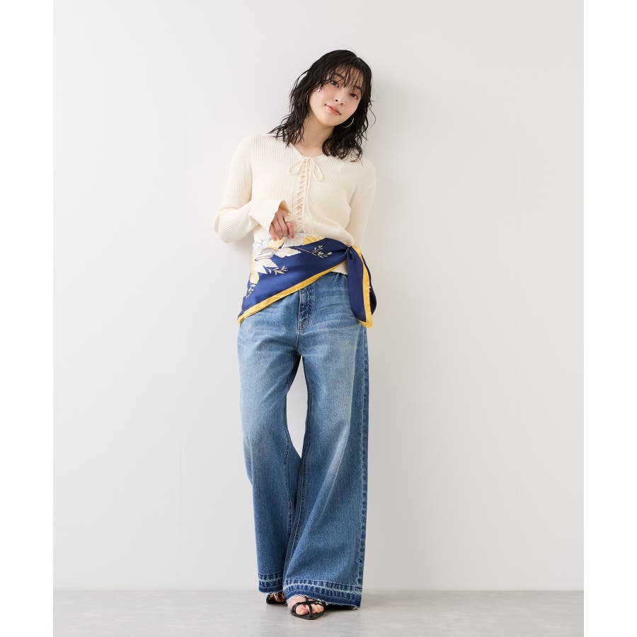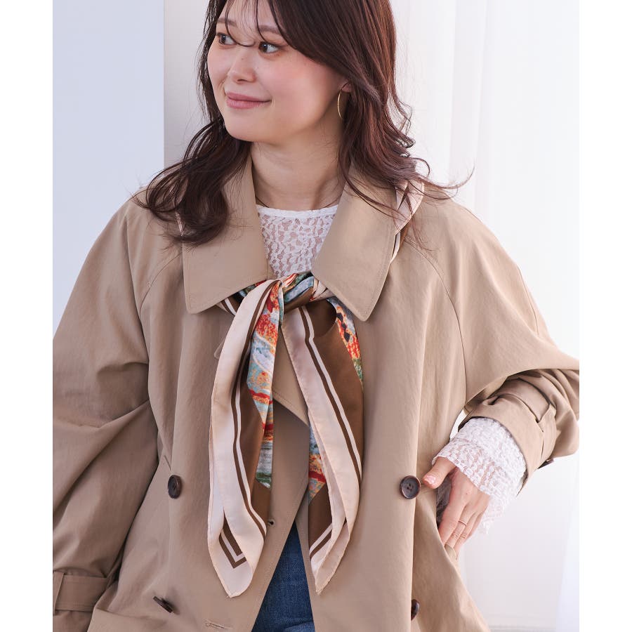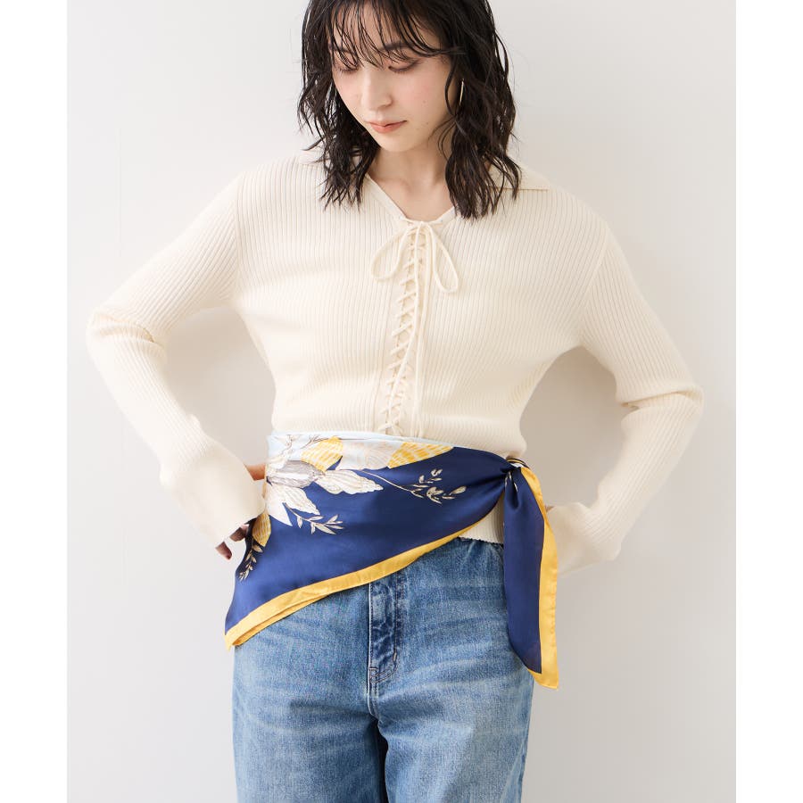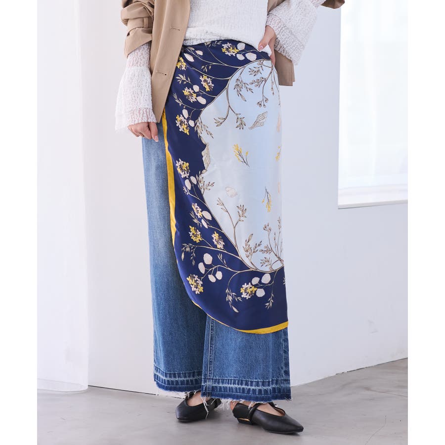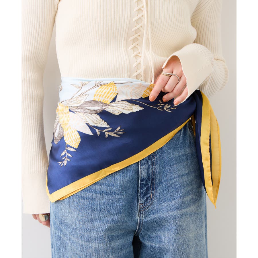 首元に巻いてきれいめスタイルのアクセントにしたり、肩にさらっと掛けてコーディネートのポイントにするのもおすすめ。バッグに結んだり、ビスチェ風、ベルトにアレンジするなど、90cmサイズならではの幅広い使い方を楽しめます。
