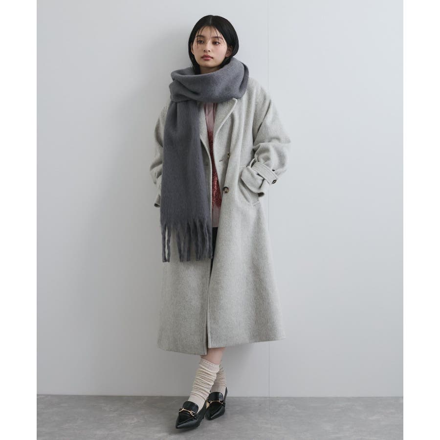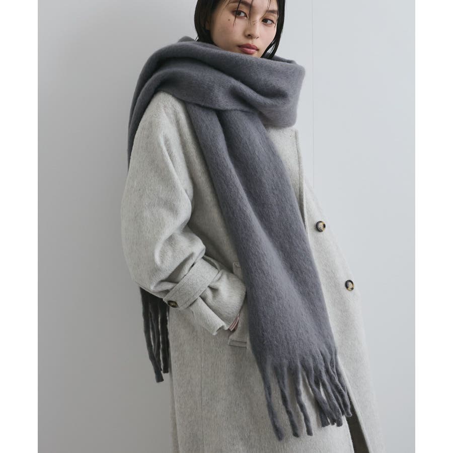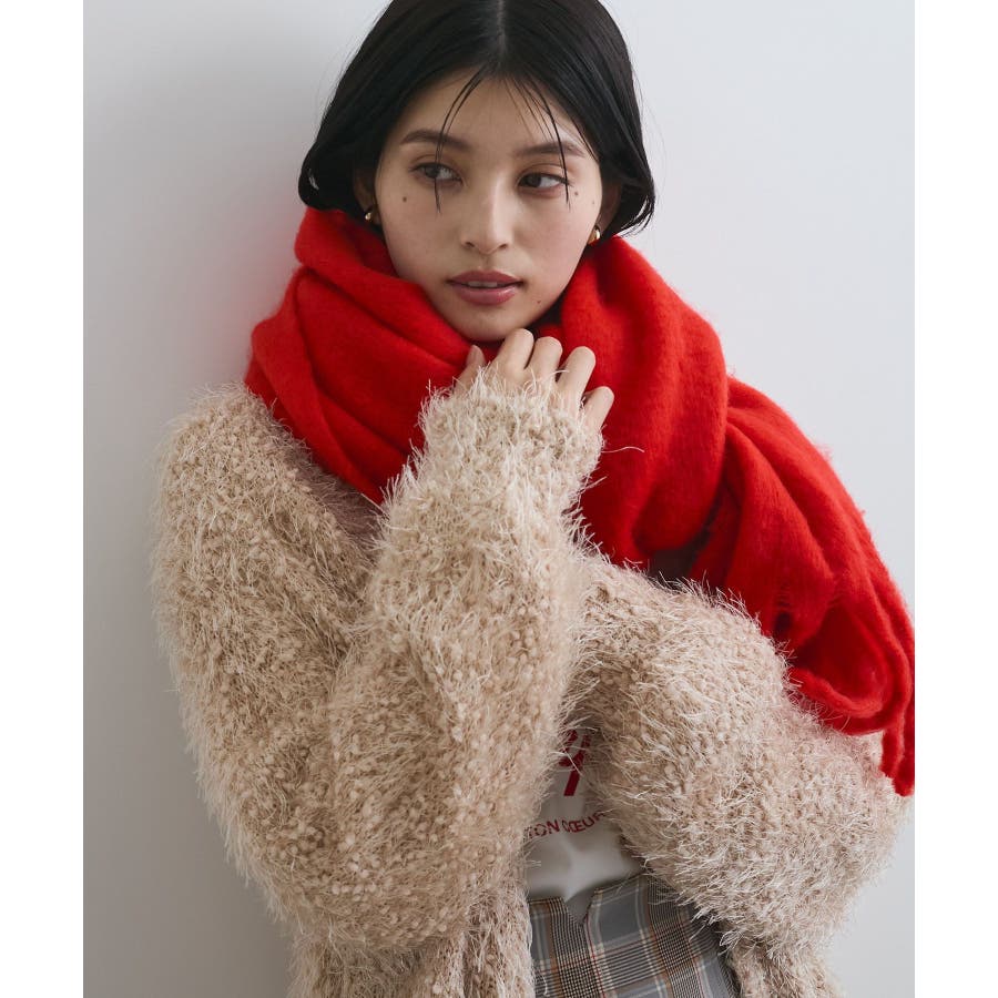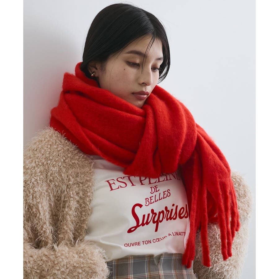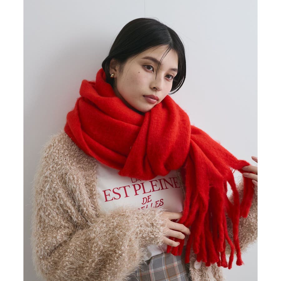 ◆2025秋冬◆ 【デザイン・シルエット】 太めのフリンジがアクセントになるマフラー。 ふっくらと柔らかな質感。 巻くと包まれるようなボリューム感で小顔効果も◎ 巻き方のアレンジやブローチなどのアクセサリーを ONしても可愛いアイテムです。 【素材】 ※画像の商品はサンプルです。 実際の商品と仕様、加工、サイズが若干異なる場合がございます。