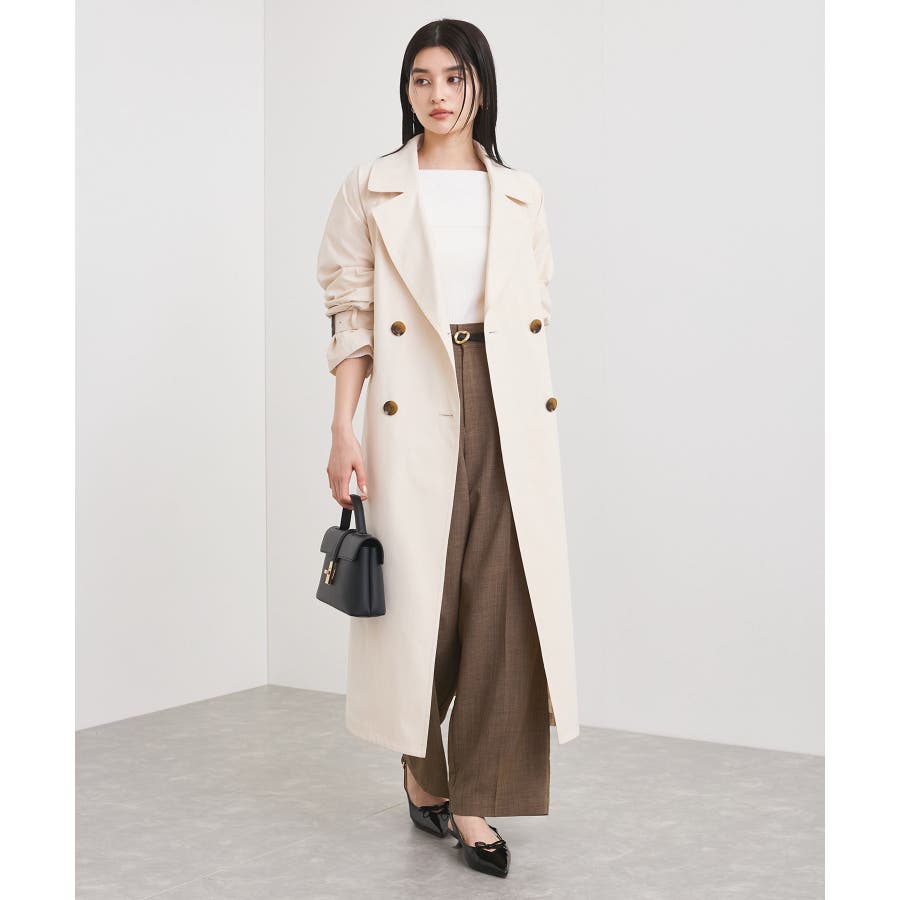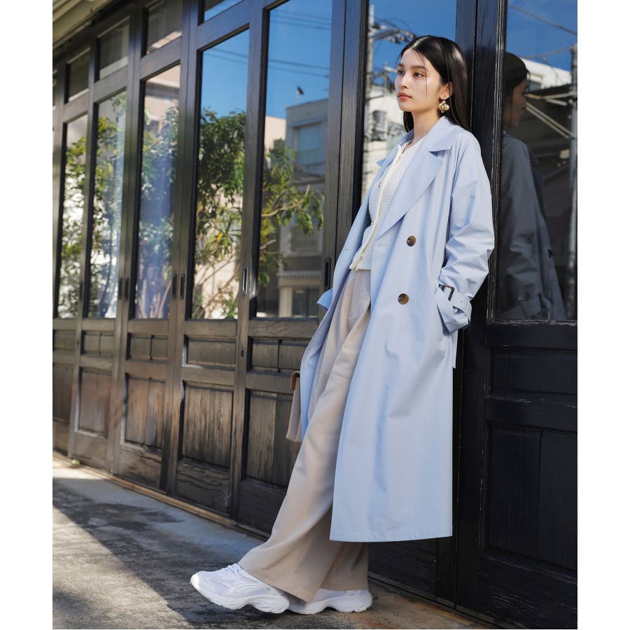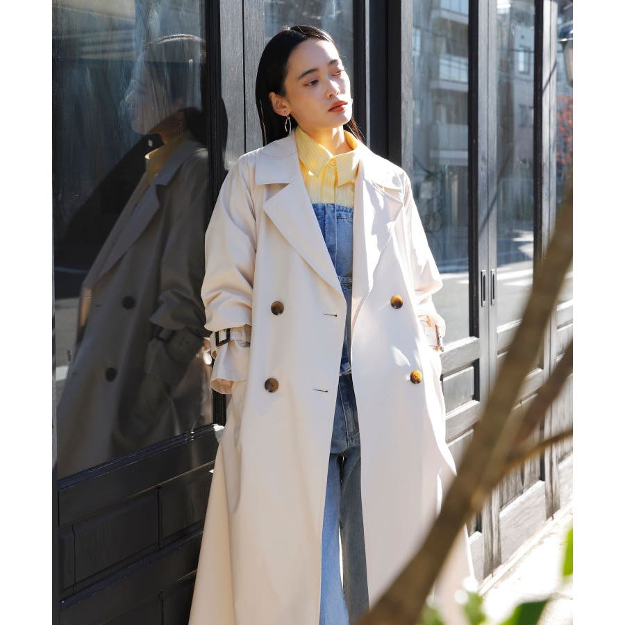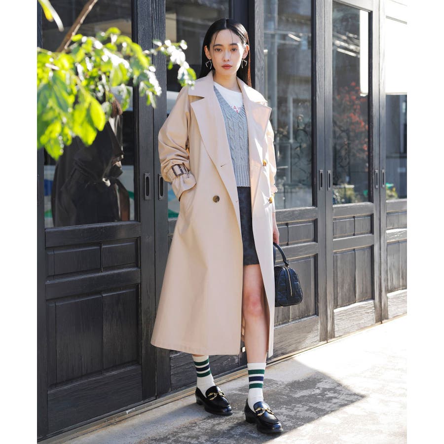 着丈が長いのでパンツ、スカートとどんなアイテムもはまりやすい万能トレンチコートです。